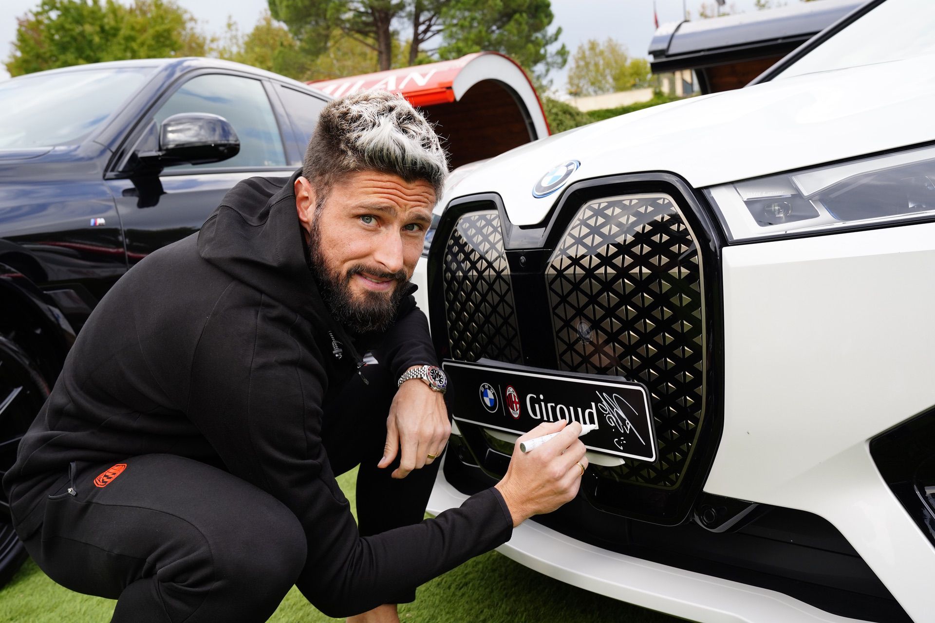 CAIRATE, ITALY – SEPTEMBER 29: <> at Milanello on September 29, 2022 in Cairate, Italy. (Photo by Giuseppe Cottini/AC Milan via Getty Images)Di Silvestre, President and CEO of BMW Italy, symbolically handed over the keys to the cars in a ceremony that saw AC Milan captain, Davide Calabria together with Olivier Giroud and Simon Kjaer as protagonists. Of course, the other rockstar of the day was the all-new BMW XM plug-in hybrid. The car was unveiled this week and it’s starting to show up at global events.