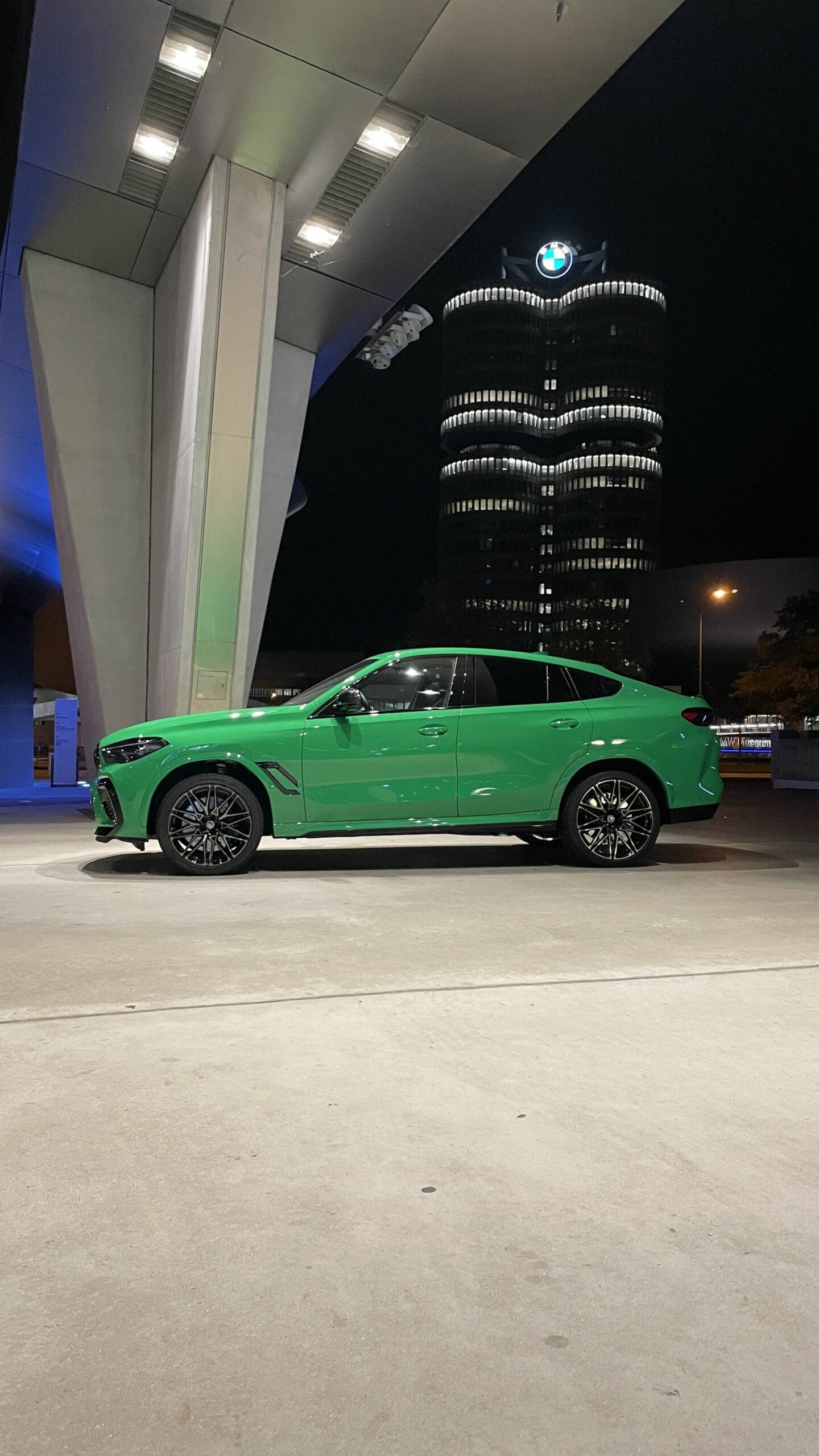 Signal Green is one of the most vibrant and polarizing colors BMW offers today. Part of the BMW Individual offering, Signal Green has built a name for itself after being featured on different M products. Today, we see the shinny green on a BMW X6 M Competition. The power SUV is displayed at the iconic BMW Welt, in the heart of Munich. The landmark hosts millions of visitors every year and lays across the equally iconic BMW four-cylinder building.