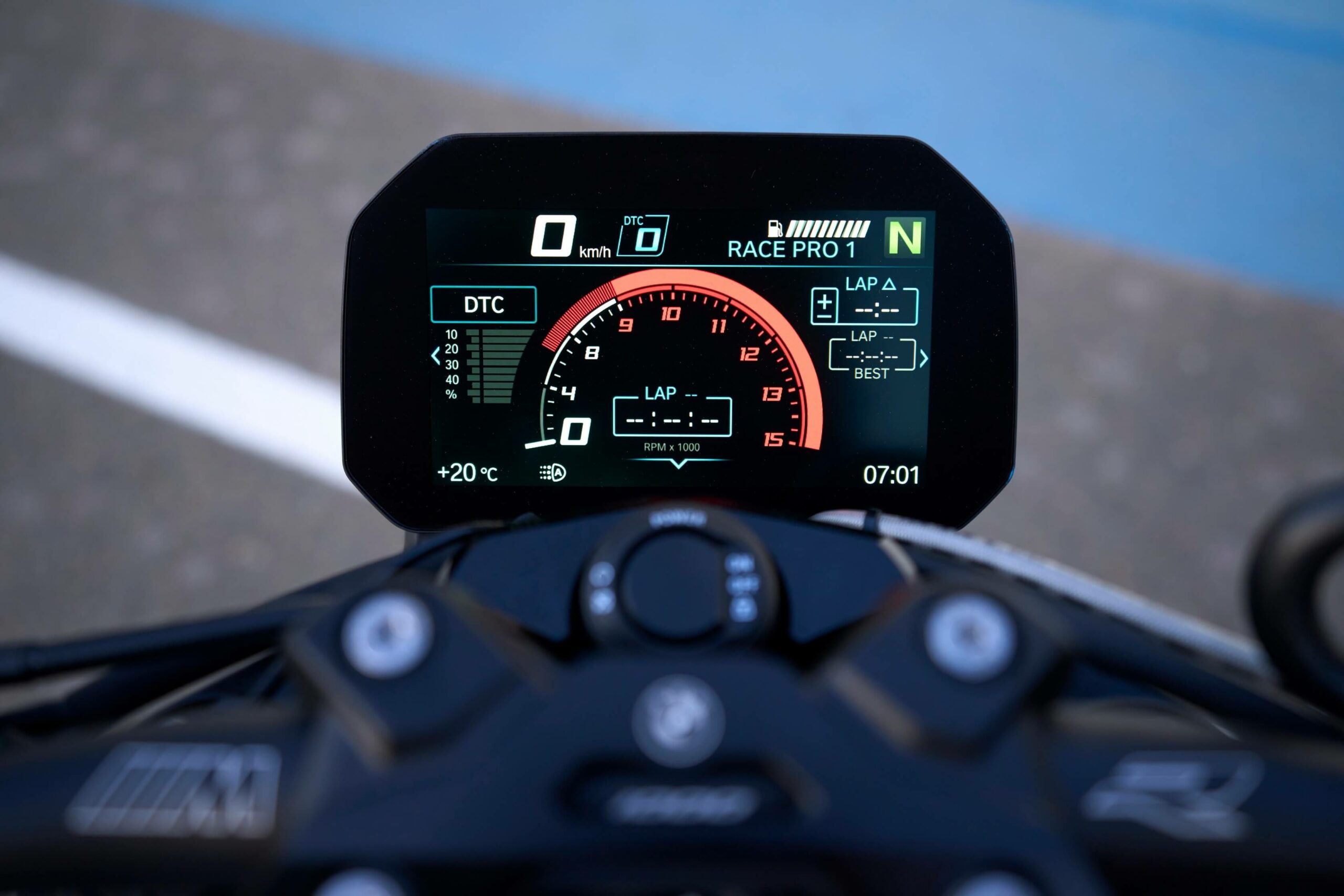 At the heart of the new M 1000 R is a water-cooled 999-cc four-cylinder engine that now revs at up to 14,600 rpm instead of the previous 12,000 rpm. BMW Motorrad claims there’s substantially more torque than before between 10,000 rpm and 12,000 rpm for better acceleration. Speaking of performance, it needs 2.9 seconds to go from 37 mph to 62 mph, thus shaving off a considerable four-tenths of a second compared to the S 1000 R.
