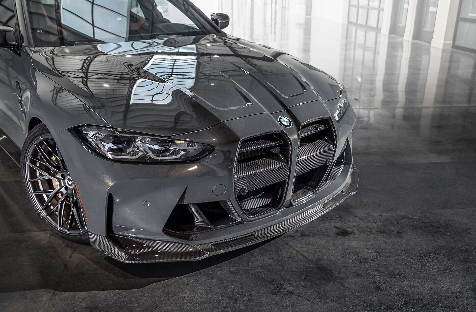 This new Vorsteiner kit consists of three main components; the VRS Aero carbon fiber front spoiler, the VRS Aero carbon fiber decklid spoiler, and the VRS Aero carbon fiber front grille/ VRS Aero ABS front grille. The decklid and front spoilers are pretty typical aero bits, adding some more aggression and maybe some increased downforce.