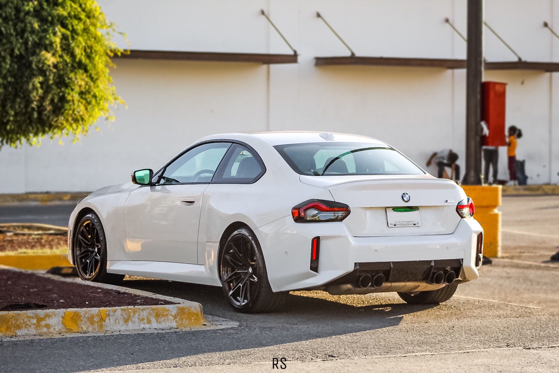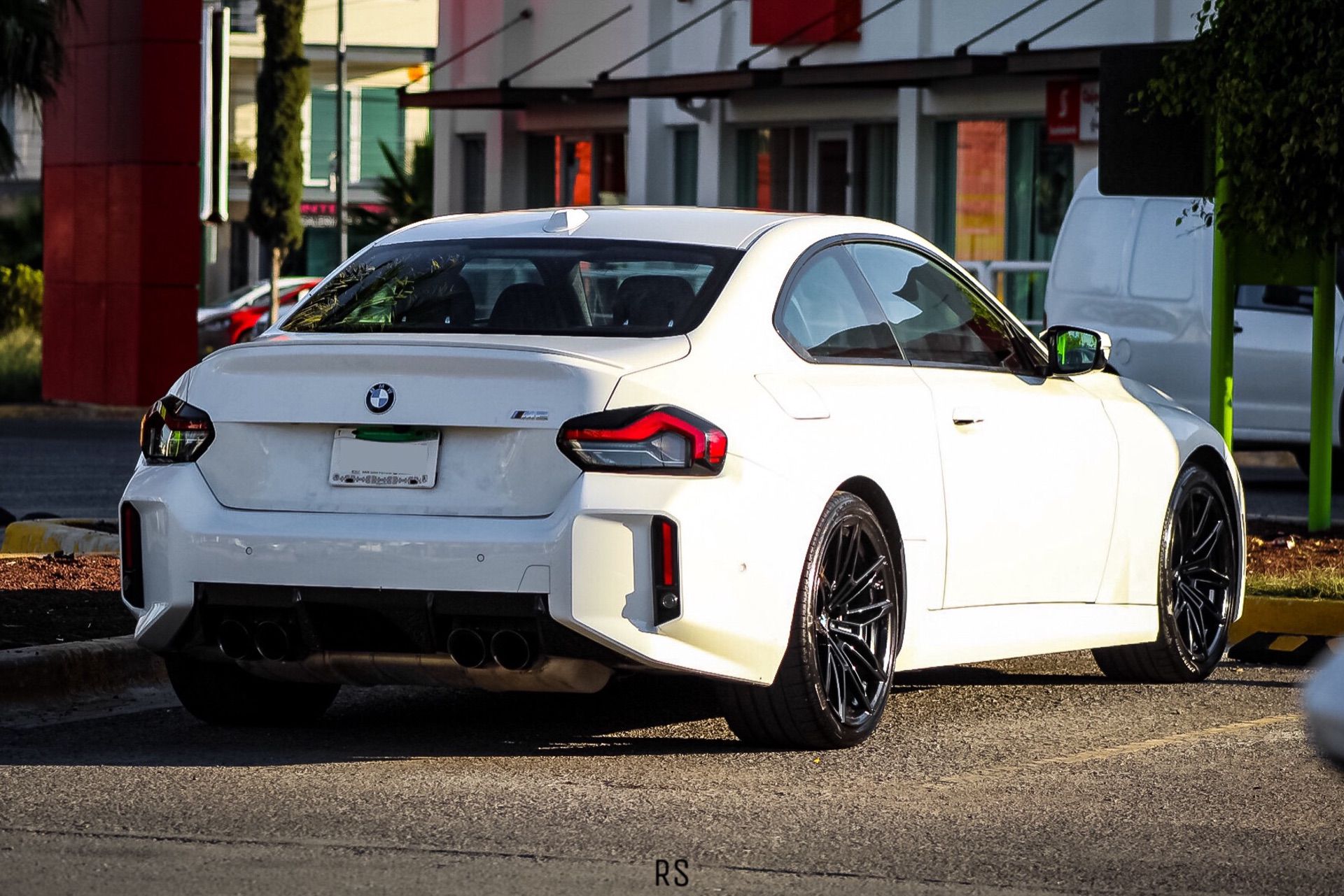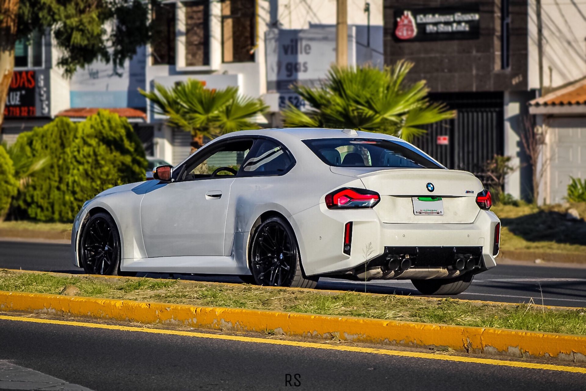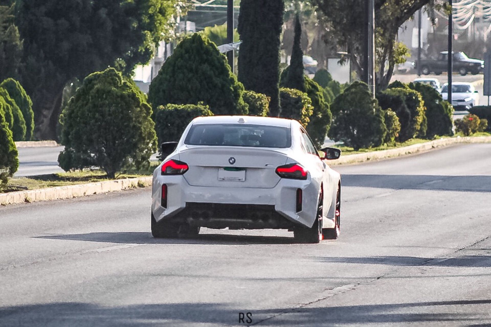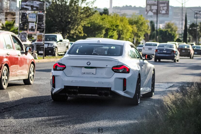 First real life photos of the 2023 BMW M2 in Alpine White are finally here. Spotted in Mexico, near the San Luis Potosi plant, this G87 M2 also comes standard headlights, regular trim instead of the Extended Shadowline Package and with a sunroof. All the M2 positioning cars for marketing purposes came in either Toronto Red or Zandvoort Blue, and with the optional carbon fiber roof.
