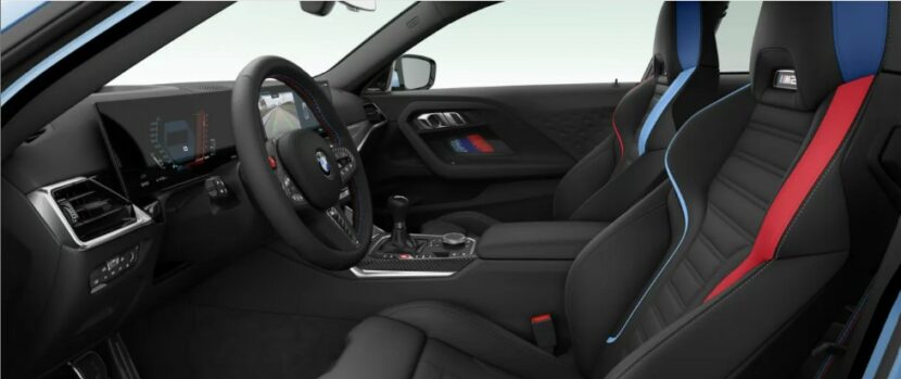 There are no engine choices, just the standard S58, but I did click the box for manual transmission. I had a tough time choosing a color, but ultimately settled on Zandvoort Blue as it is currently unique to the M2, and I like it. A close second goes to Toronto Red, as the “hero car” in all the press photos. It doesn’t look terrible in white, either.Â