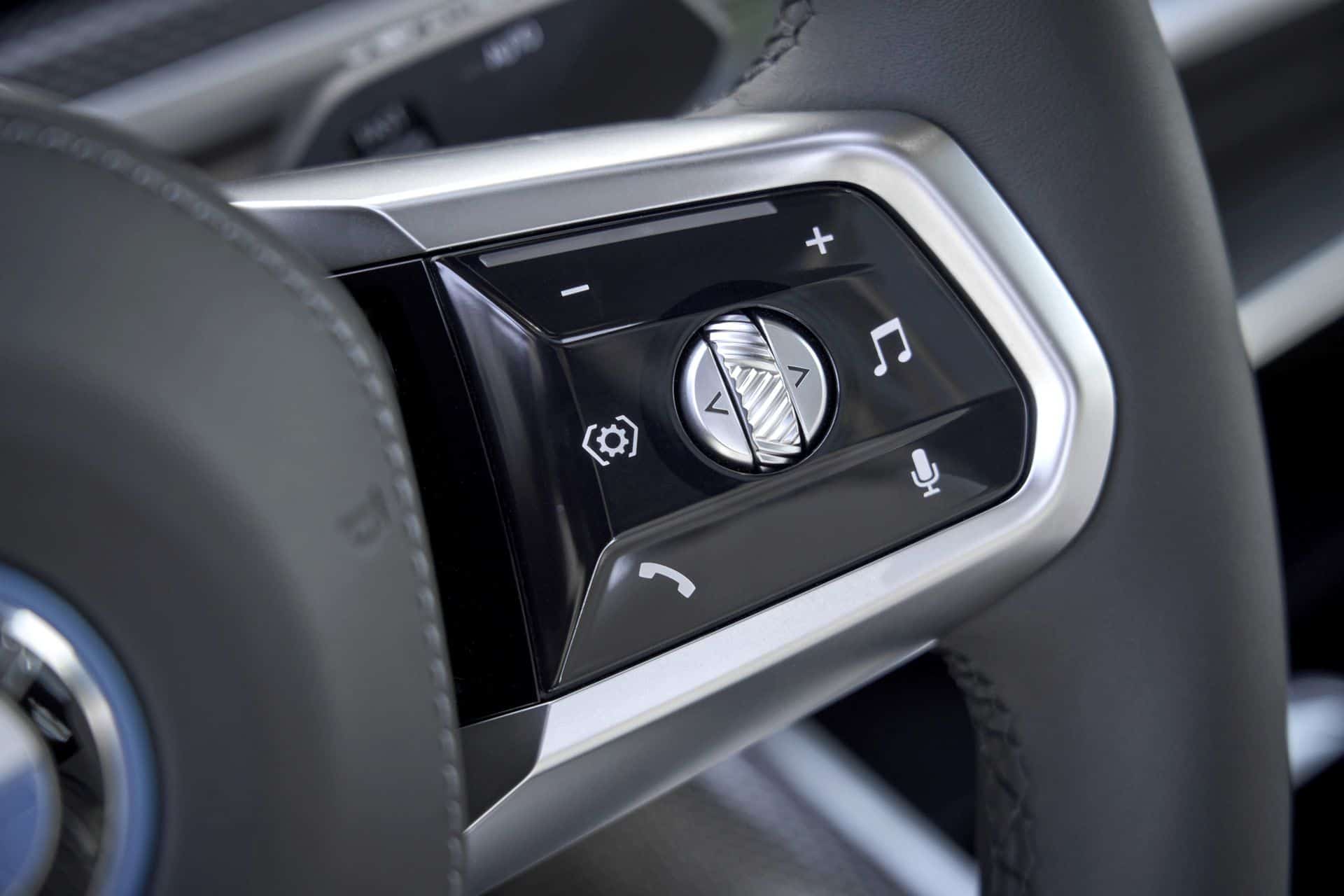 Most of the colors are current favorites like Aventurin Red and Tanzanite Blue, but there’s also some new Frozen colors (Pure Grey and Deep Grey) and “Space Silver Metallic”, only available on the Luxury trim cars. Carbon Black is present also and it’s one of our favorites. All of the colors come at no cost, except Dravit Grey and Tanzanite ($1950 each) and the Frozen colors ($5,000). In this case, the i7 we drove was painted in Frozen Deep Grey.