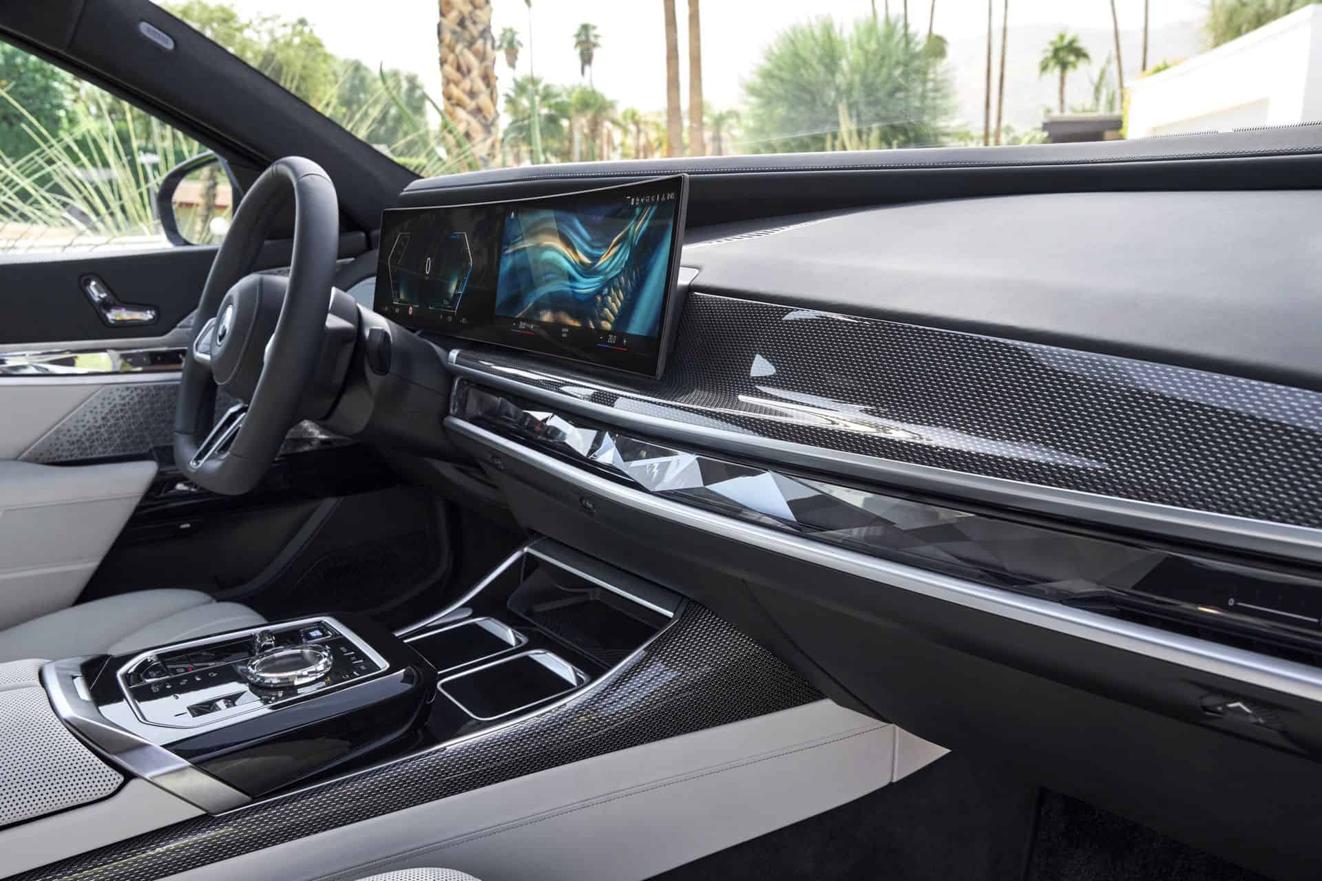 Naturally, the extravagant cabin of the BMW i7 offers a lot of different options. Choose between Extended and Full Merino Leather options, and then pick your color. Full Merino Leather will set you back $5,450 and a special Smoke White interior with cashmere inlays commands $6,300. Other colors include Amarone, Tartufo, and black. There’s five choices for interior trim and you can never go wrong with a Carbon Fiber trim – an obvious choice in an M Sport car.