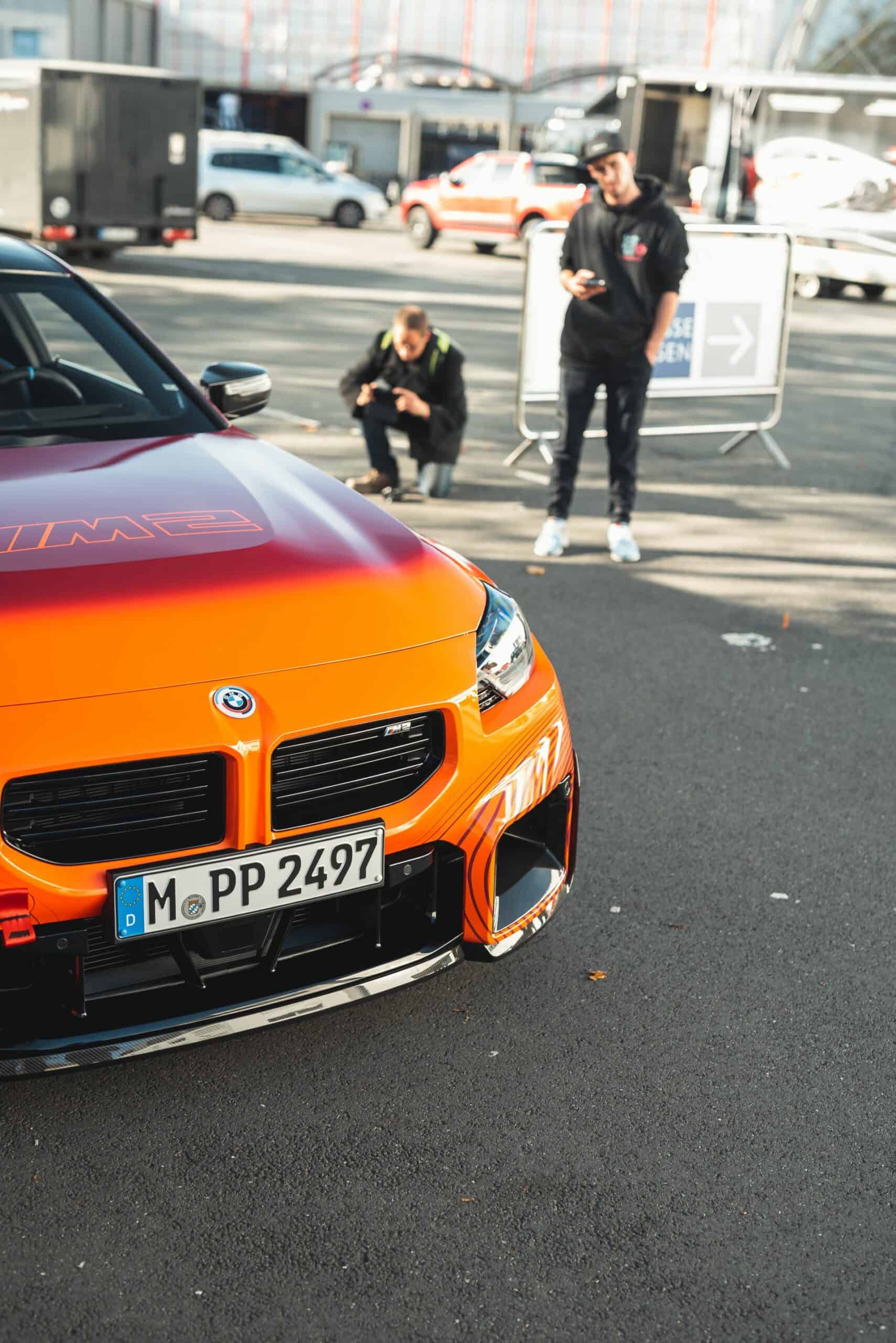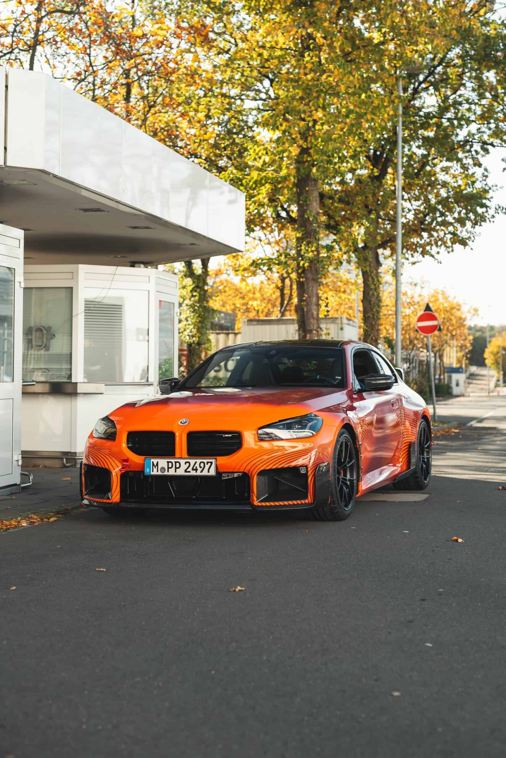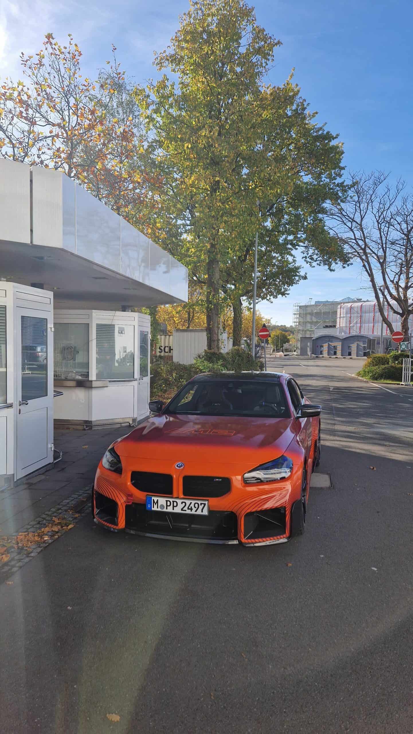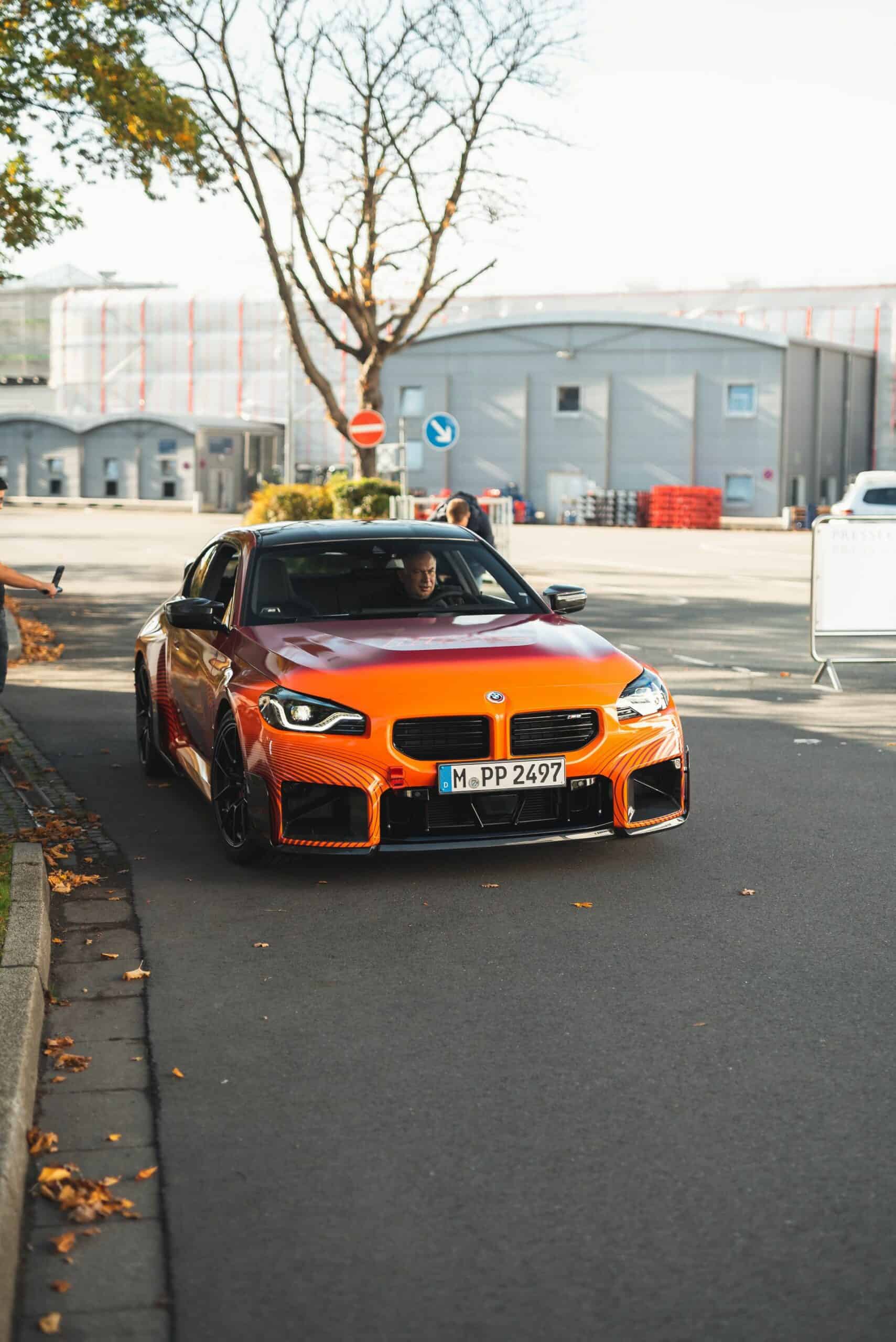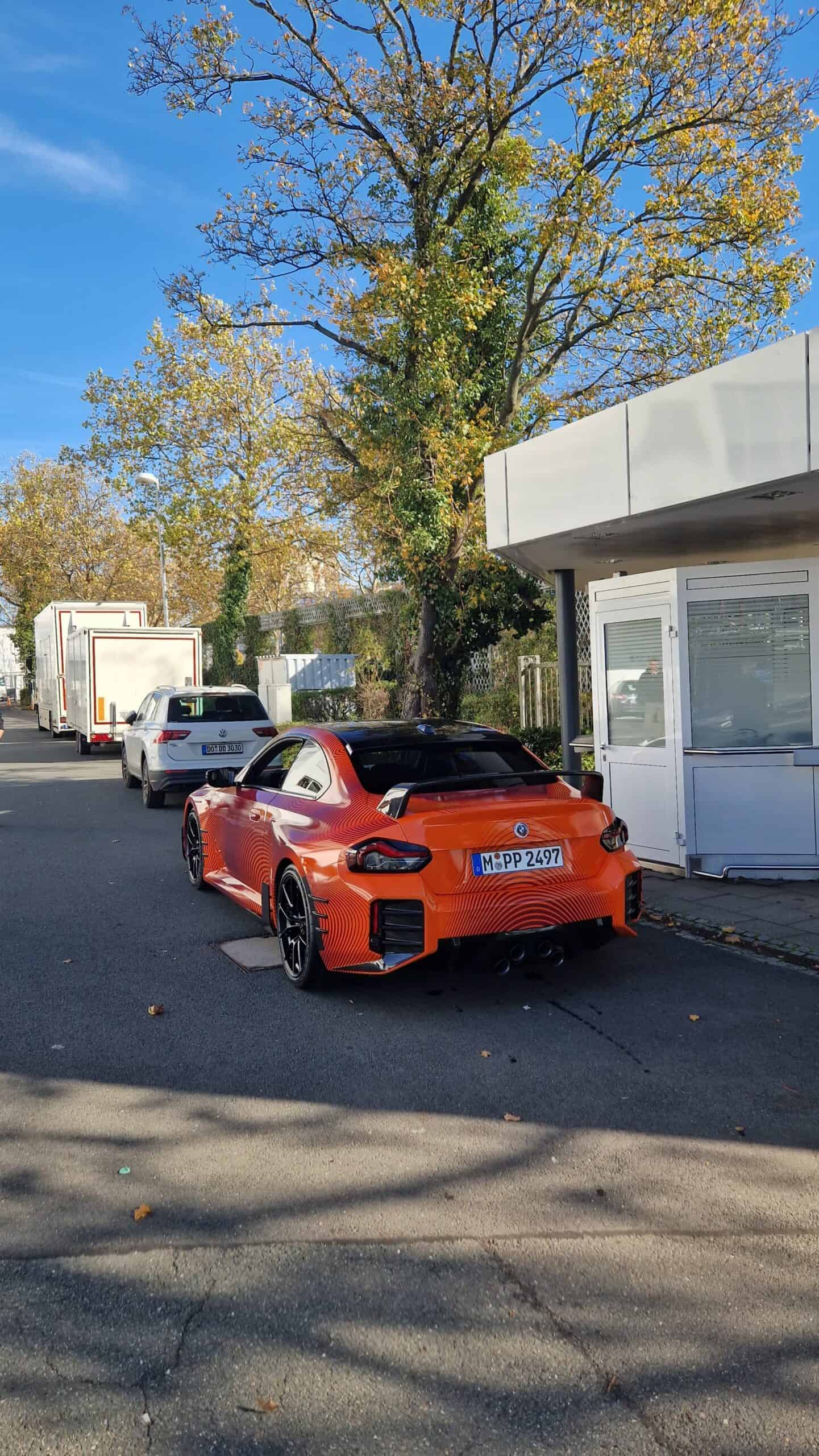 BMW’s new M Performance parts for the G87 M2 are becoming quite popular on the interwebs. It seems there are new photos of the orange wrapped promo car featuring all of the M2’s extra goodies. It’s no surprise, though. The BMW M2 is a hot item at the moment and its M Performance parts make it look even more extreme. This time, though, the vibrant M2 was seen on the street, out in public.