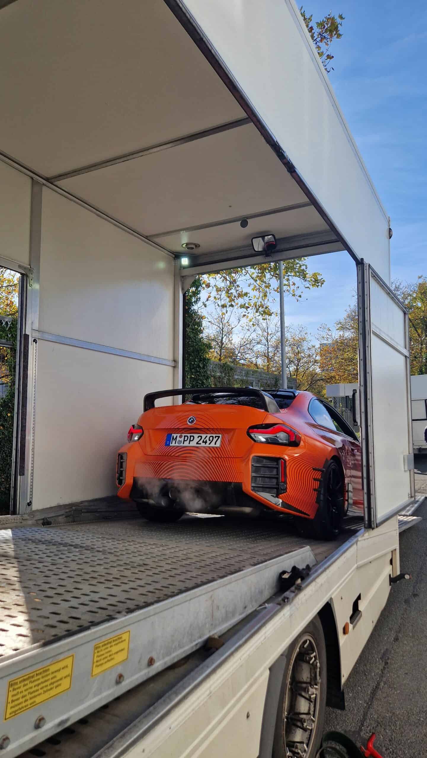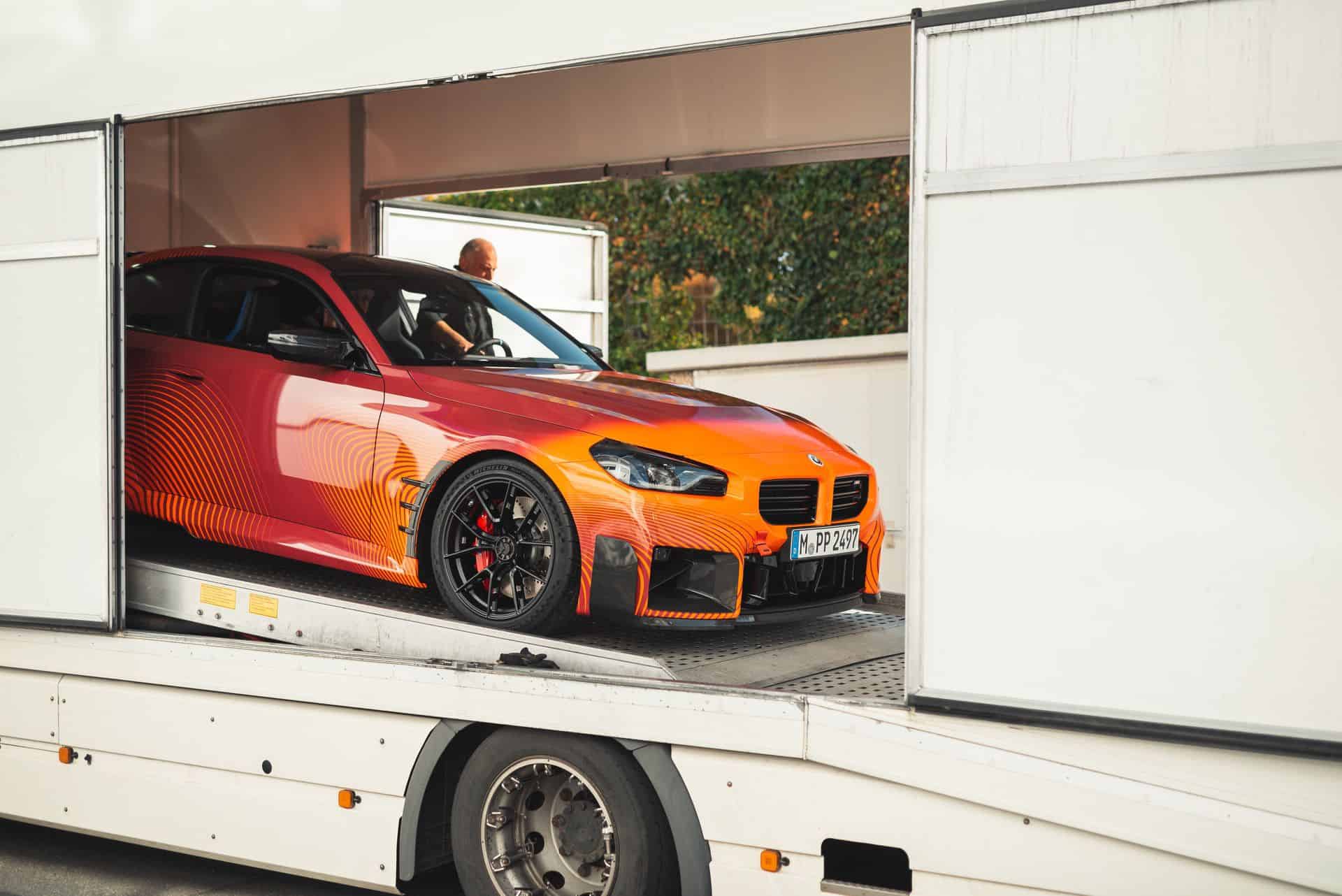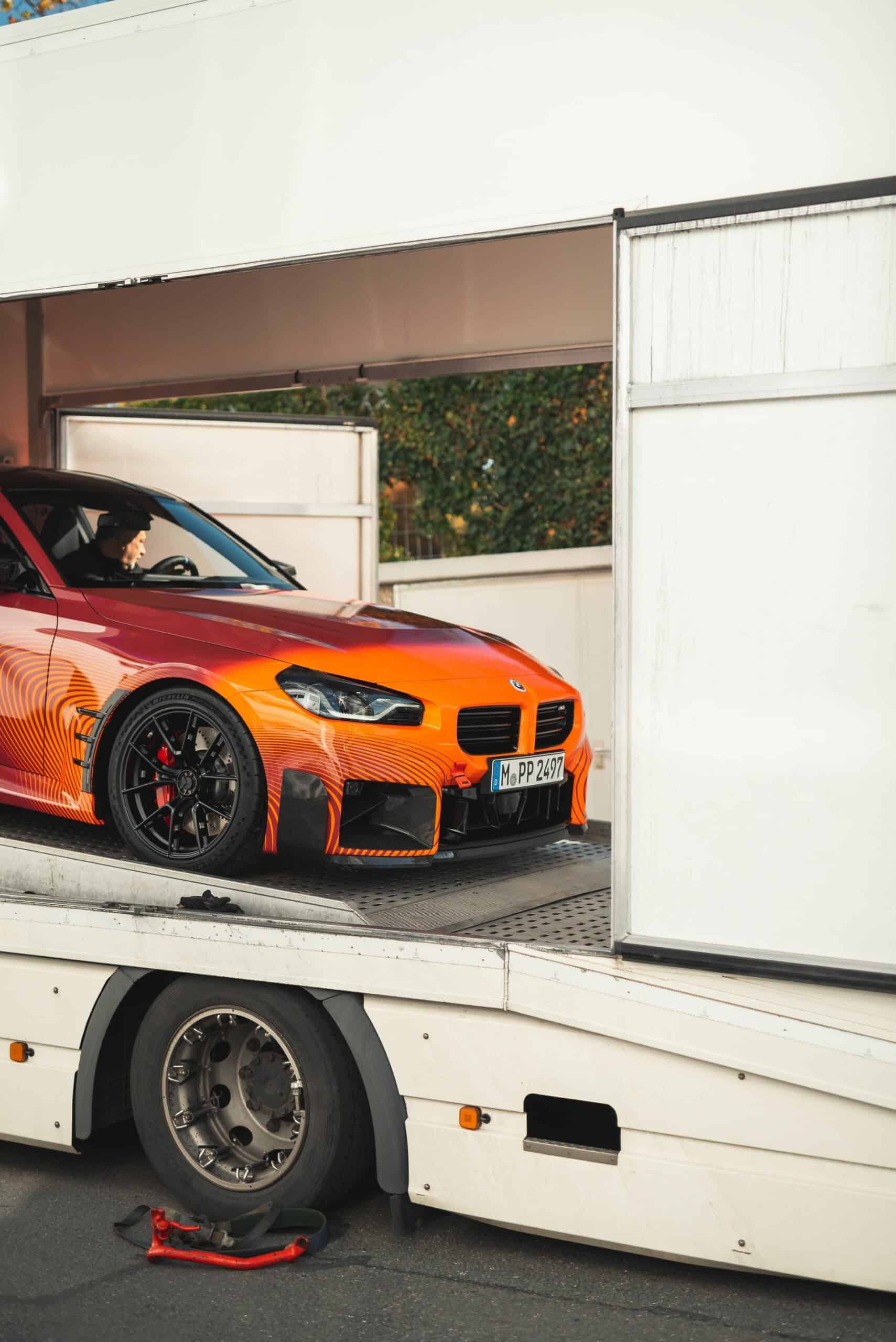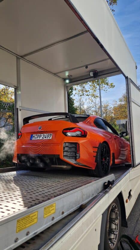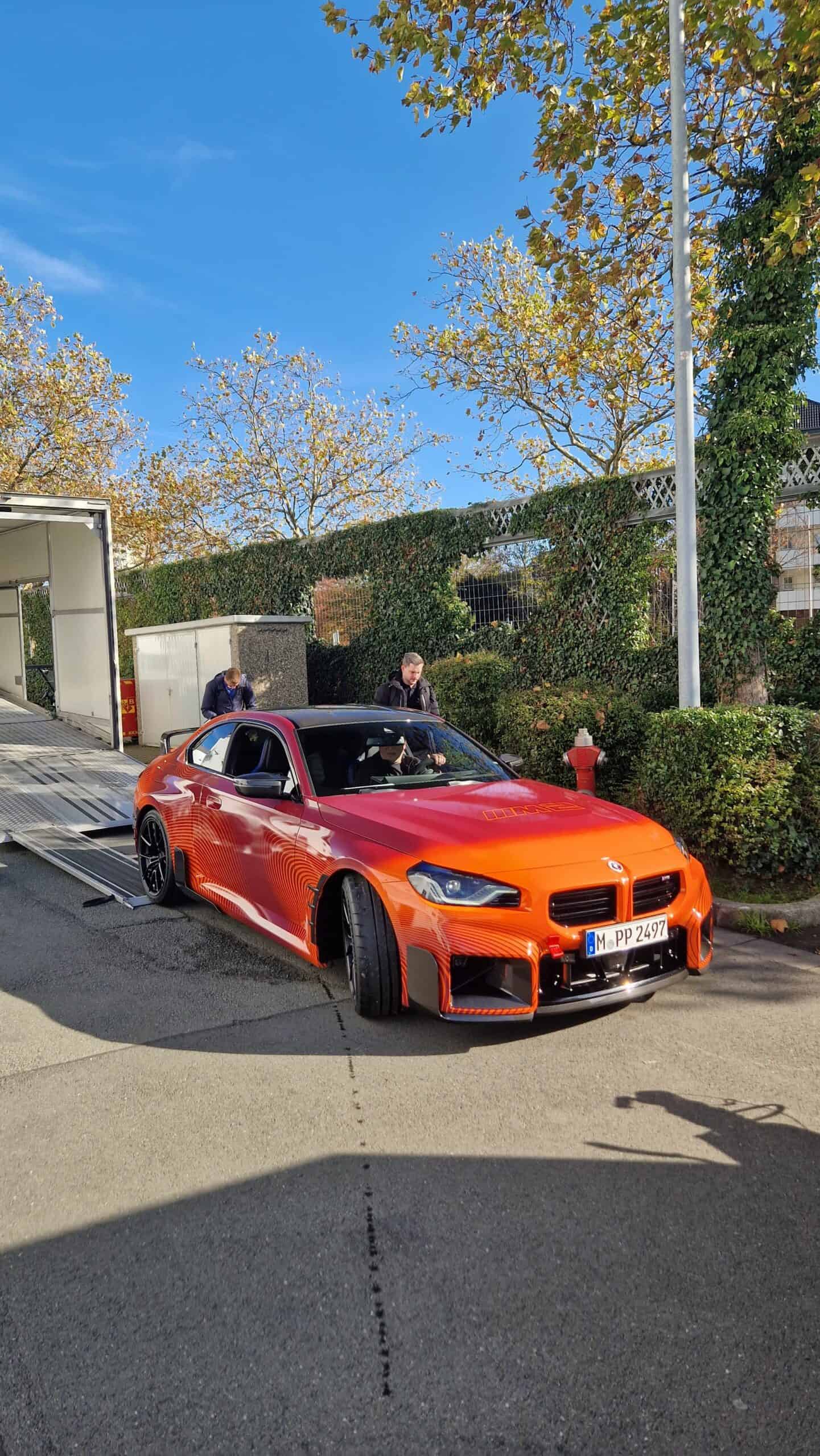BMW’s new M Performance parts for the G87 M2 are becoming quite popular on the interwebs. It seems there are new photos of the orange wrapped promo car featuring all of the M2’s extra goodies. It’s no surprise, though. The BMW M2 is a hot item at the moment and its M Performance parts make it look even more extreme. This time, though, the vibrant M2 was seen on the street, out in public.