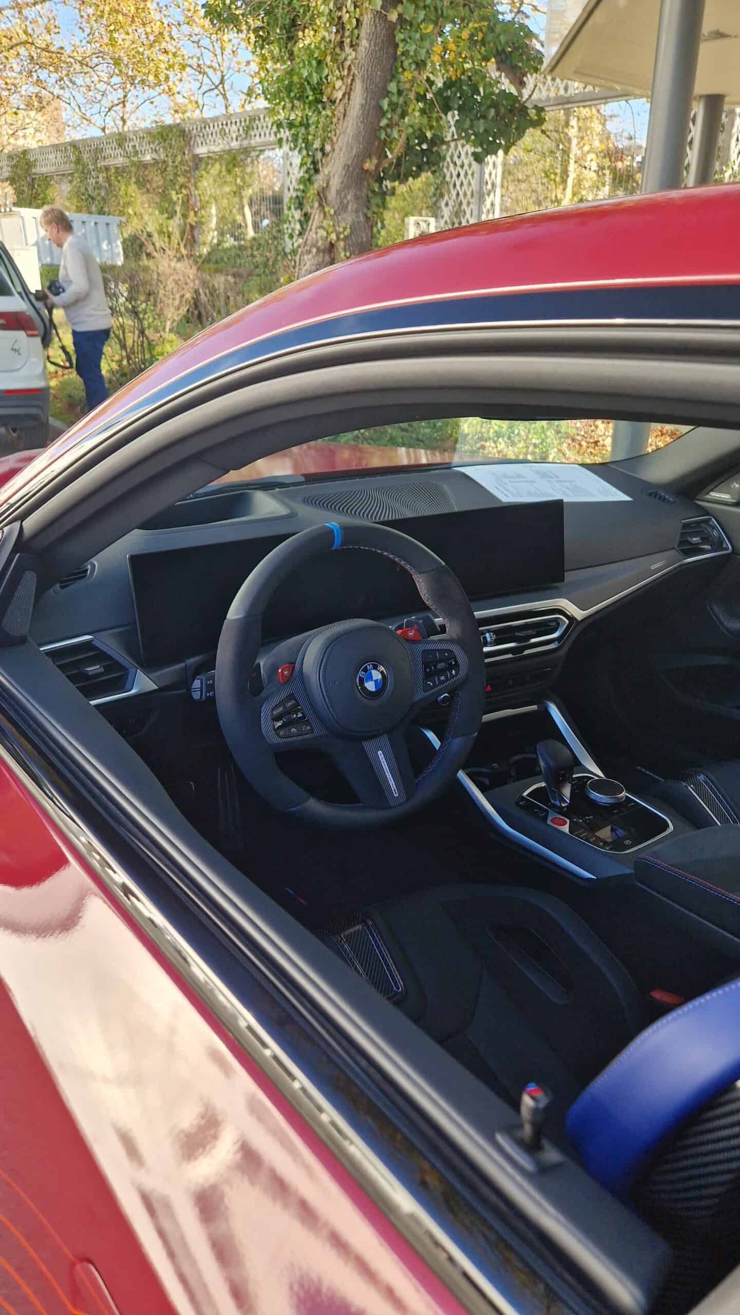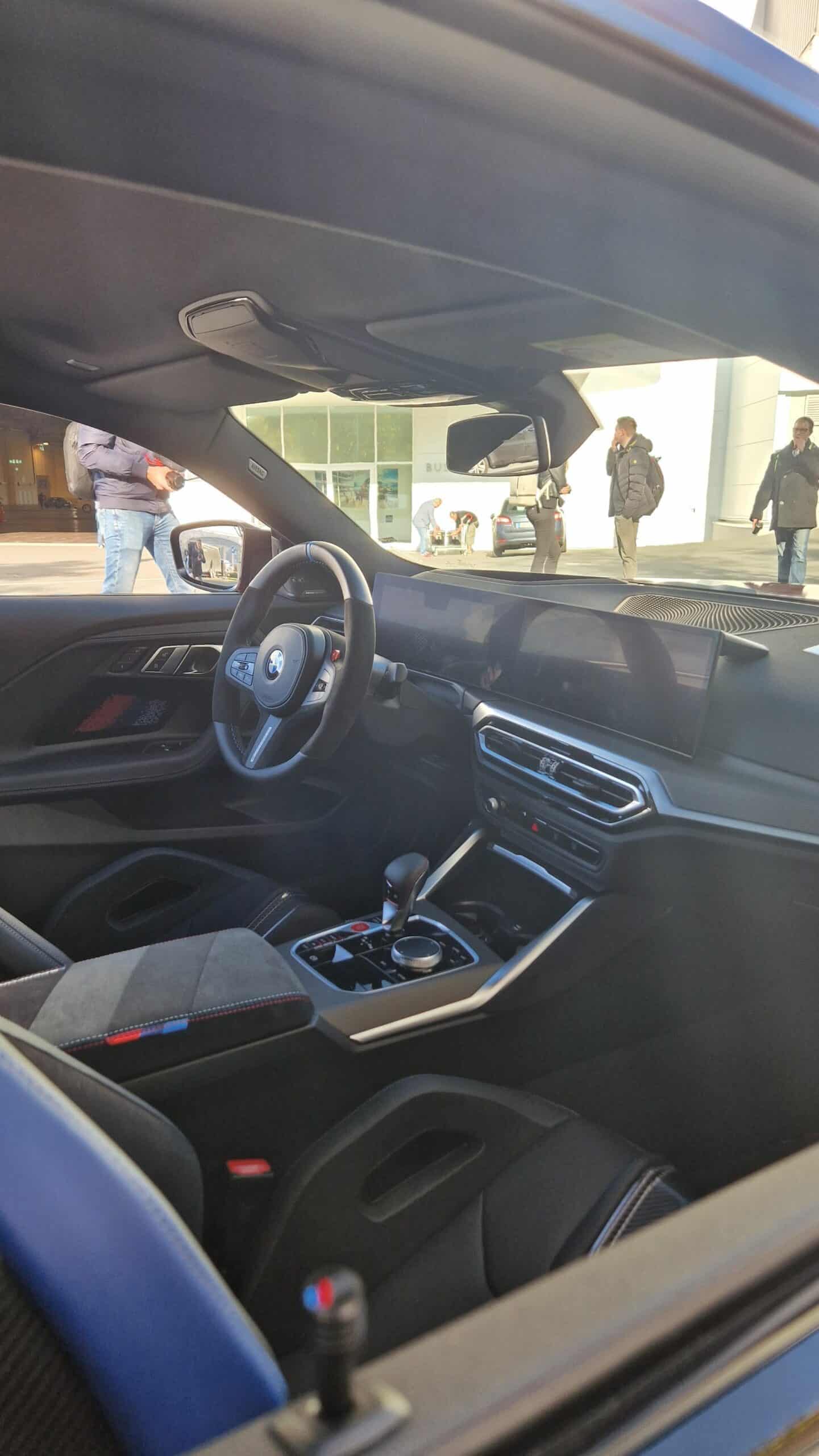 It gets some goodies inside, too. There’s an upgraded steering wheel, which features Alcantara sides and a blue strip at 12 o’clock. It also has an Alcantara armrest with M-colored stripes and—the real performance upgrade—M-colored door locks.