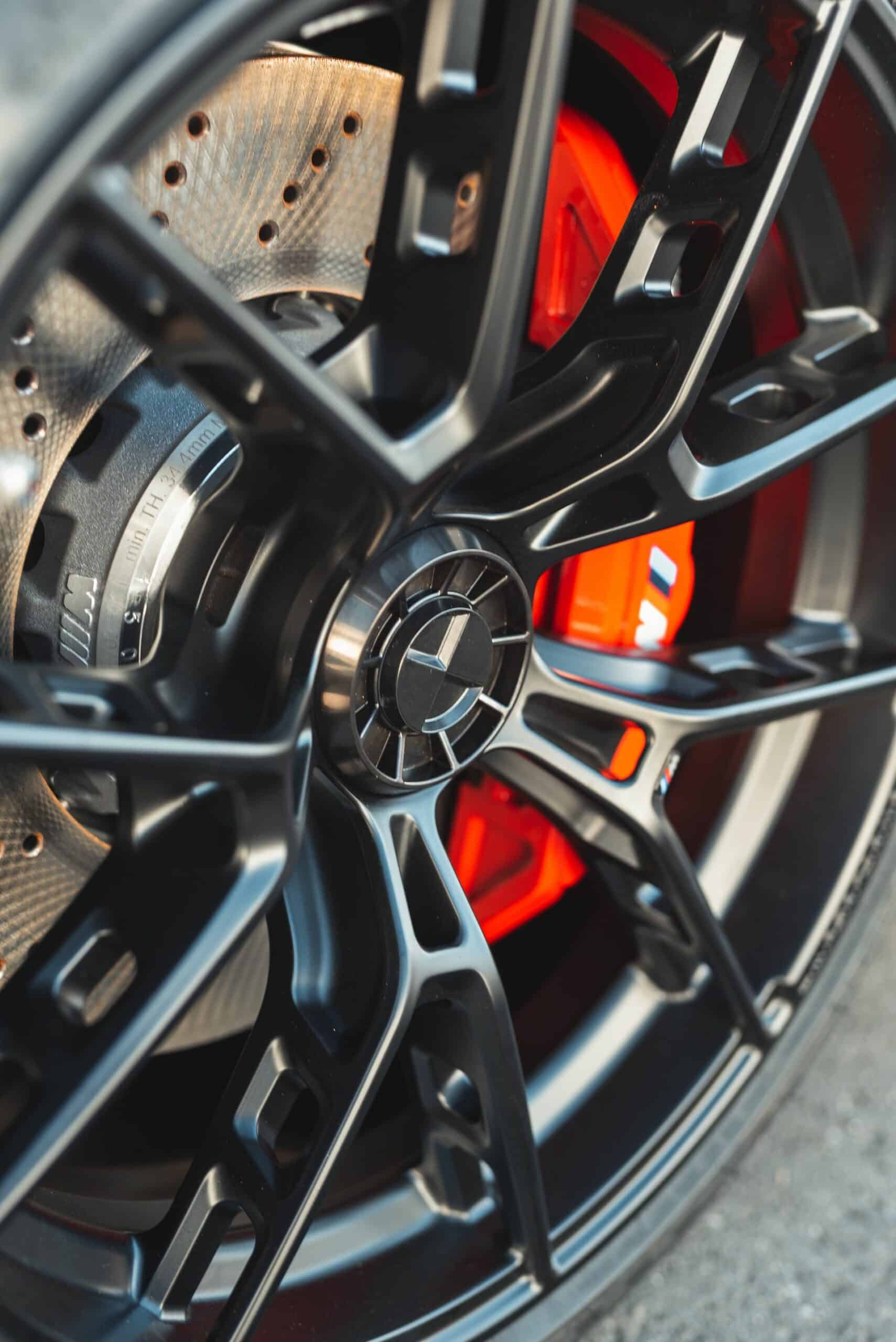 In these new photos, you can see the BMW M2 all decked out in its upgraded parts. It has the full catalog, with every box checked: front bumper, rear diffuser, side strakes, fixed rear wing, carbon bits, and—my personal favorite—the upgraded wheels. BMW’s new M Performance wheel option for the M2 are icy-cool lightweight black wheels but the best part about them is that they’re center lock wheels. Rather than having five lug nuts, like normal, they feature one, large, center locking lug, like a race car. It’s something Porsche’s offered on its GT cars for years but this is the first time BMW is offering such wheels.