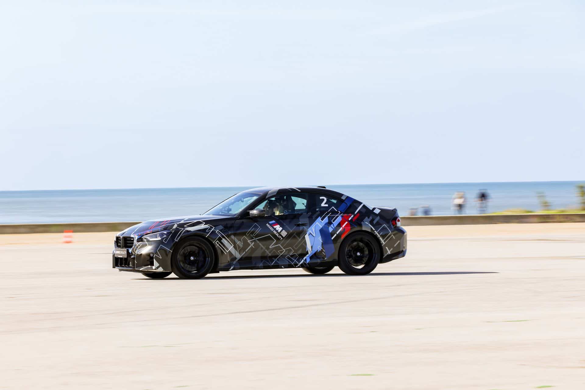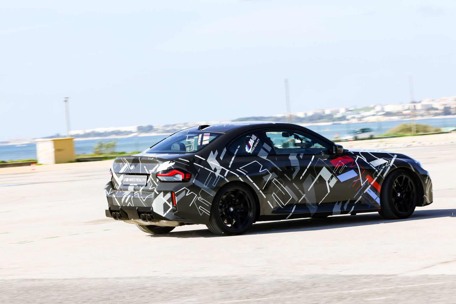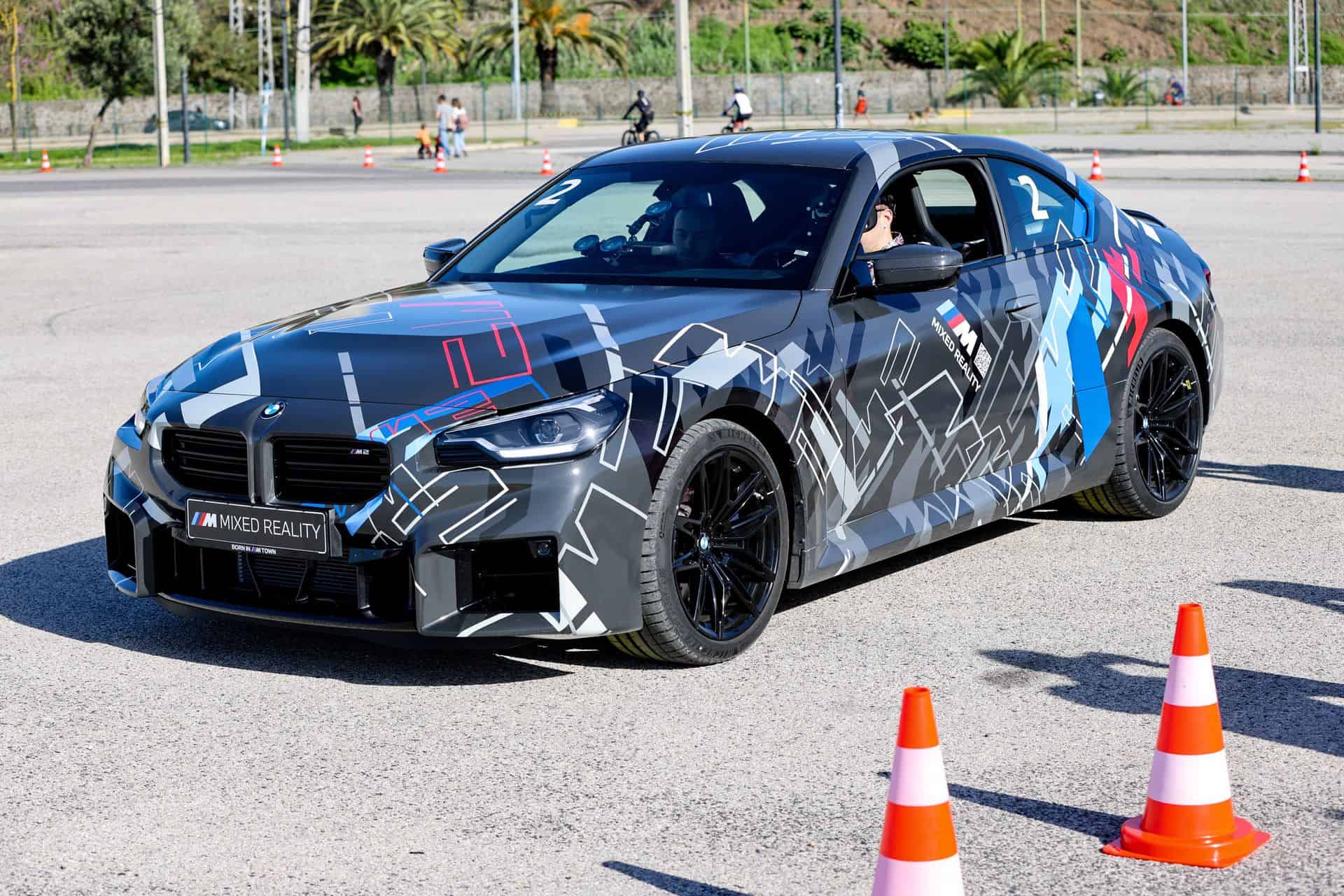 In this new video, you can experience the BMW M2 with a VR headset, on virtual race track, yet in a physical empty parking lot. What we saw through the headset was a digital, futuristic racetrack, like something out of an arcade game. We drove through it, collected Roundel tokens in the track like it was Bavarian Mario Kart, and had to stop in a digital box. In reality, we were actually driving and even sliding the real BMW M2, with a safety engineer in the passenger seat. So in a way, we were immersed in a virtual world physically driving the new G87 M2.
