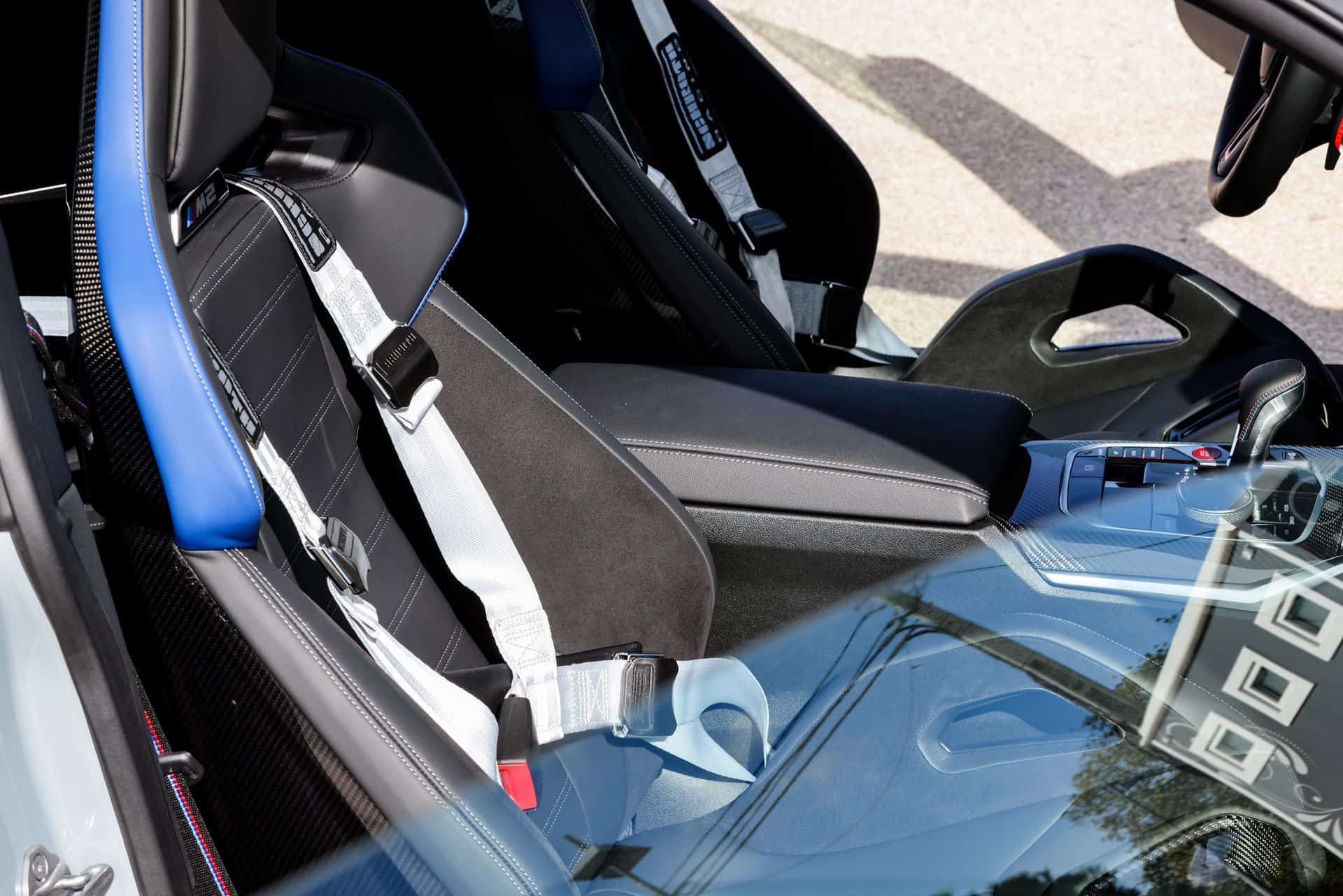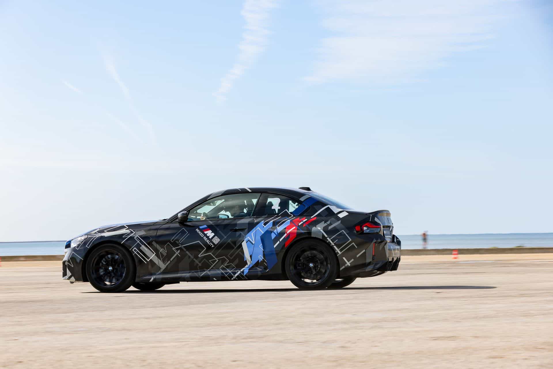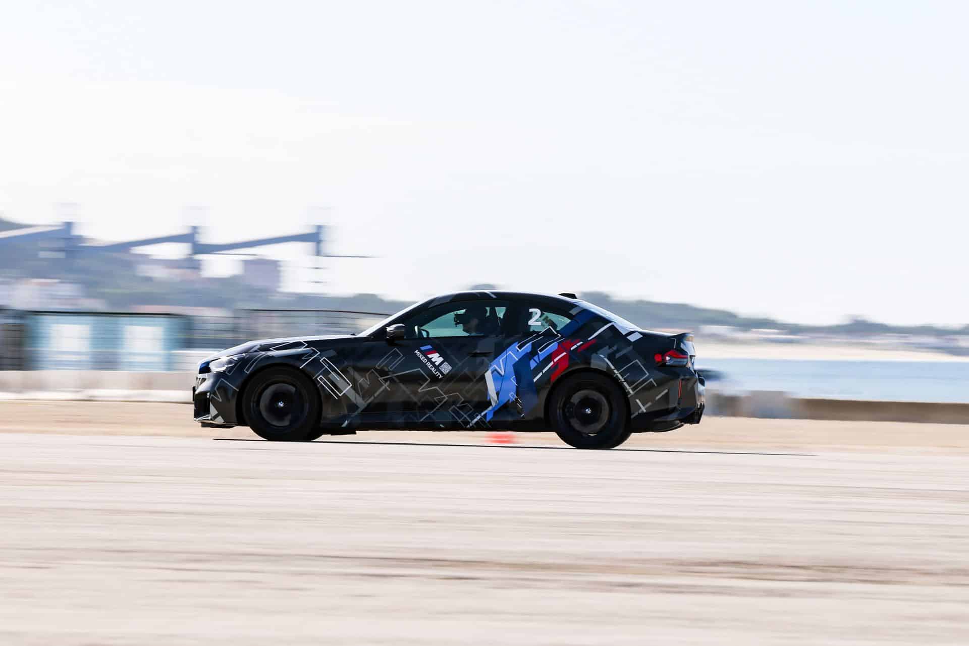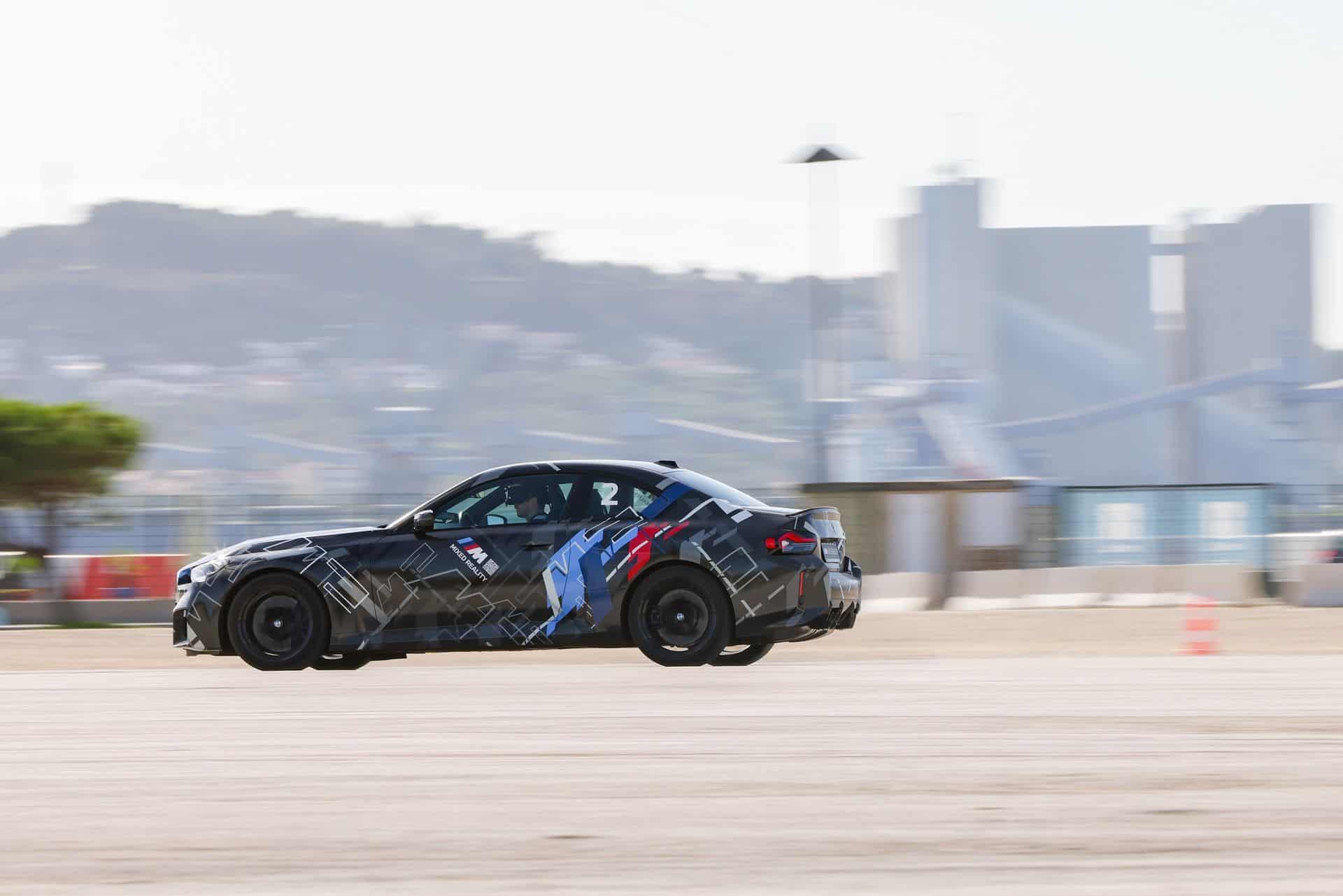 In this new video, you can experience the BMW M2 with a VR headset, on virtual race track, yet in a physical empty parking lot. What we saw through the headset was a digital, futuristic racetrack, like something out of an arcade game. We drove through it, collected Roundel tokens in the track like it was Bavarian Mario Kart, and had to stop in a digital box. In reality, we were actually driving and even sliding the real BMW M2, with a safety engineer in the passenger seat. So in a way, we were immersed in a virtual world physically driving the new G87 M2.