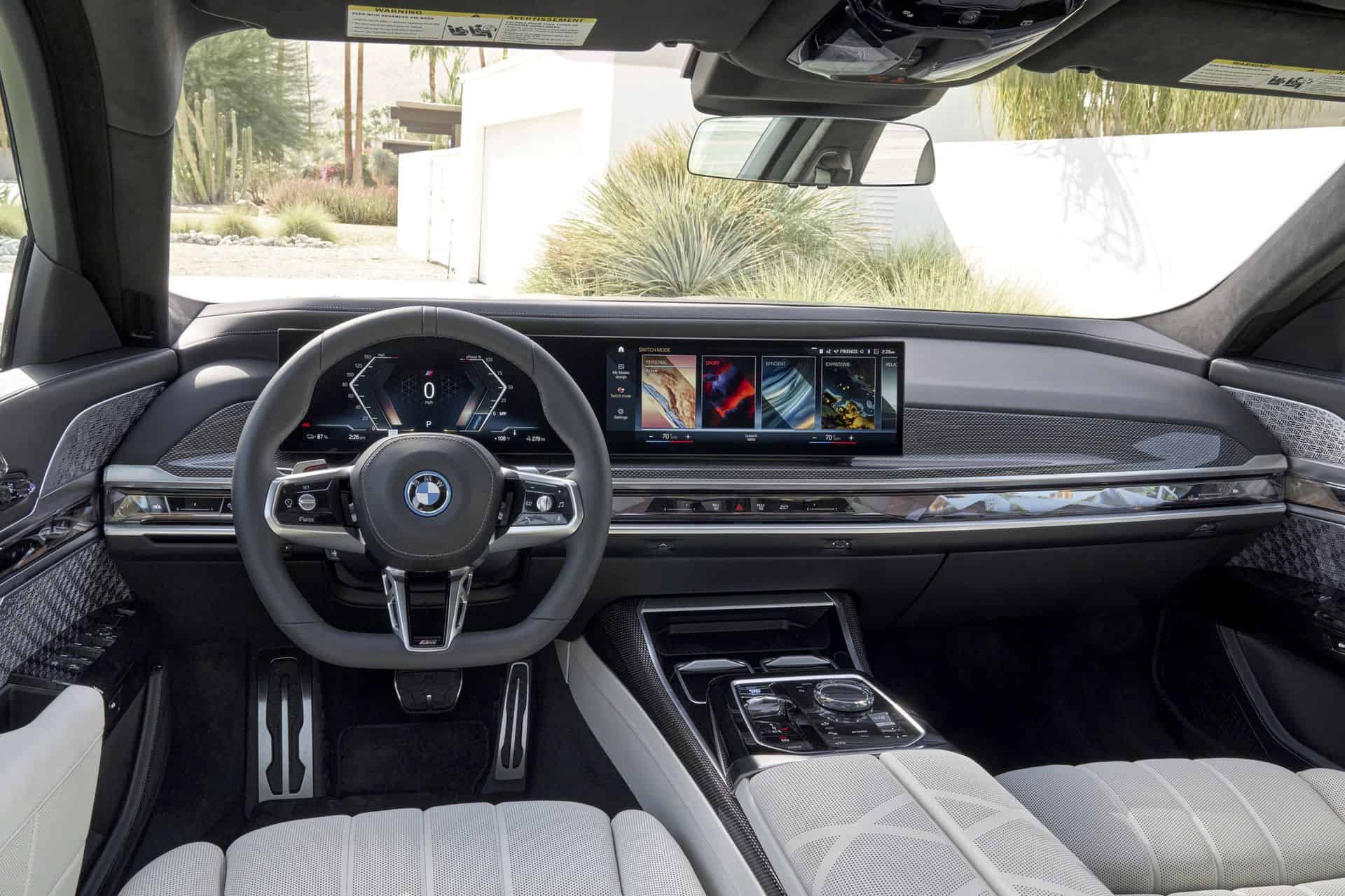 The fully electric sedan, in European specification, tips the scales at 2,640 kilograms (5,820 pounds) without a driver. But it makes up for it with a dual motor setup, made using no rare earth materials at all. Maximum power output is 536 horsepower and 549 lb-ft of torque, which gives it the same horsepower as the BMW 760i. According to BMW, 0-60 mph happens in 4.5 seconds and the i7 has a top speed of 149 mph. Now if you need more power, BMW has you covered with an eBoost Mode which provides some additional horsepower in the Sport Mode.