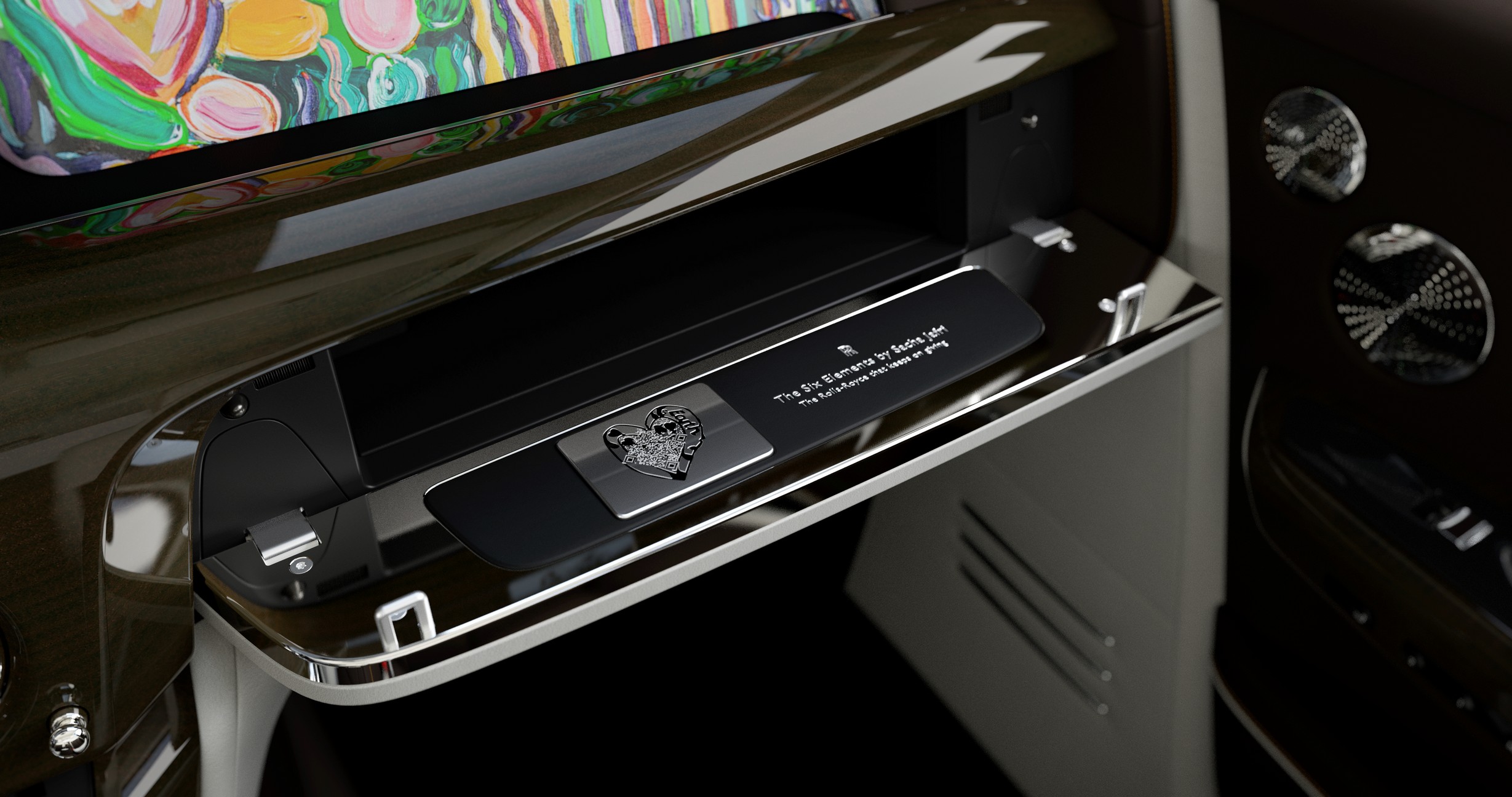 What makes these cars stand out from the “mundane” Phantom is the uniquely painted “Gallery,” which is marketing speak for the uninterrupted glass enclosure on the passenger side of the dashboard. For “The Six Elements,” it has been painted by artist Sacha Jafri, who took inspiration from the earth, water, fire, wind, air, and humanity.