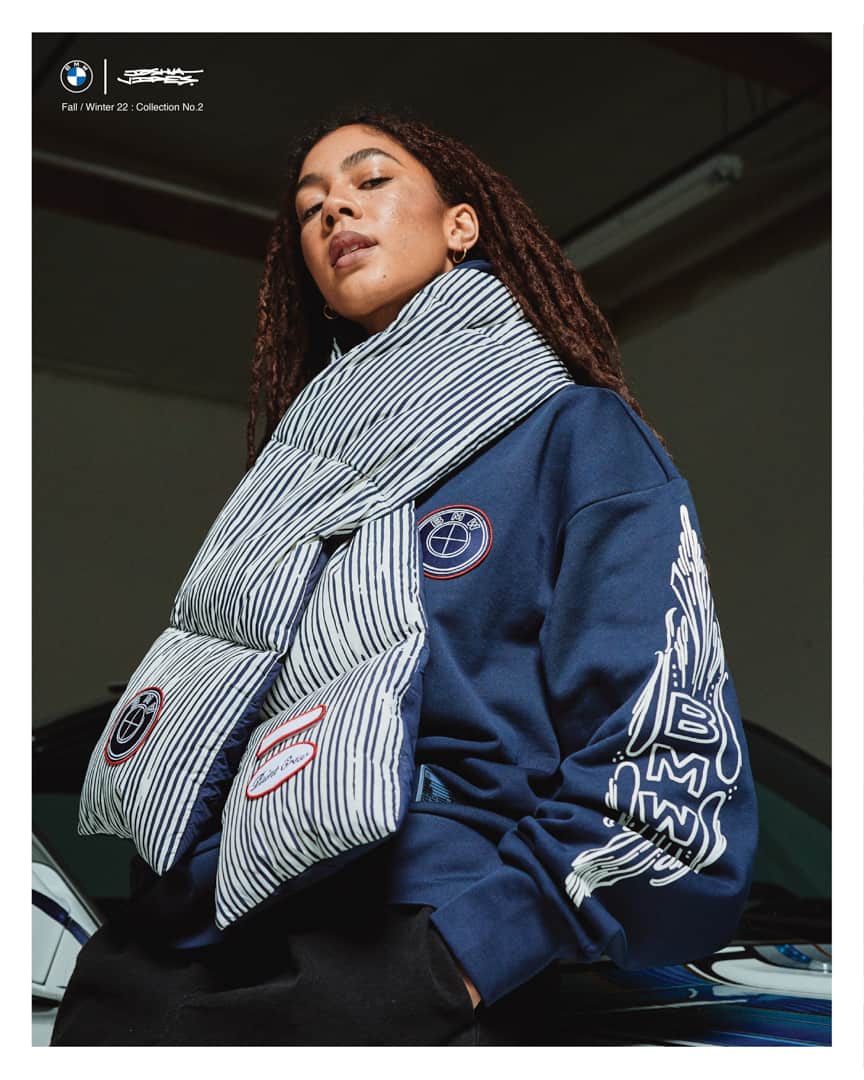 As for the apparel collection, it’s a fall/winter 2022 collection that features a few interesting pieces. The main design theme with the BMW/Vides fall/winter apparel collection is pin-striping, which makes up much of the designs. That design can be seen on most designs but is most apparent on the vest, the scarf, and the hat. There are also shirts that read “BMW Paint Crew” on the back and look pretty cool.