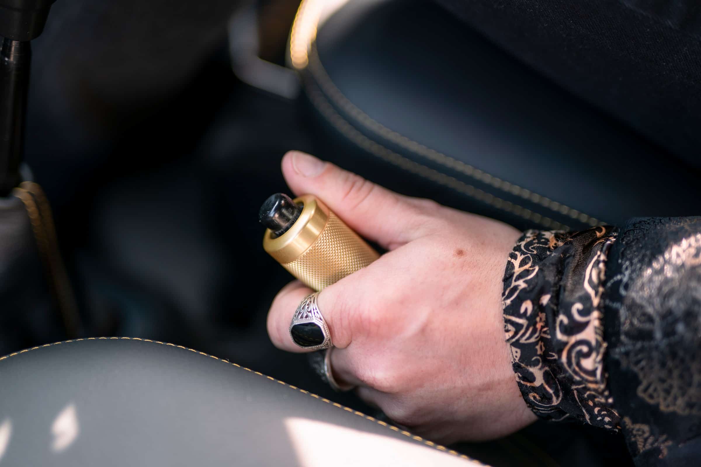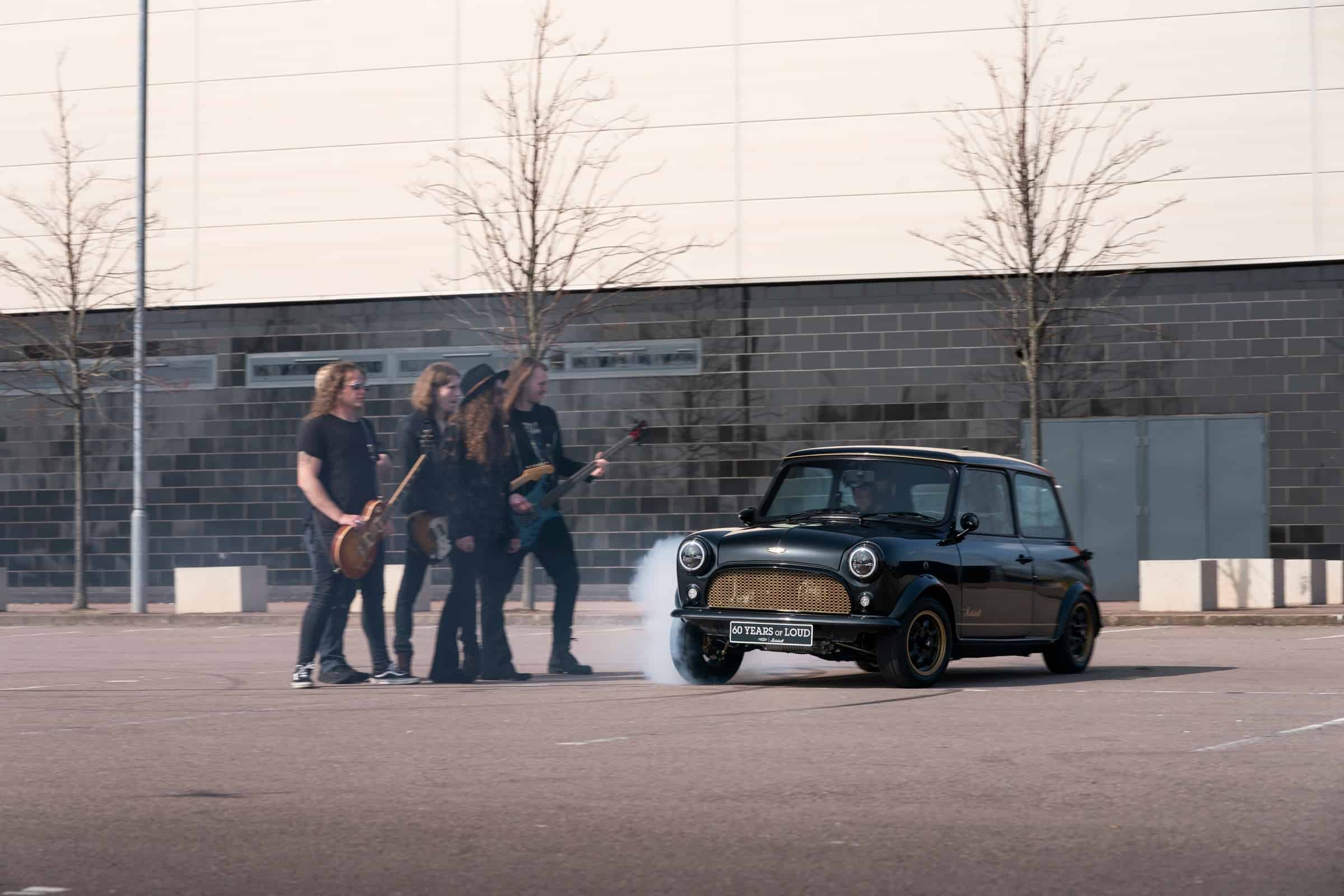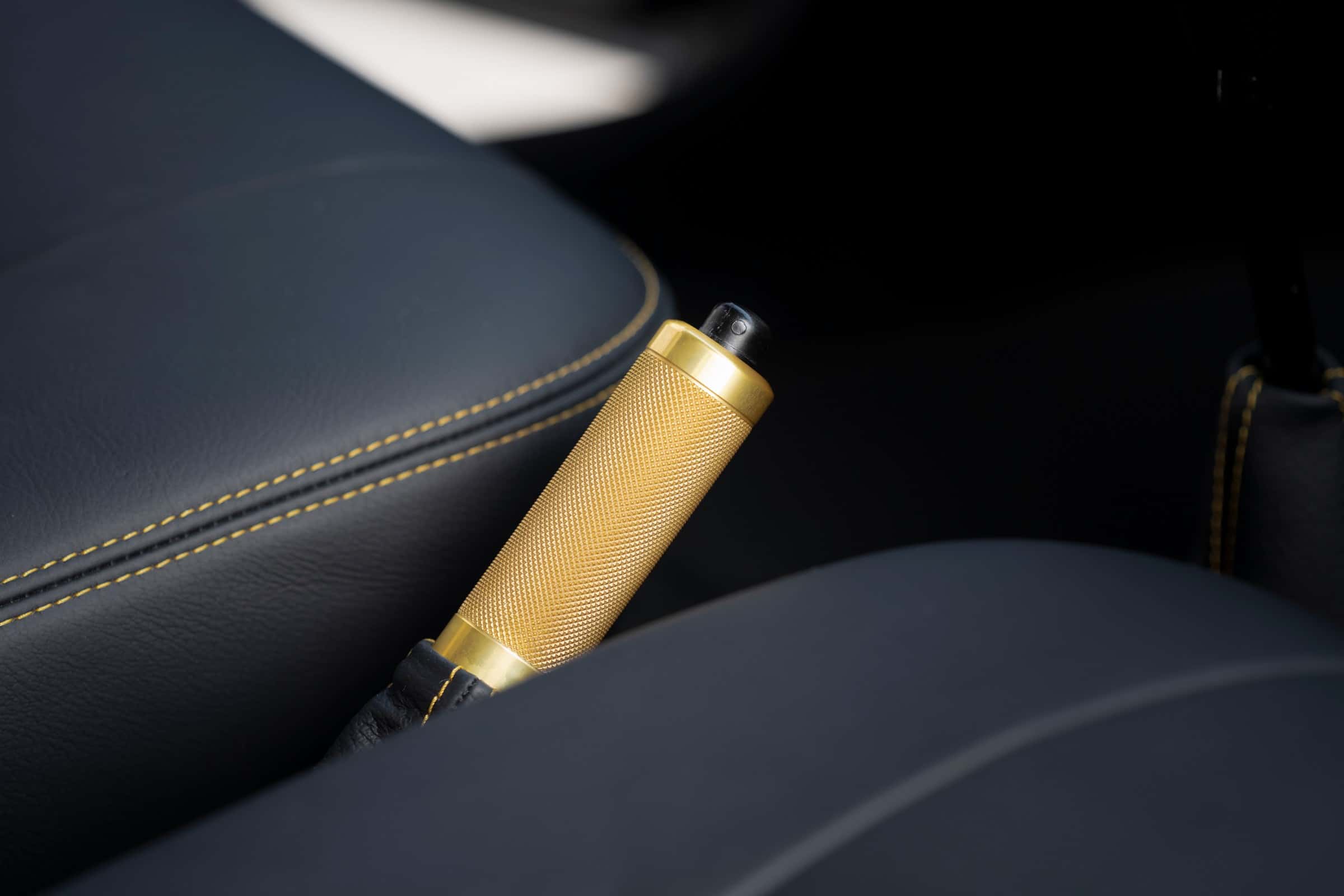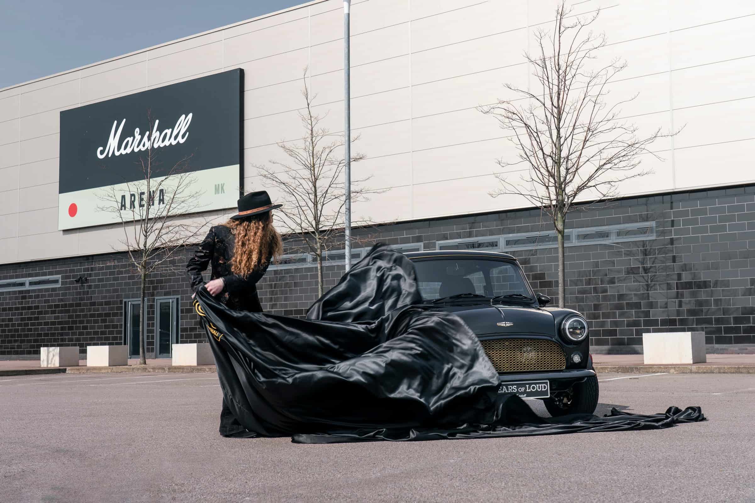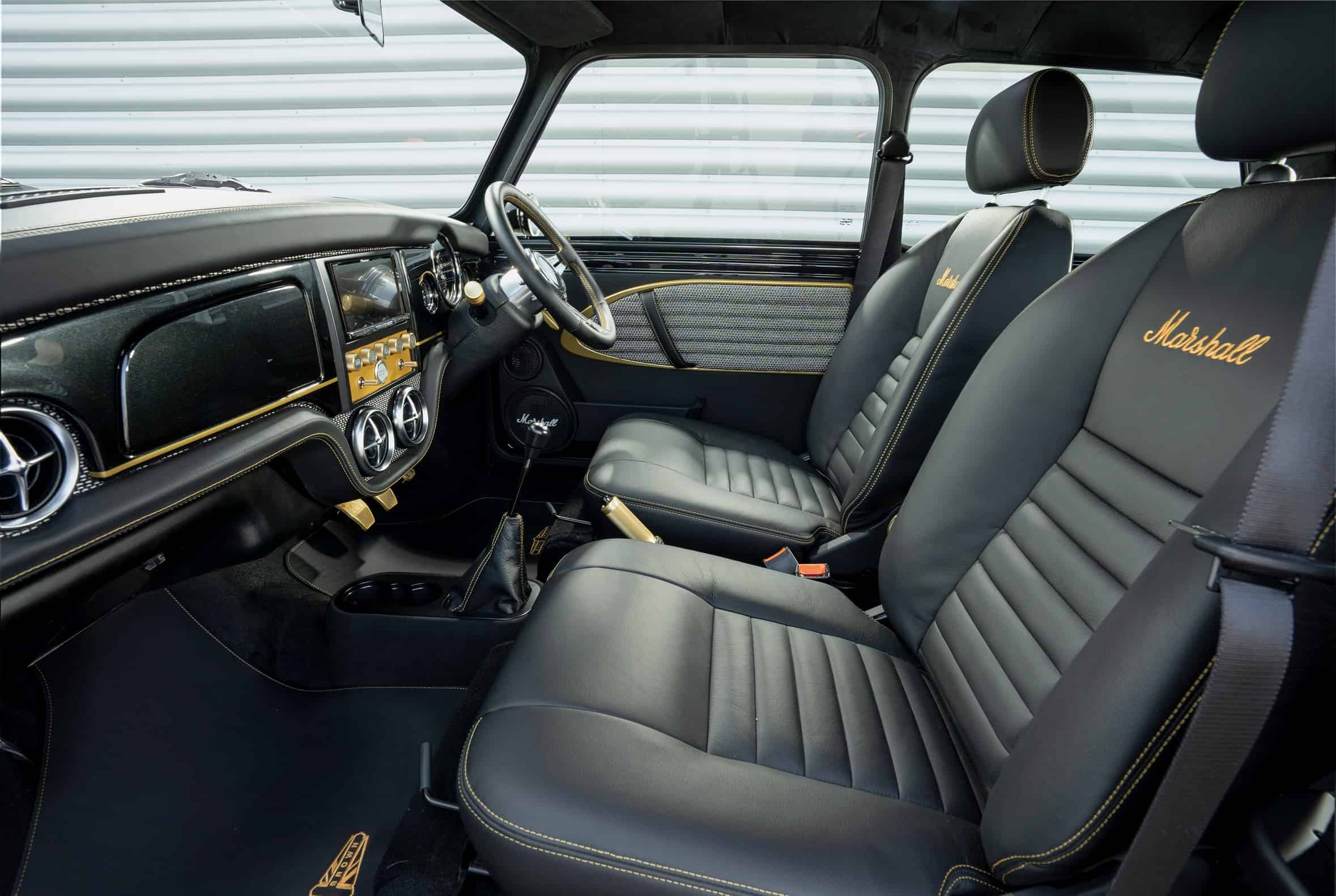 The music-themed Mini has flashy brake calipers in Marshall Gold combined with 12-inch wheels featuring M-branded center caps and gold accents. One of the most striking changes is at the front where David Brown Automotive installs a mesh grille with a design created to mirror Marshall’s audio equipment. Those swanky hand-made badges are also unique to the car and benefit from Marshall Gold enamel.