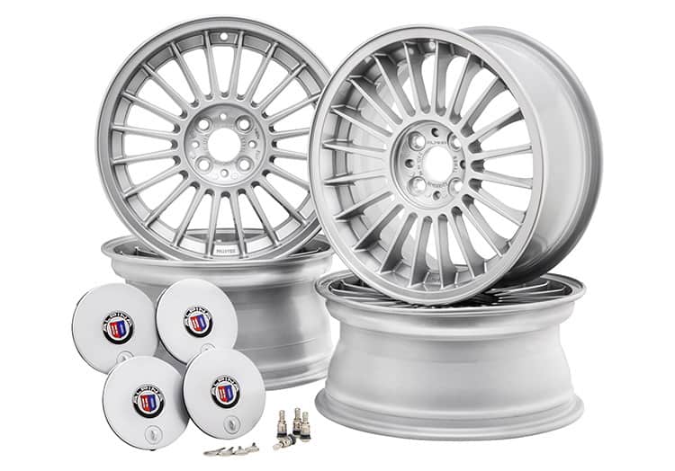 A complete set will set you back €2,990 (plus shipping) in Germany where current delivery times are extended by 5-6 days compared to the normal. ALPINA says fitting the 8Jx16 wheels on the rear axle requires changes to the wheel arches. Part number 41 00 153 for the 316-325i manufactured until 09/87 and 41 00 154 for the cabriolet made until 10/90 are necessary for TÜV registration.