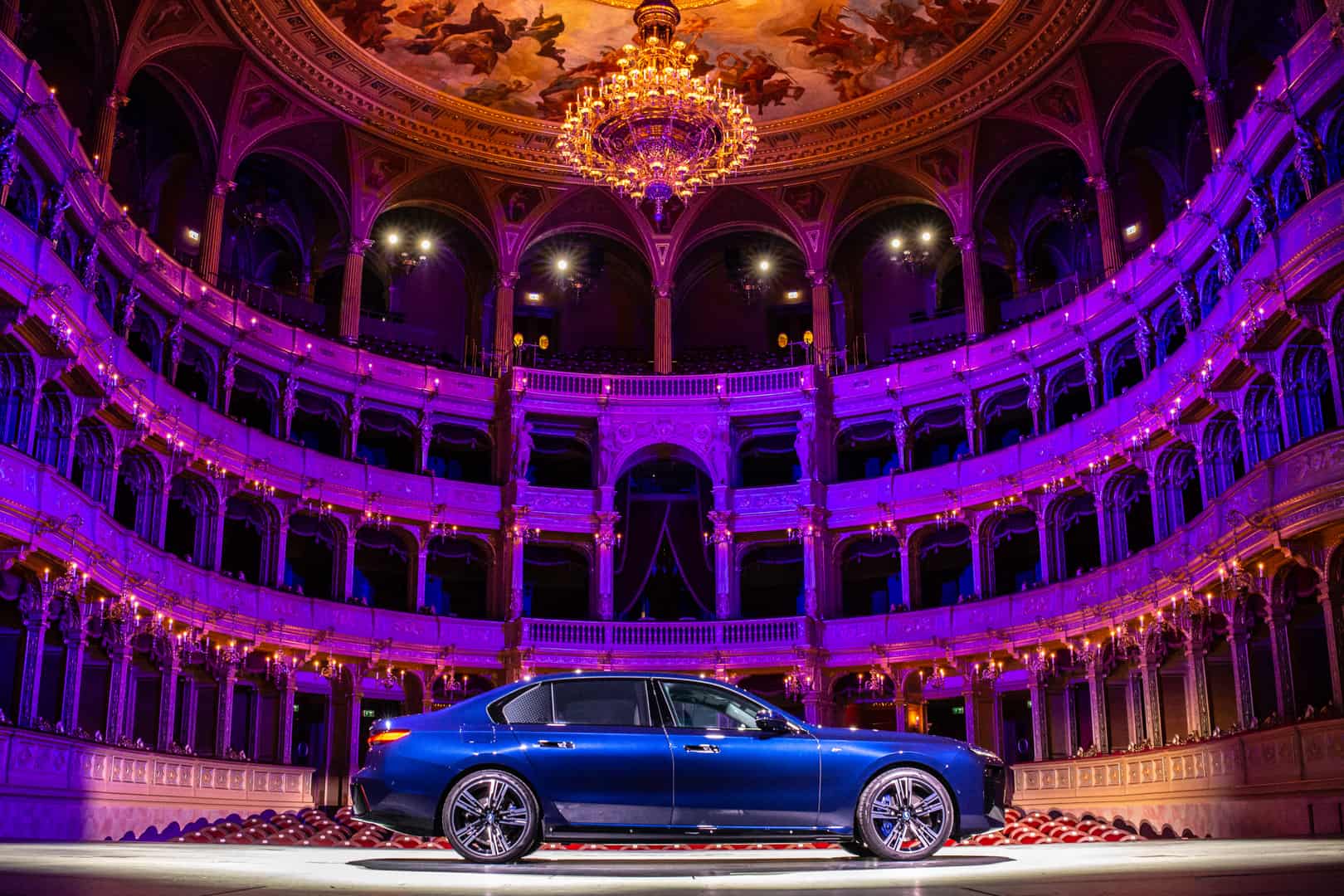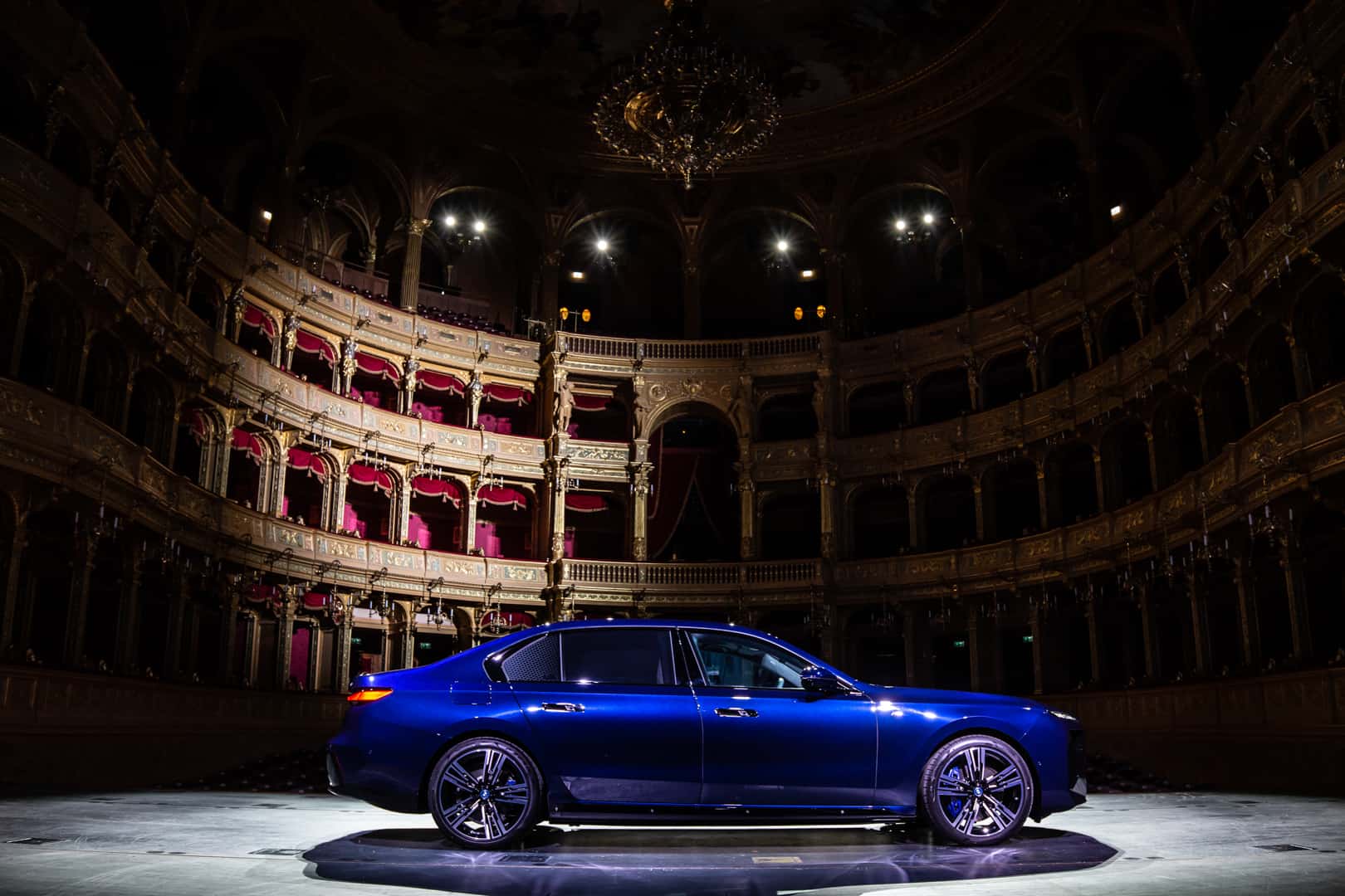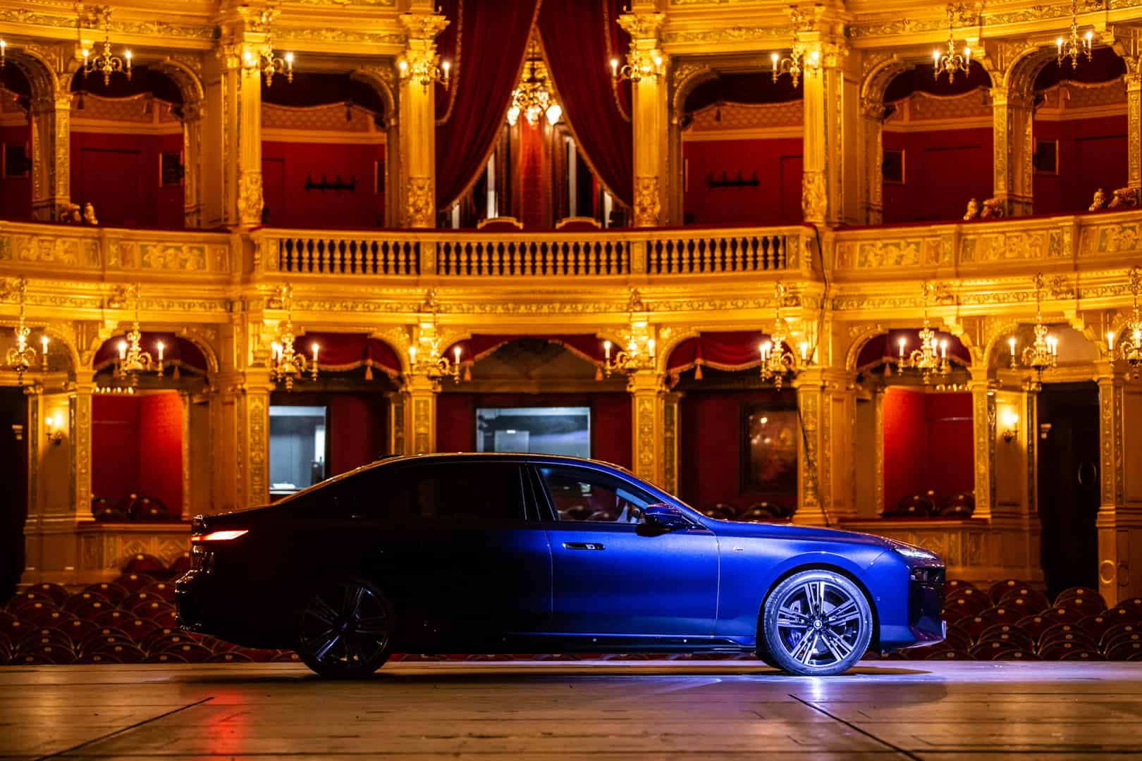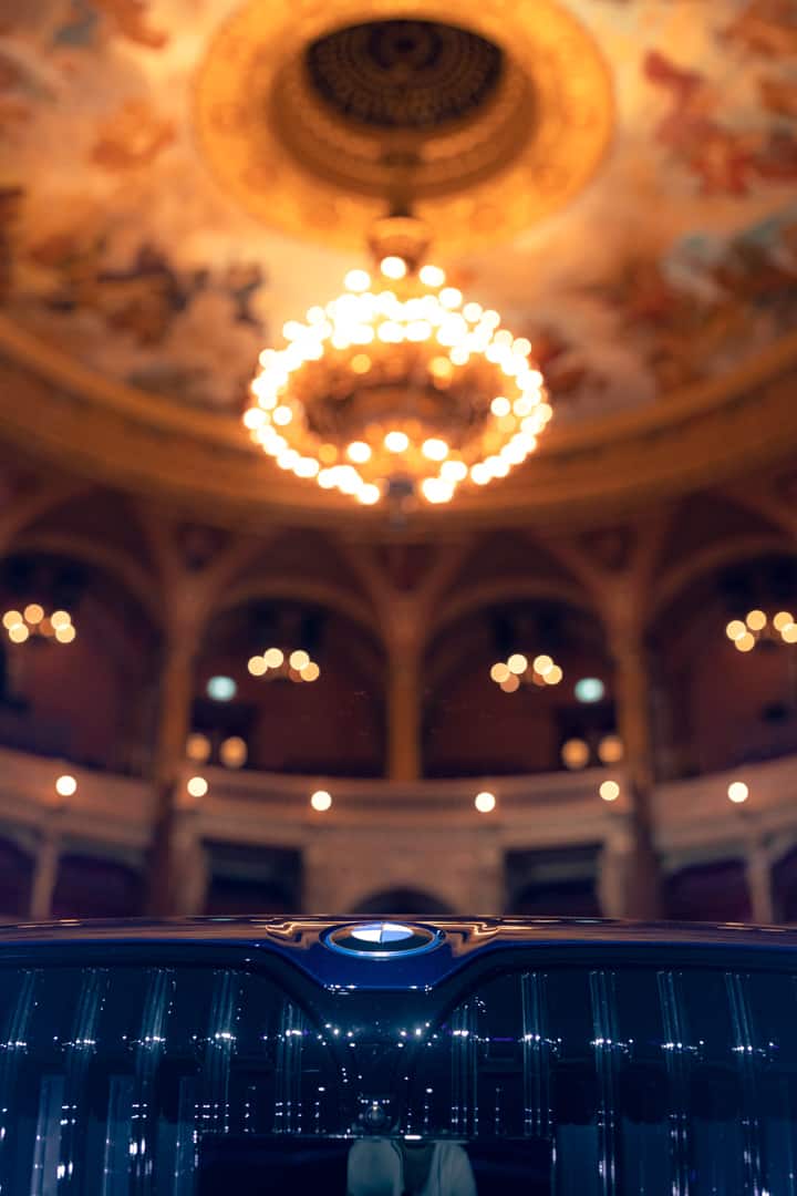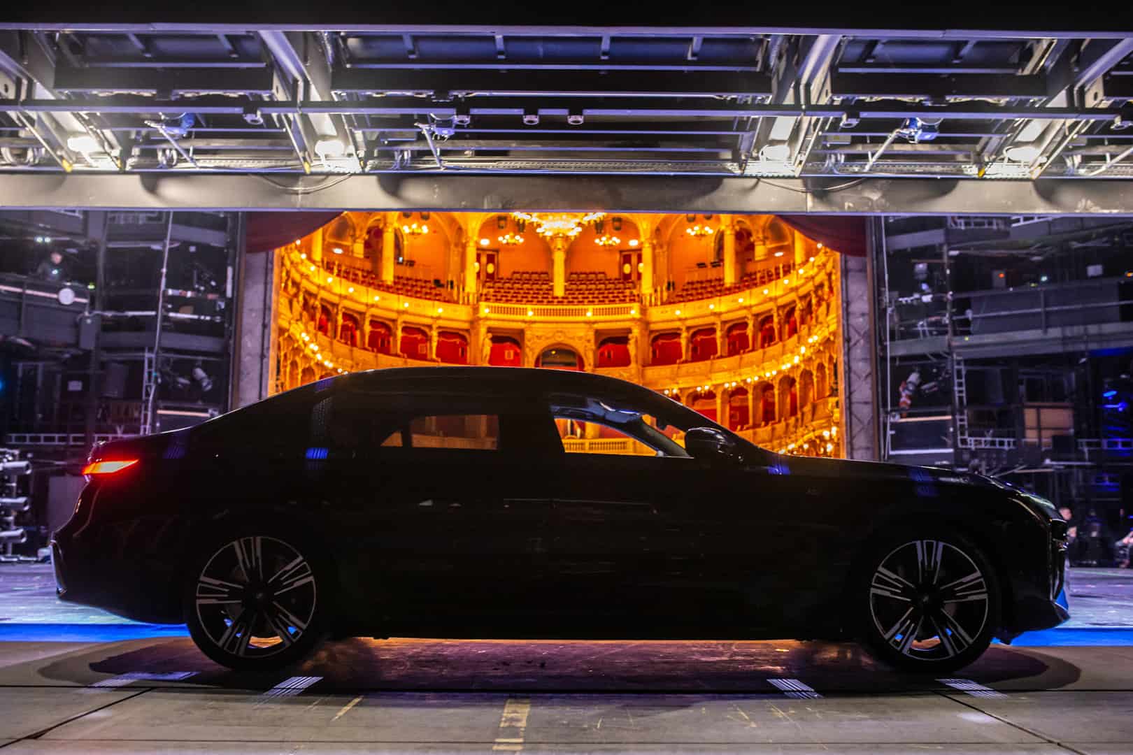 The inside of the Budapest Opera House is a breathtaking sight of 19th century architecture. The marble work, the wood work, that massive 3,050 kg (6,724 lb) chandelier, and the fresco of Greek gods all make a stunning sight. It also makes the BMW i7 delightfully incongruous. Not only is the i7’s design the furthest thing from elegant and sophisticated, with its massive grille, split headlights, and imposing size, but it’s also extremely high-tech. So it’s a drastic contrast between new and old worlds. I do hope they updated that stage since the 19th century, though, as I’m not quite sure it was originally designed to hold a nearly 6,000 lb car.
