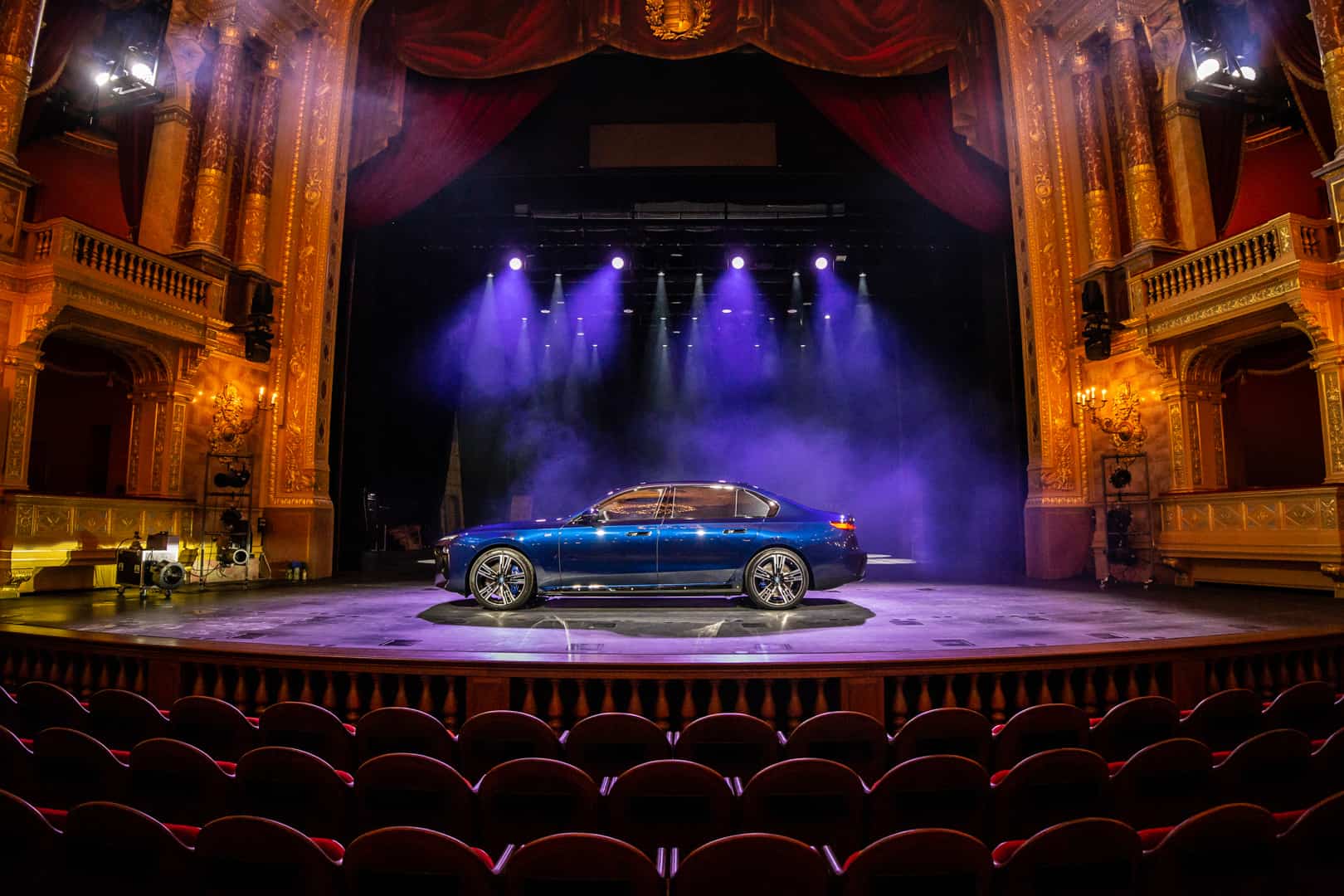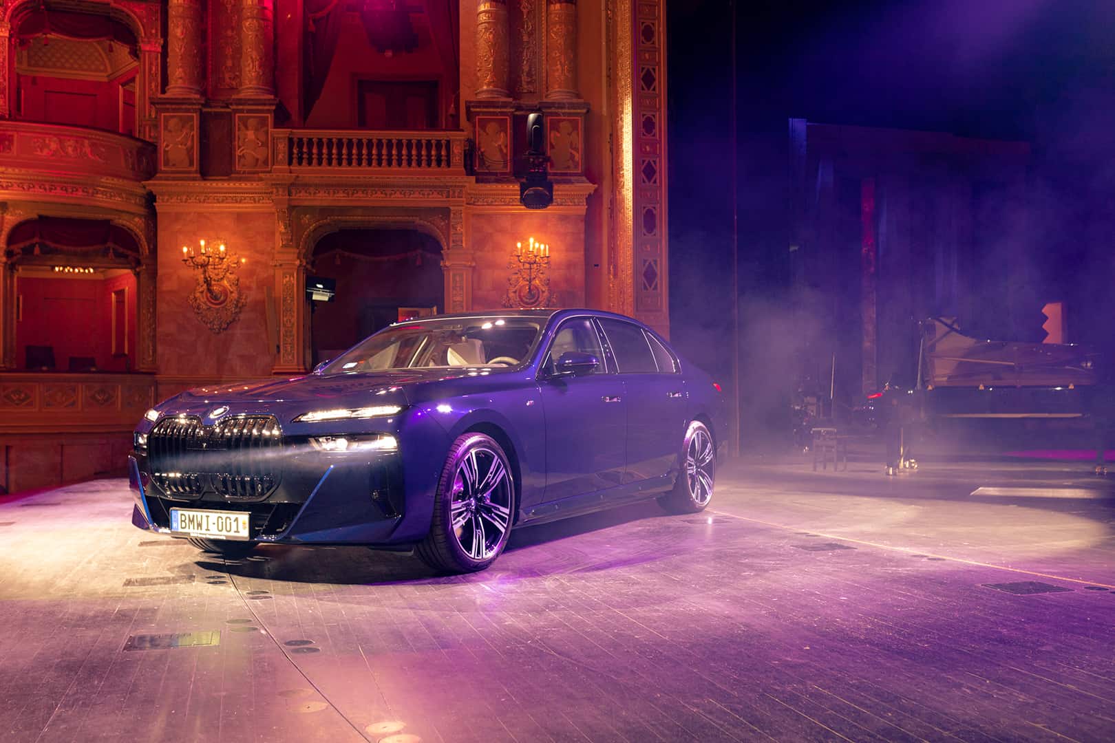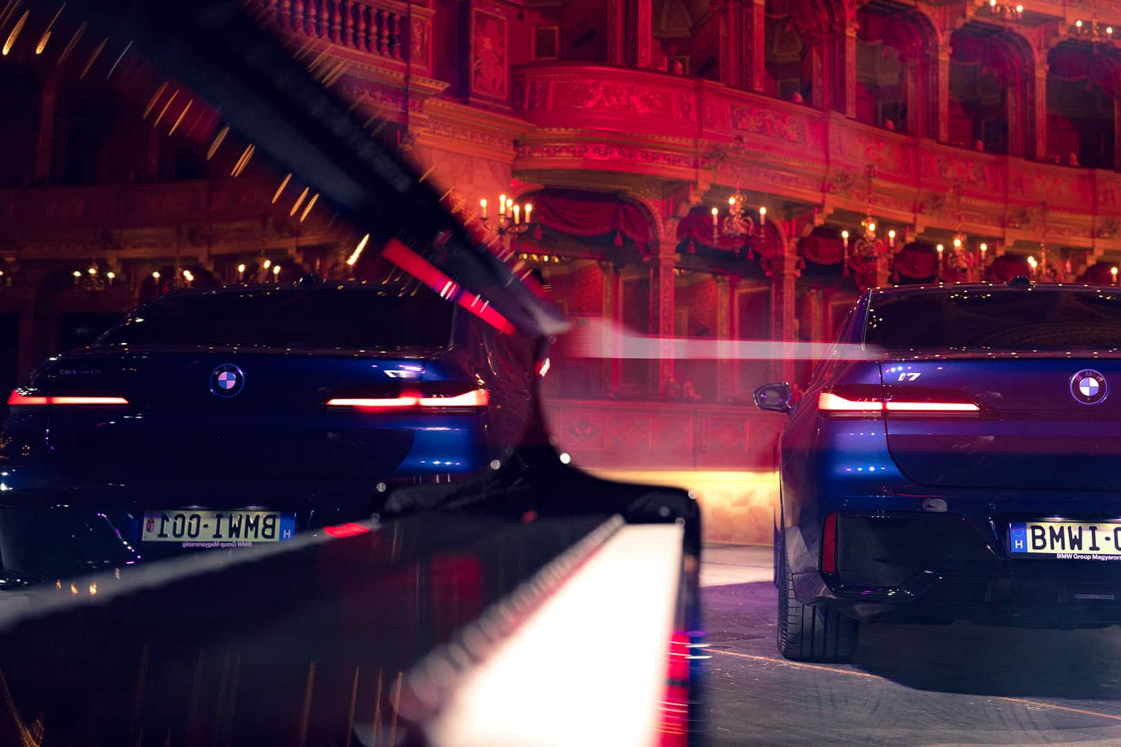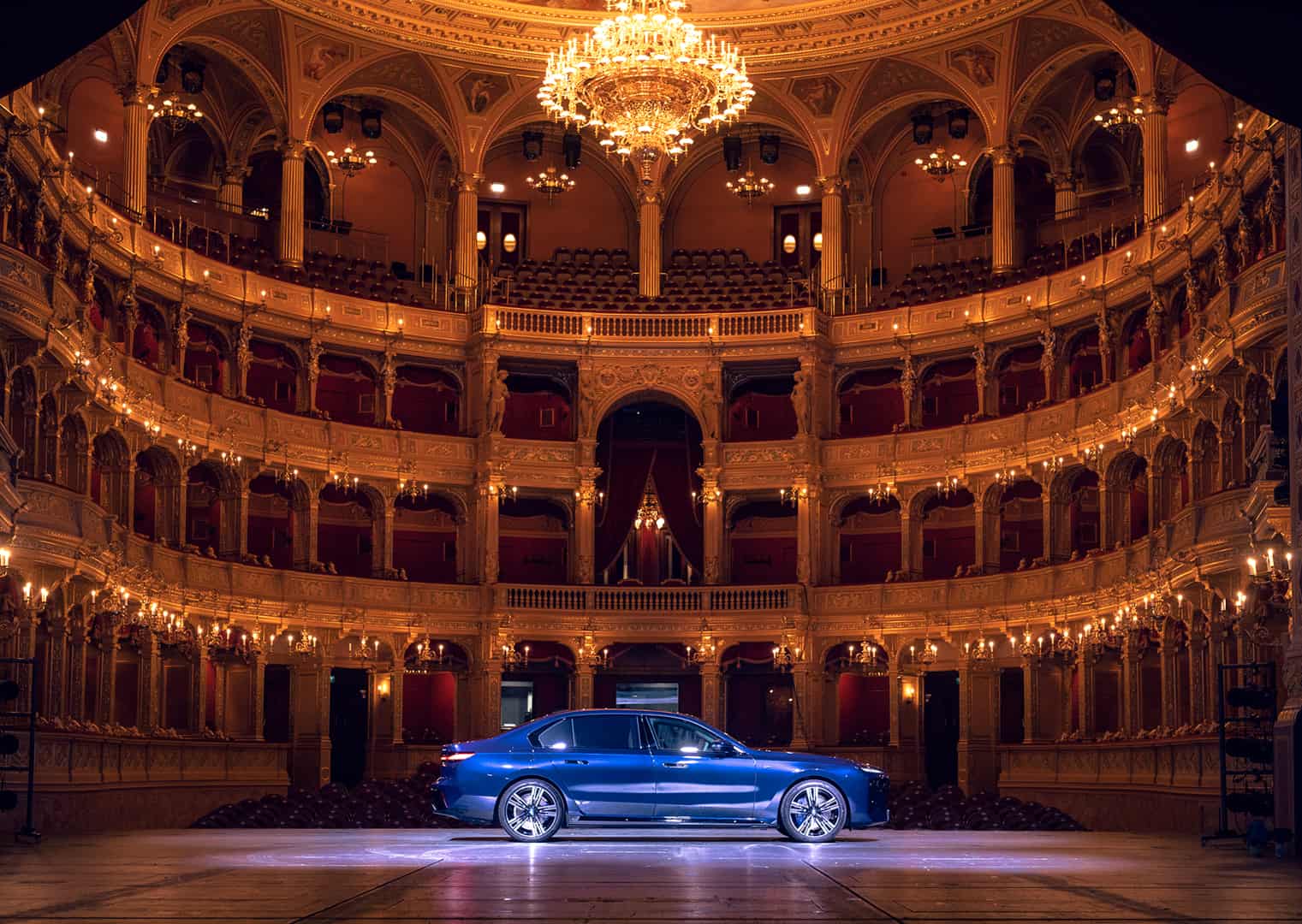 The inside of the Budapest Opera House is a breathtaking sight of 19th century architecture. The marble work, the wood work, that massive 3,050 kg (6,724 lb) chandelier, and the fresco of Greek gods all make a stunning sight. It also makes the BMW i7 delightfully incongruous. Not only is the i7’s design the furthest thing from elegant and sophisticated, with its massive grille, split headlights, and imposing size, but it’s also extremely high-tech. So it’s a drastic contrast between new and old worlds. I do hope they updated that stage since the 19th century, though, as I’m not quite sure it was originally designed to hold a nearly 6,000 lb car.