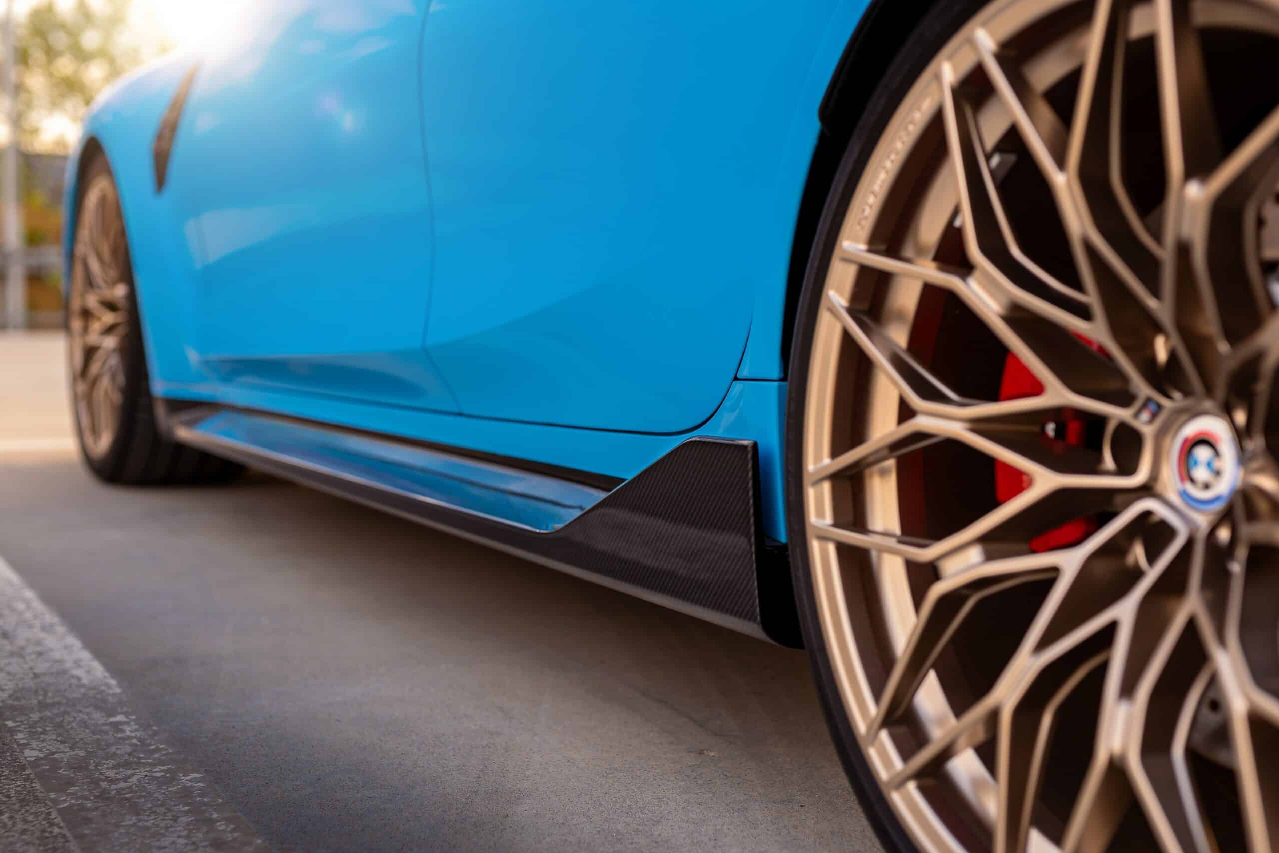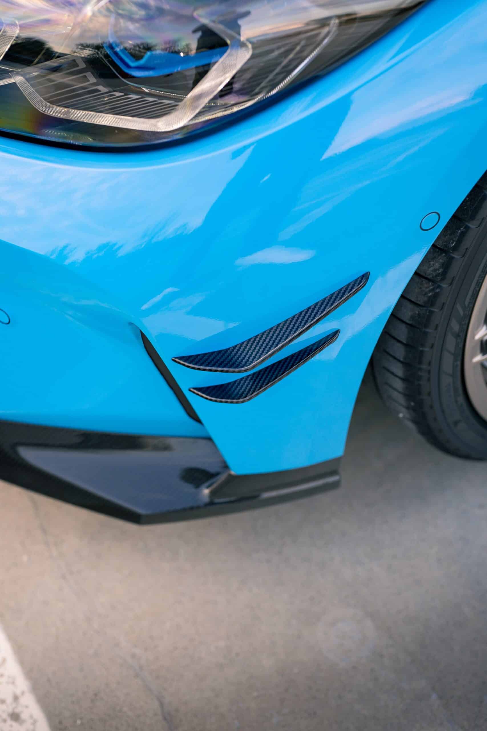 As with all M3 Tourings, it’s a Competition model with xDrive since this is the only specification sold by BMW. What makes this car truly special are the numerous carbon fiber-reinforced plastic add-ons, including the front canards and splitter along with side skirt attachments. Even miscellaneous items like the shark fin antenna and the fuel filler cap are made from CFRP, complementing the carbon side mirror caps.