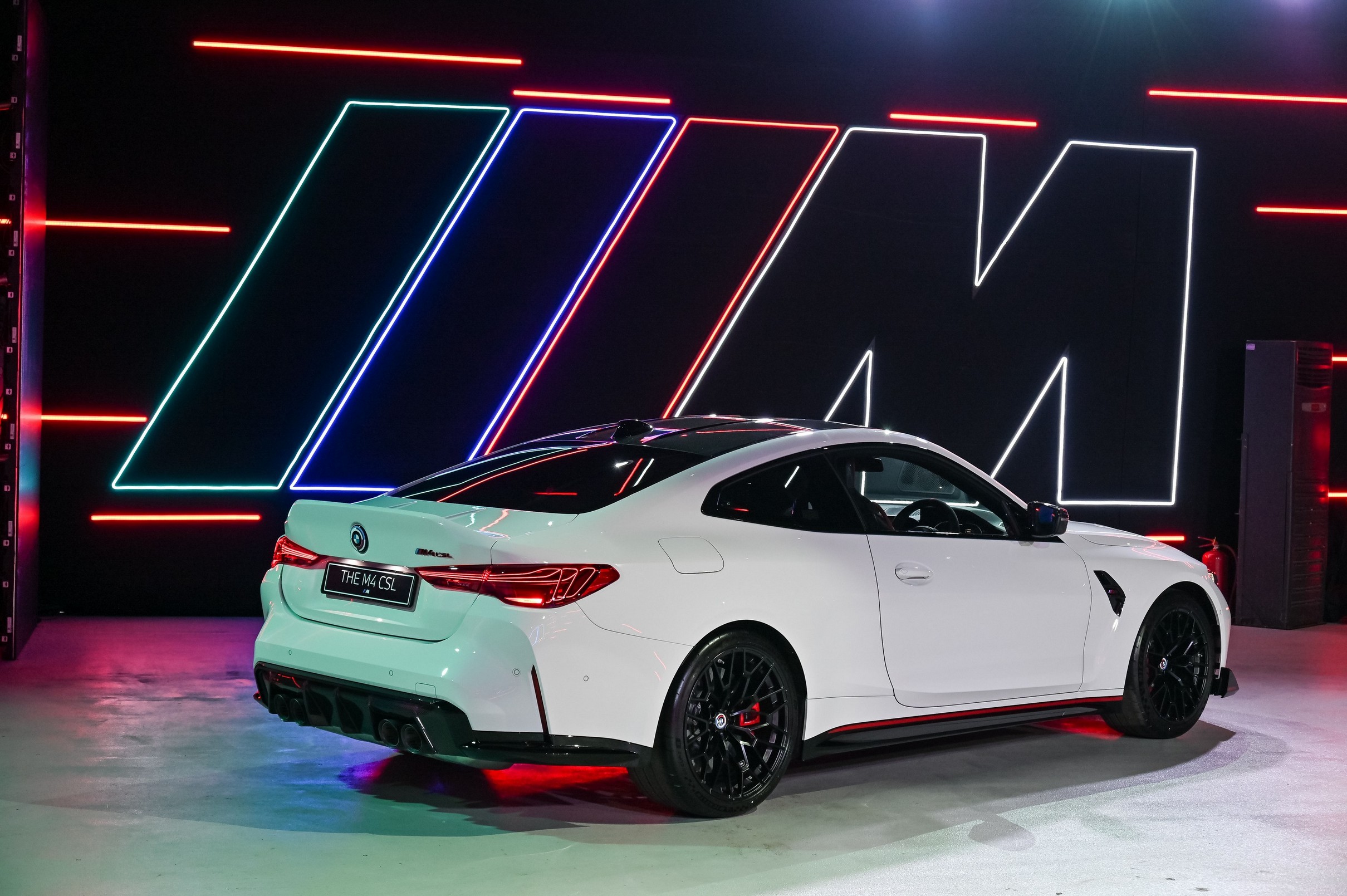 Since unveiling the M4 CSL, we’ve seen those special headlights with yellow accents and laser taillights on a new model, the 3.0 CSL. The M4-badged model is closer to the donor car since it lacks the retro-flavored body while having a ducktail spoiler akin to the M3 E46 CSL. In case you haven’t noticed already, the new M4 CSL has red outlines for the logos on the front fenders and tailgate. This theme continues inside for the “CSL” badging.