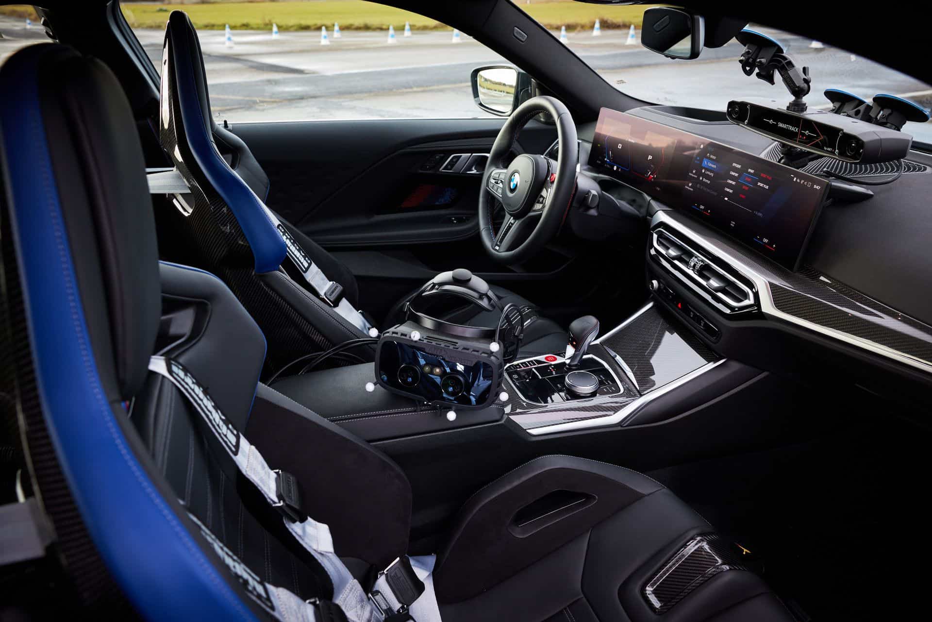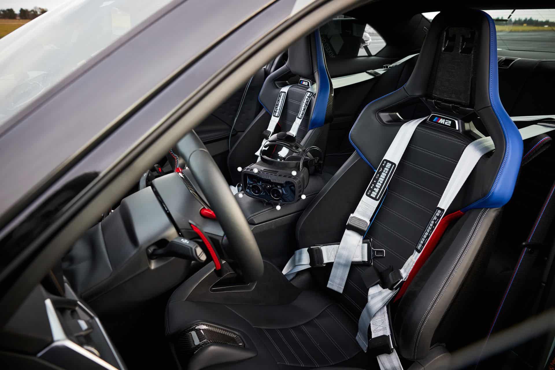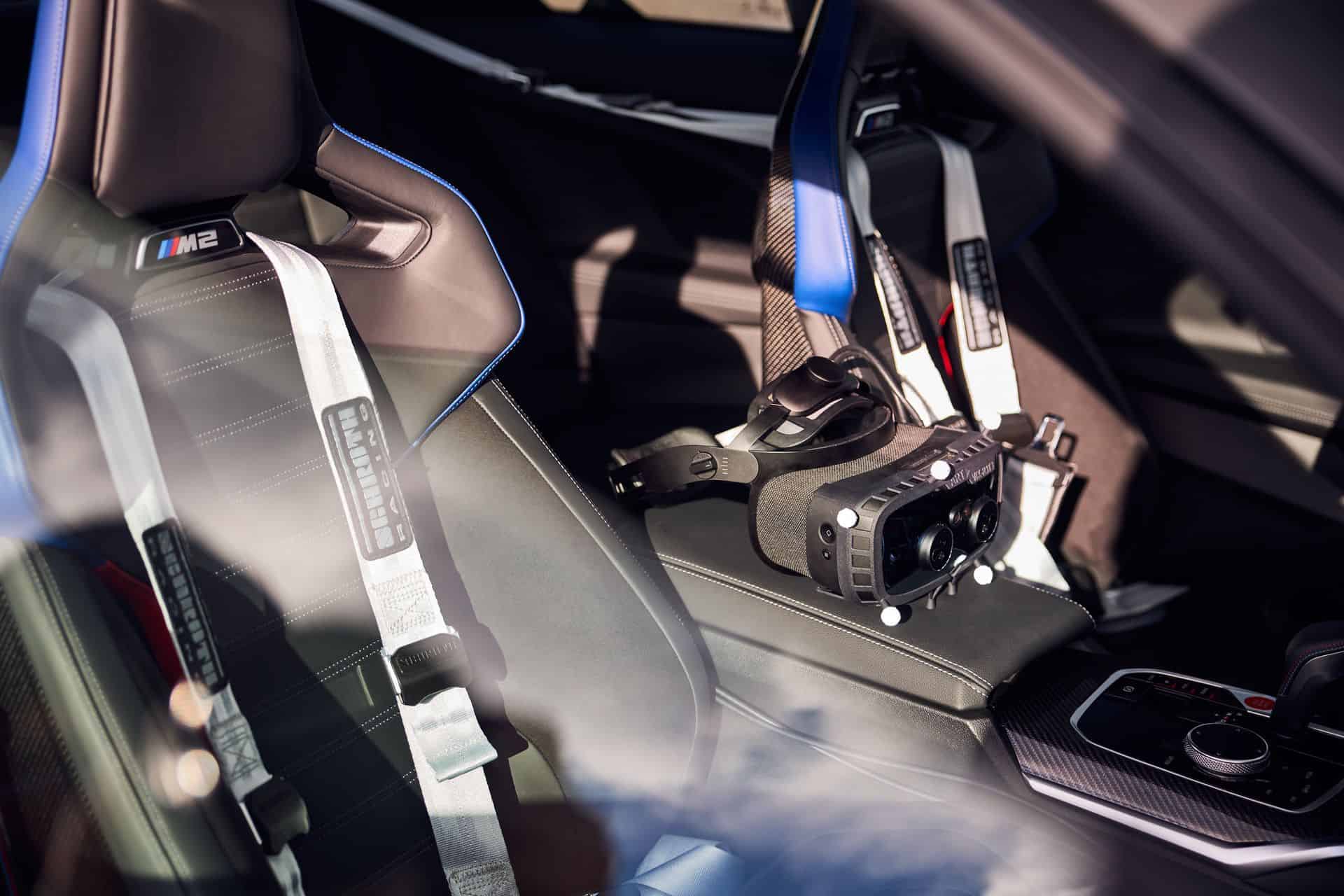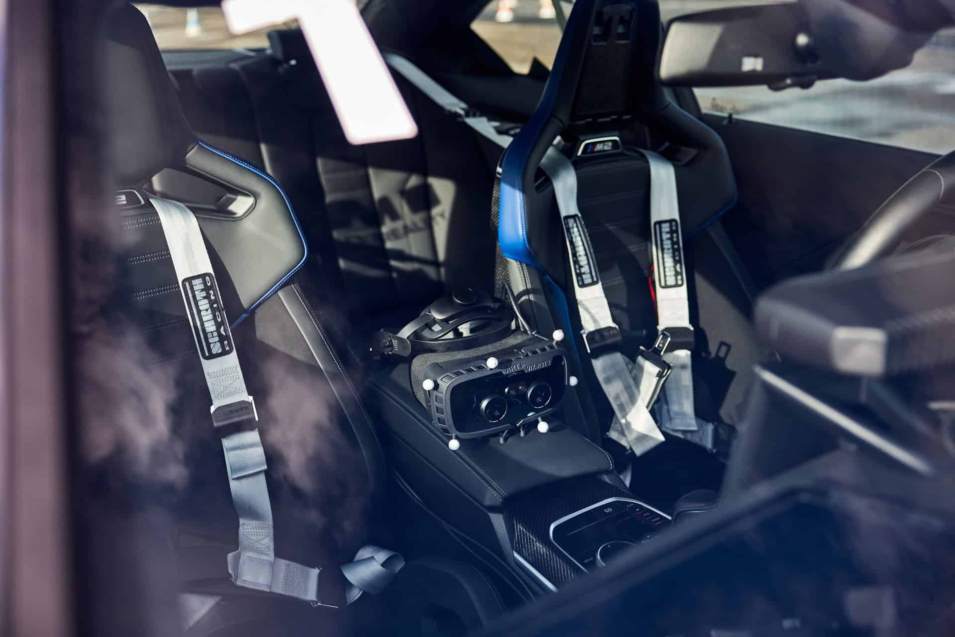 Of course, the VR headset delivers 4K graphics which look extremely realistic. Furthermore, the VR headset adjusts its video quality by tracking where your eyes are looking and there is virtually no distinguishable lag. The VR headset is tied to a consumer-grade gaming computer placed in the trunk of the BMW M2. Next, the headset is also connected to a Smart Tracking device sitting on the dashboard which monitors the head’s movements.