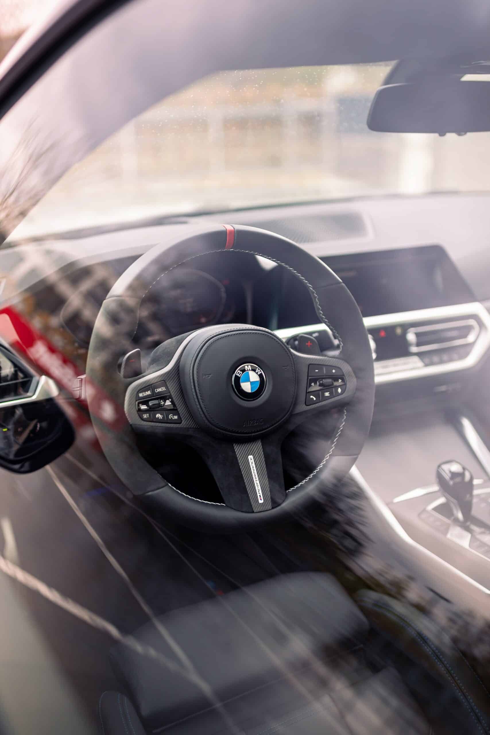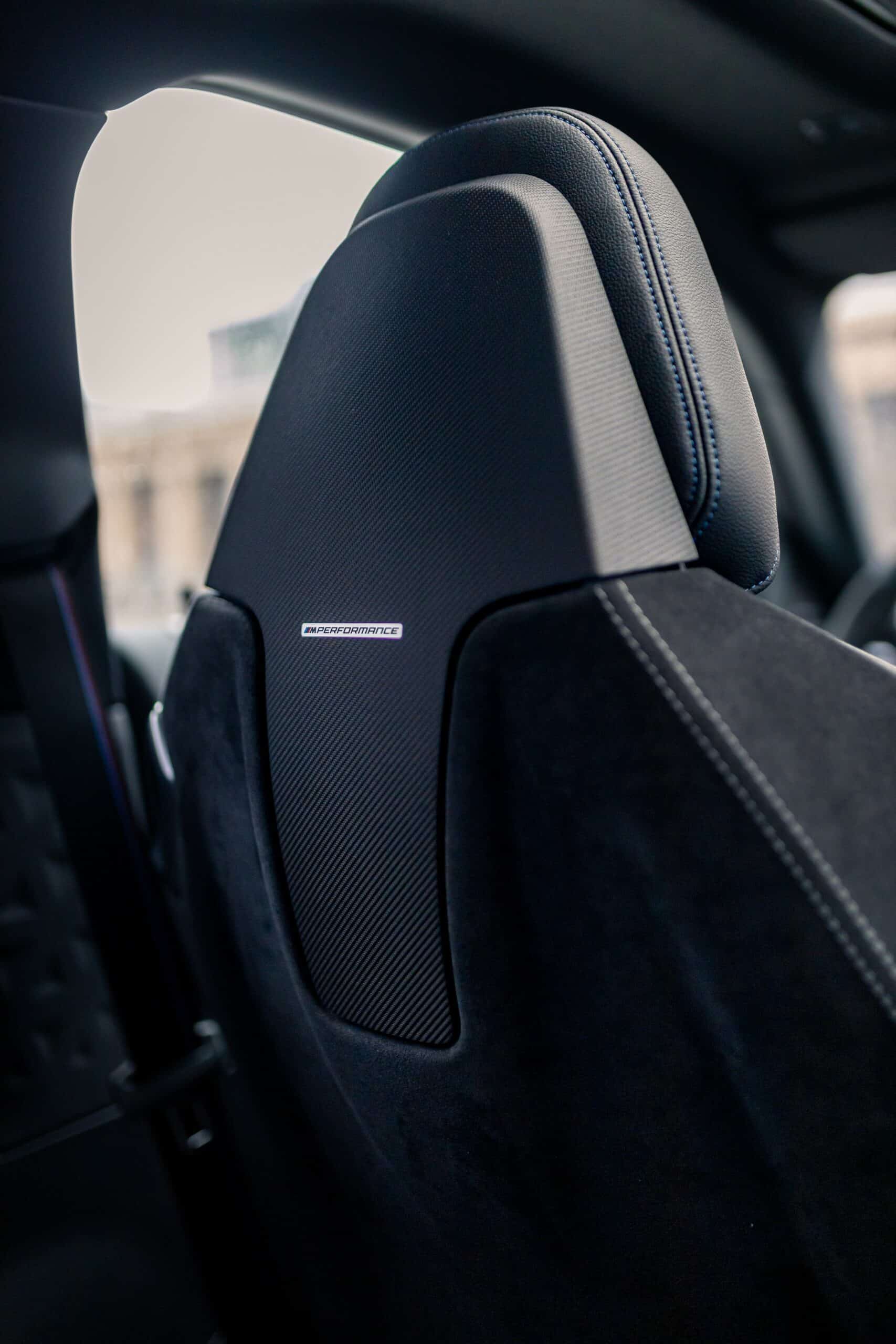 Carbon fiber was generously used on the outside and you can find it around the blacked-out kidney grille as well as on the front splitter. At the back, the trunk lid spoiler, diffuser, and shark fin antenna have the same finish. To drive the point home, an M Performance decal runs across the side of the car while the hood has a similar black graphic.