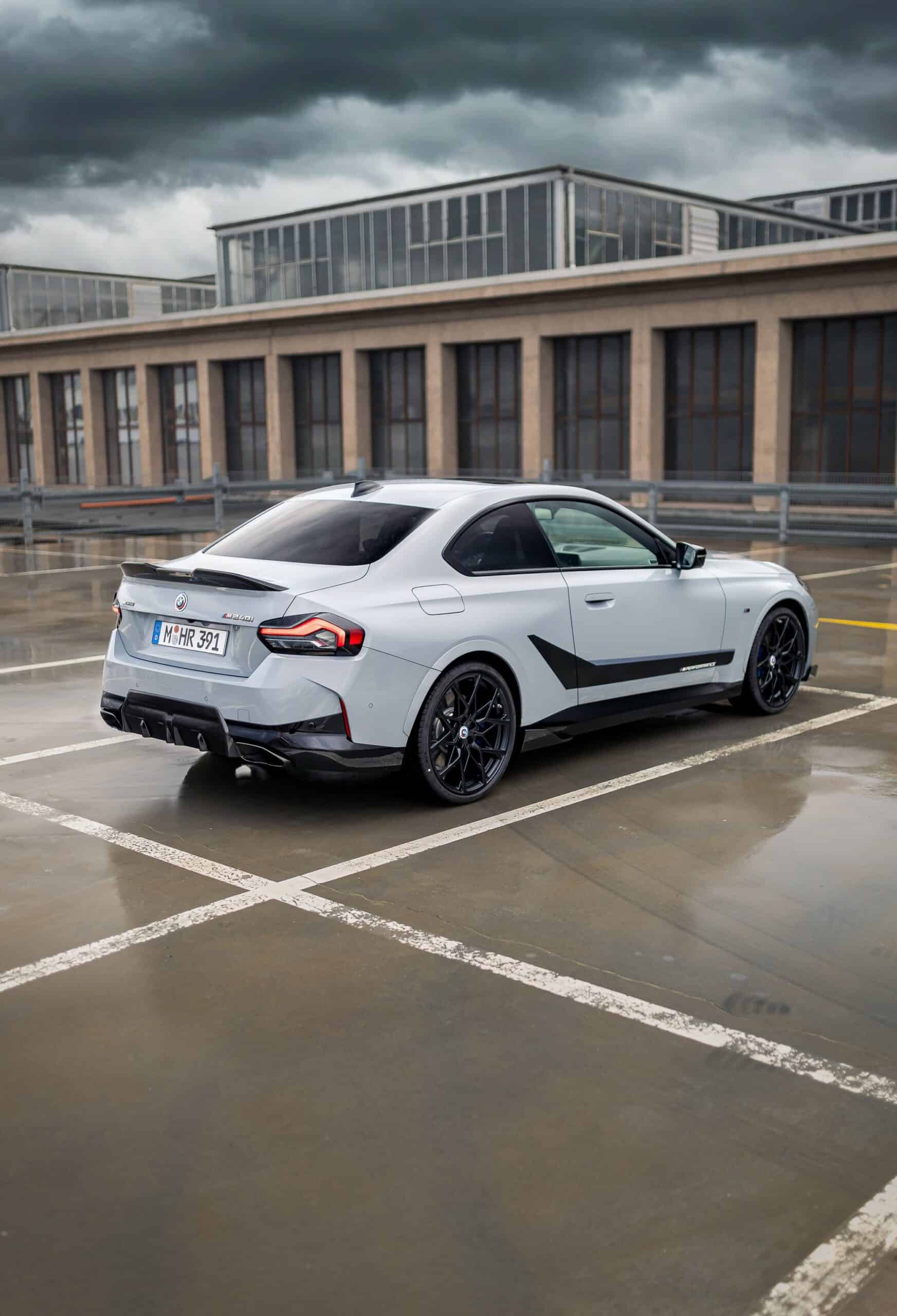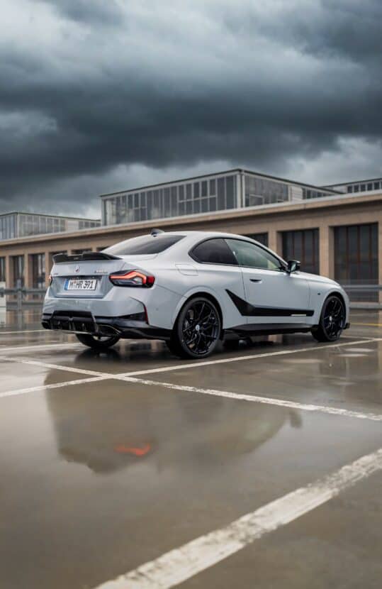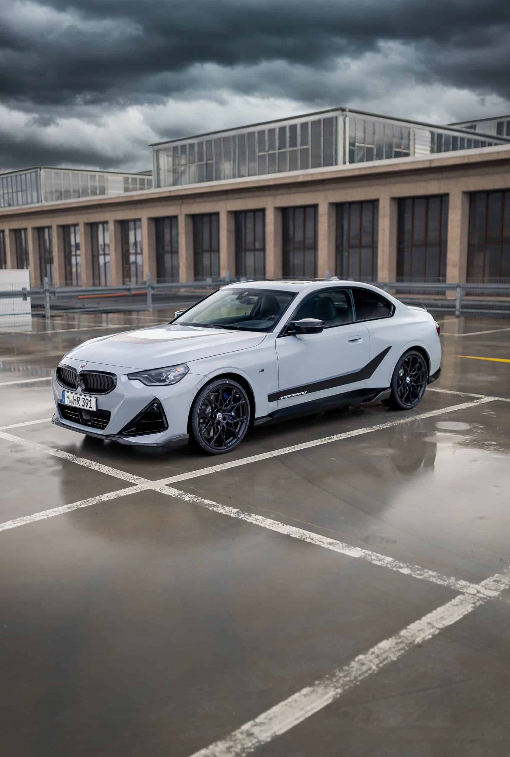 You’re going to need at least half a day to see all the BMWs lined up for the 2022 Essen Motor Show. We’ve already talked about most of them, chief of which have been the new M2 and M3 Touring. All of them have something in common, the full arsenal of M Performance Parts, including the M135i, 330e, and an i4 M50. This 2 Series Coupe is also attending the event as an M240i xDrive decked out with lots of M goodies inside and out.