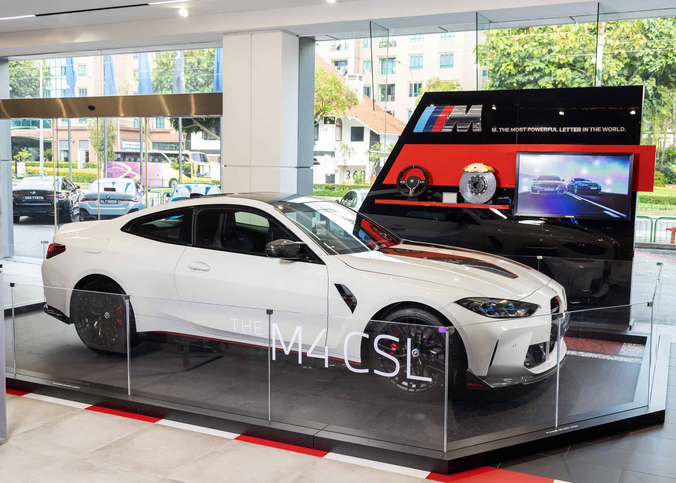Only 1,000 units are being made for the whole world and one of them is currently on display in Singapore. Painted in Alpine White, the M4 CSL is showcased until December 14 at the Performance Munich Autos on 315 Alexandra Road. It’s exhibited alongside the M4 Competition 50 Jahre introduced earlier today for the local market where only three cars are planned.