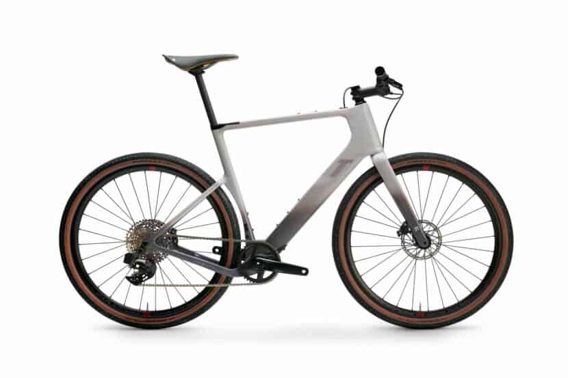 The Exploro Ultra ($4,999) is designed more for relaxed, comfortable cruising. So its seating position is a bit more upright and its tires are a bit oversized. It’s designed more for style and comfort than anything else. Without the motor, it weights 8.5 kg (19 lbs). Yet, thanks to the very same Sram Rival XPLR 10-44 cassette, you can still travel pretty fast.