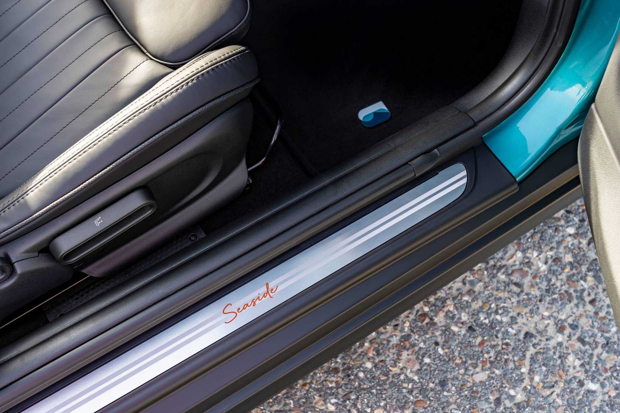 The limited-run special version is finished in Caribbean Aqua with dual decorative strips finished in white and running across almost the entire side profile of the posh cabrio. A closer look reveals a “30” motif graphic adorning the wheel center caps and the front apron. Speaking of which, the alloys measure 18 inches and come in a two-tone finish.