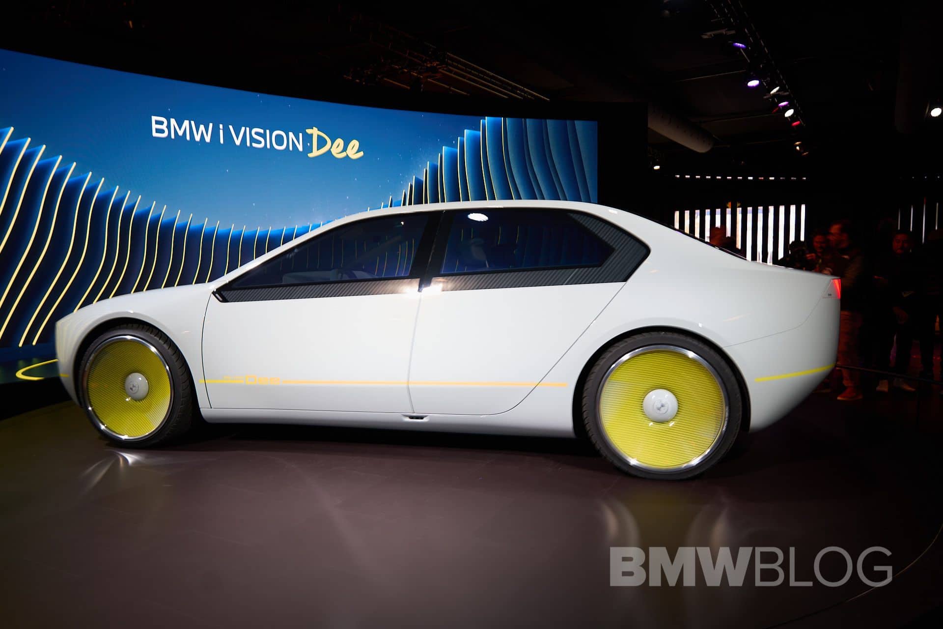 The first thing you notice about BMW i Vision Dee is its design. Its front end looks very much like the i Vision Circular Concept from awhile back. However, its body shape is entirely different. The Circular was frumpy and bulbous, like a shrunken crossover, but Dee is far more sedan-like. In fact, I get quite a bit of E12 5 Series from its design, which is a very good thing. It also has incredibly fun spinny, yellow wheels.