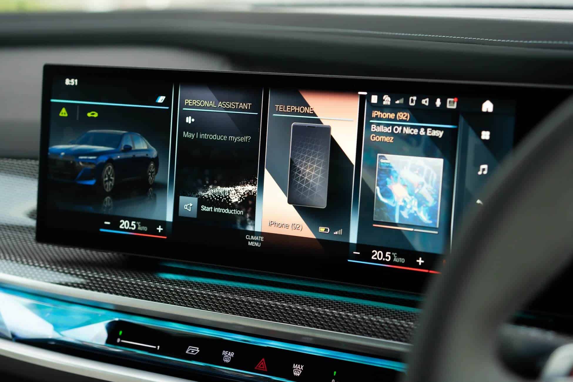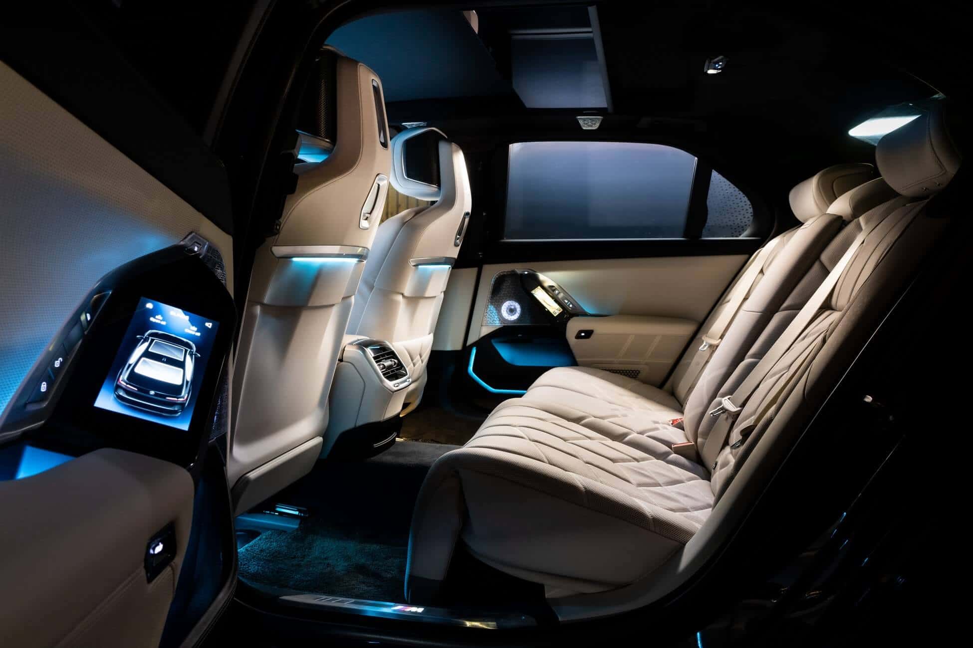 This i7 is a rolling cinema courtesy of its 31.3-inch Theatre Screen extending downwards from the roof. For the first time in a BMW, the driver and front passenger can enjoy YouTube video-on-demand streaming on the main display. As a refresher, the latest 7 Series is also getting casual games on the iDrive 8, along with the live stream of Bundesliga games.