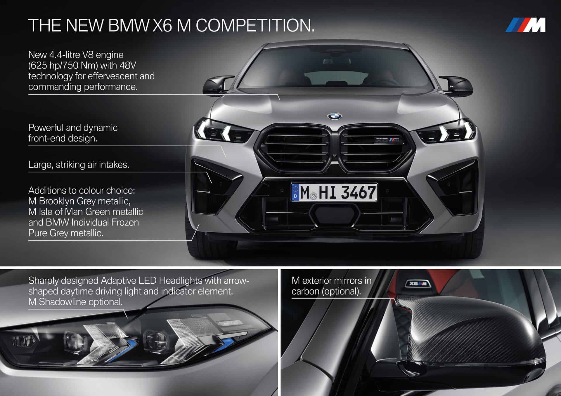 BMW is wasting no time in rounding off the X6 Facelift lineup as the range-topping M model follows the lesser versions introduced only a couple of weeks ago. For the 2024 model year, the portfolio has been simplified since the high-performance SUV will be available going forward only as a Competition model. The 2024 BMW X6 M Facelift still gets 617 horsepower and 553 pound-feet (750 Newton-meters) of torque as before, but from a newly developed engine benefitting from mild-hybrid technology.
