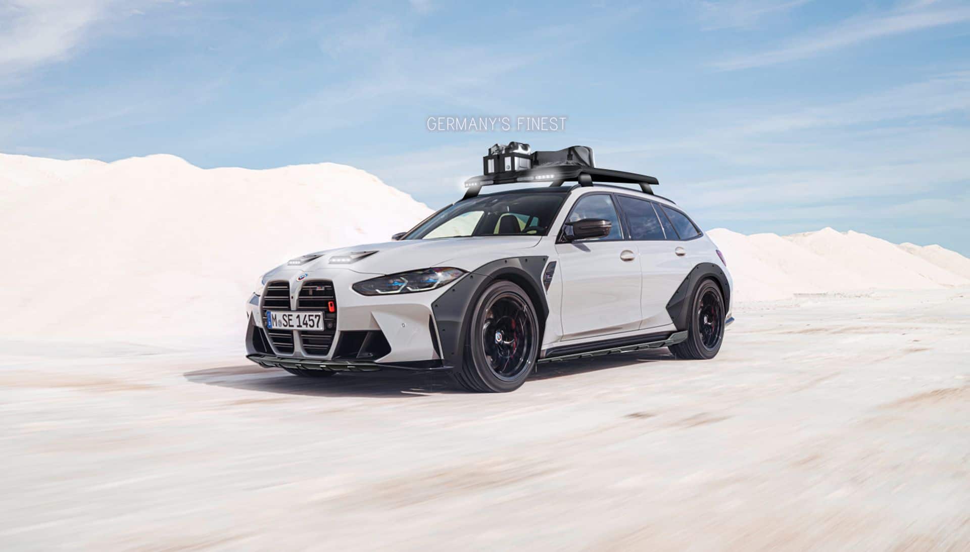 Today, rendering artist @germanysfinest43 takes a virtual stab at imagining a BMW M3 Rally Car based on the new G81 M3 Touring. The digital artist says that he “took some inspiration from Porsche and the Lamborghini Sterrato”, but of course with the typical BMW M3 bits. The front and side view shows a reimagined design with specific reinforced parts needed for the harsh terrain. Of course, the M3 Dakar Rally image shows a higher ground clearance than the standard M3 Touring.