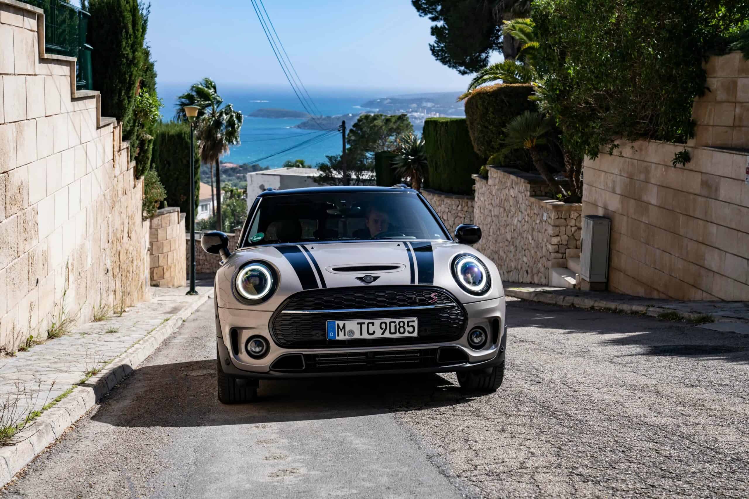 The MINI Cooper S Clubman ALL4 name remains as complicated as before, and at 4,275 millimeters (168.3 inches) long, it’s hardly a mini. The all-wheel drive wagon/hatchback mashup made the trip to Spain, flaunting its unusual six-door body style in a photo shoot in Mallorca. It remains a niche model in a sea of crossovers of all shapes and sizes, facing internal competition from the Countryman and the 2023 BMW X1 to a lesser extent.
