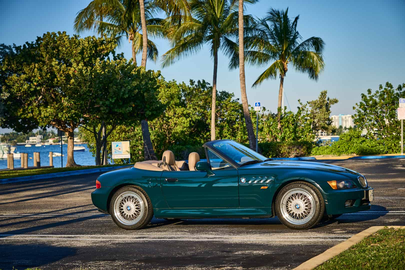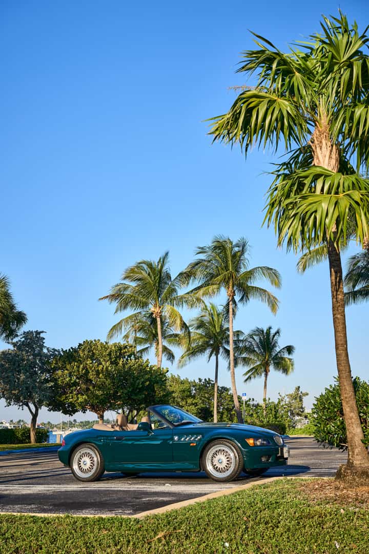 The BMW Z3 was already light for a roadster but the 1.9-liter version was the lightest of them all, with a curb weight of just over 2,700 lbs. The new M4’s grille weighs that much. So it doesn’t need a ton of power to be fun. Throw in a five-speed manual gearbox, rear-wheel drive, and a convertible top, and you have the recipe for a very fun day in the sun. Maybe not in Miami, though, because the Z3 is all about twisty roads—using its light weight, nimble chassis, and rear-drive layout to have some fun—and Floria has about as many twisty roads as a drag strip.