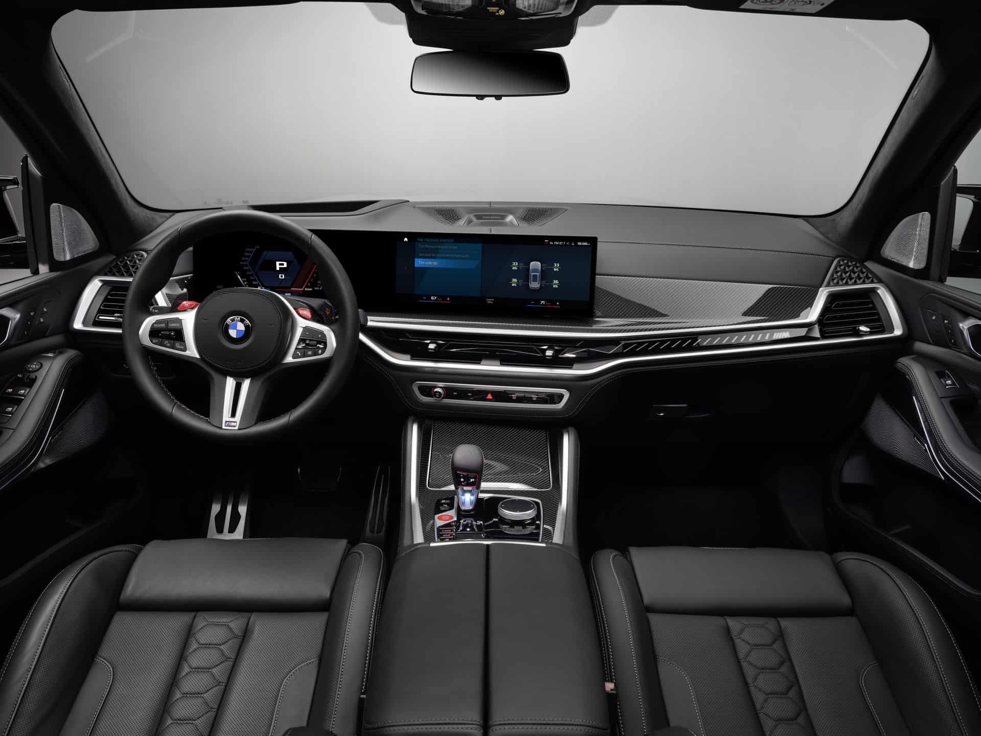 Although recent M Performance models such as the M340i and X7 M60i have switched to a compact gear selector, the 2023 M3 and M4 have retained the beefy lever. It’s the same story with the 2024 X5 M and X6 M. All these cars have transitioned to the iDrive 8, with dual displays in a curved glass enclosure. The 14.9-inch touchscreen sits above slimmer central air vents on a simplified center console with fewer conventional buttons.