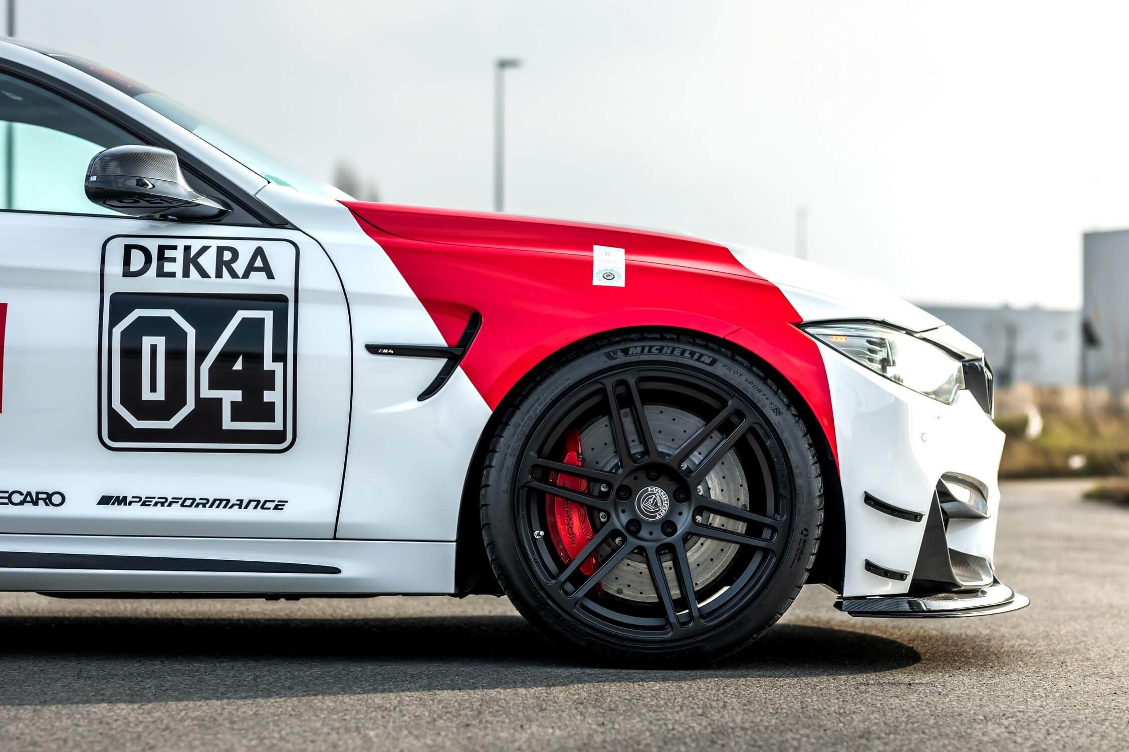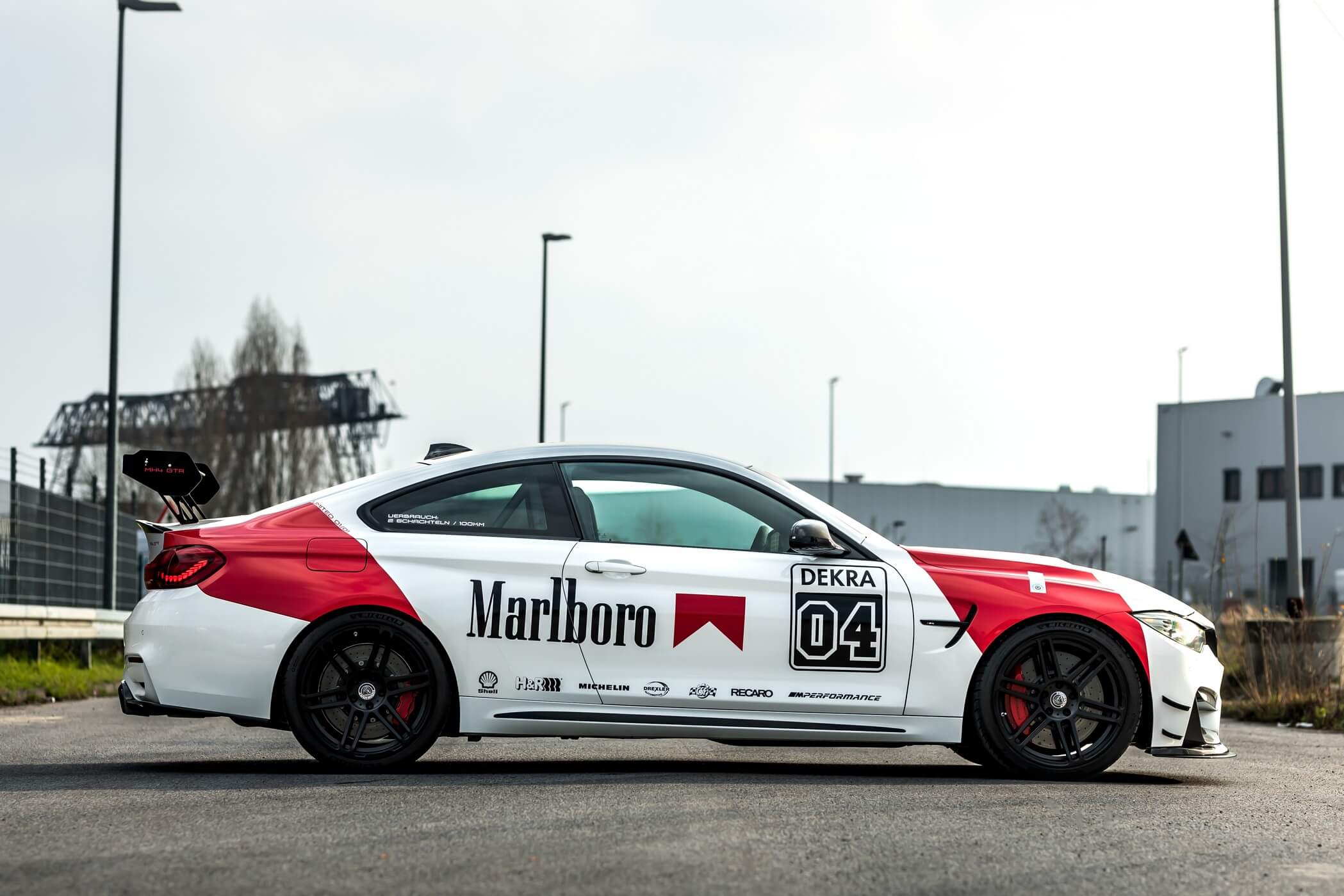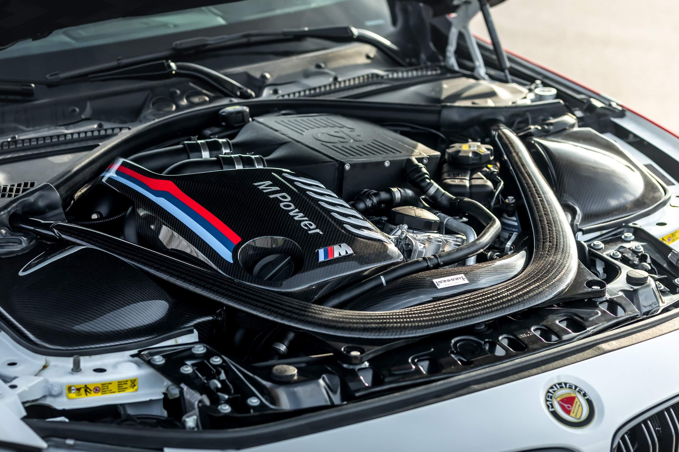 The MH4 GTR is a one-off affair with a heavily reworked twin-turbo 3.0-liter mill featuring a custom intercooler and new aluminum charge pipes. The S55 has also received a carbon intake, a remapped ECU, and a stainless-steel exhaust system with valve control and quad 100-mm tips in carbon fiber. The numerous hardware changes have pushed output to a colossal 708 horsepower and 980 Newton-meters (723 pound-feet) of torque.