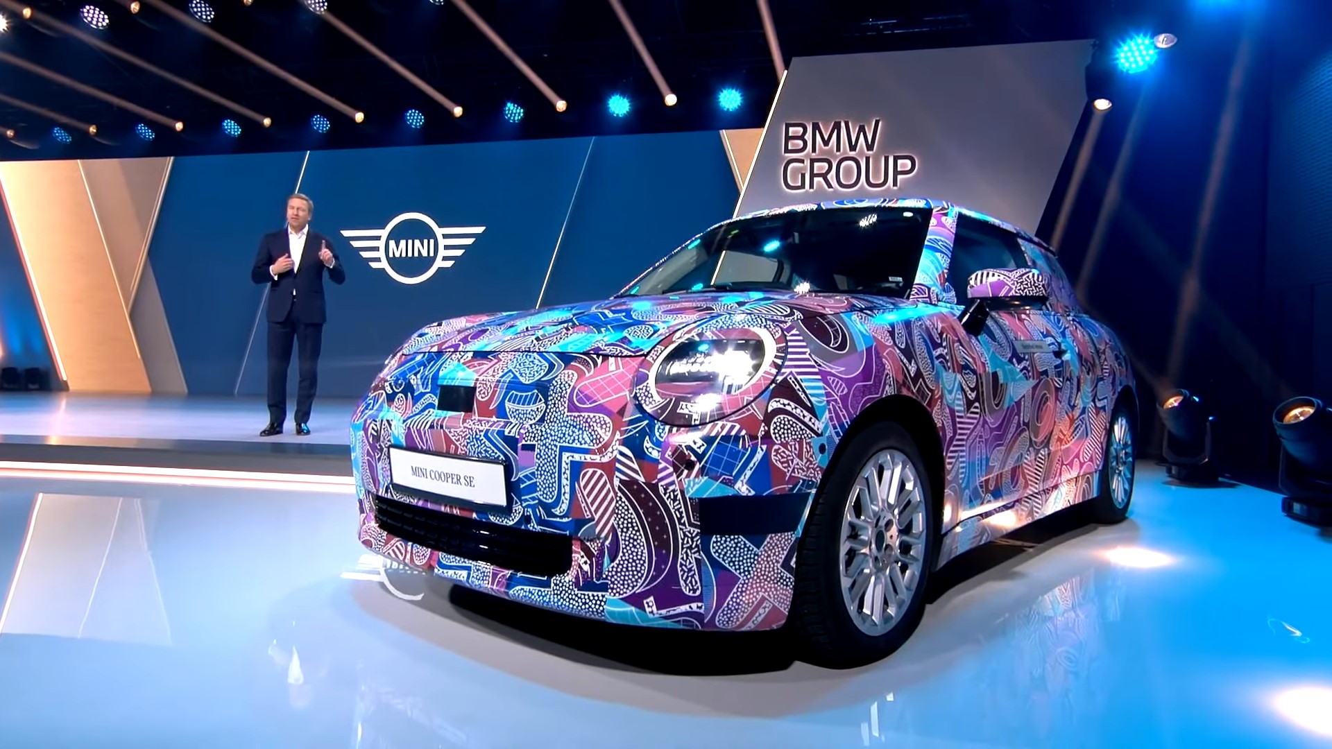 However, the event wasn’t all about the core brand as a brand-new MINI was brought onto the stage. BMW Group chairman Oliver Zipse briefly spoke about the next-generation Cooper SE, showing the production-ready prototype with a new camouflage featuring a colorful funky pattern. Once again, the electric hatchback will be sold exclusively as a three-door hardtop model.
