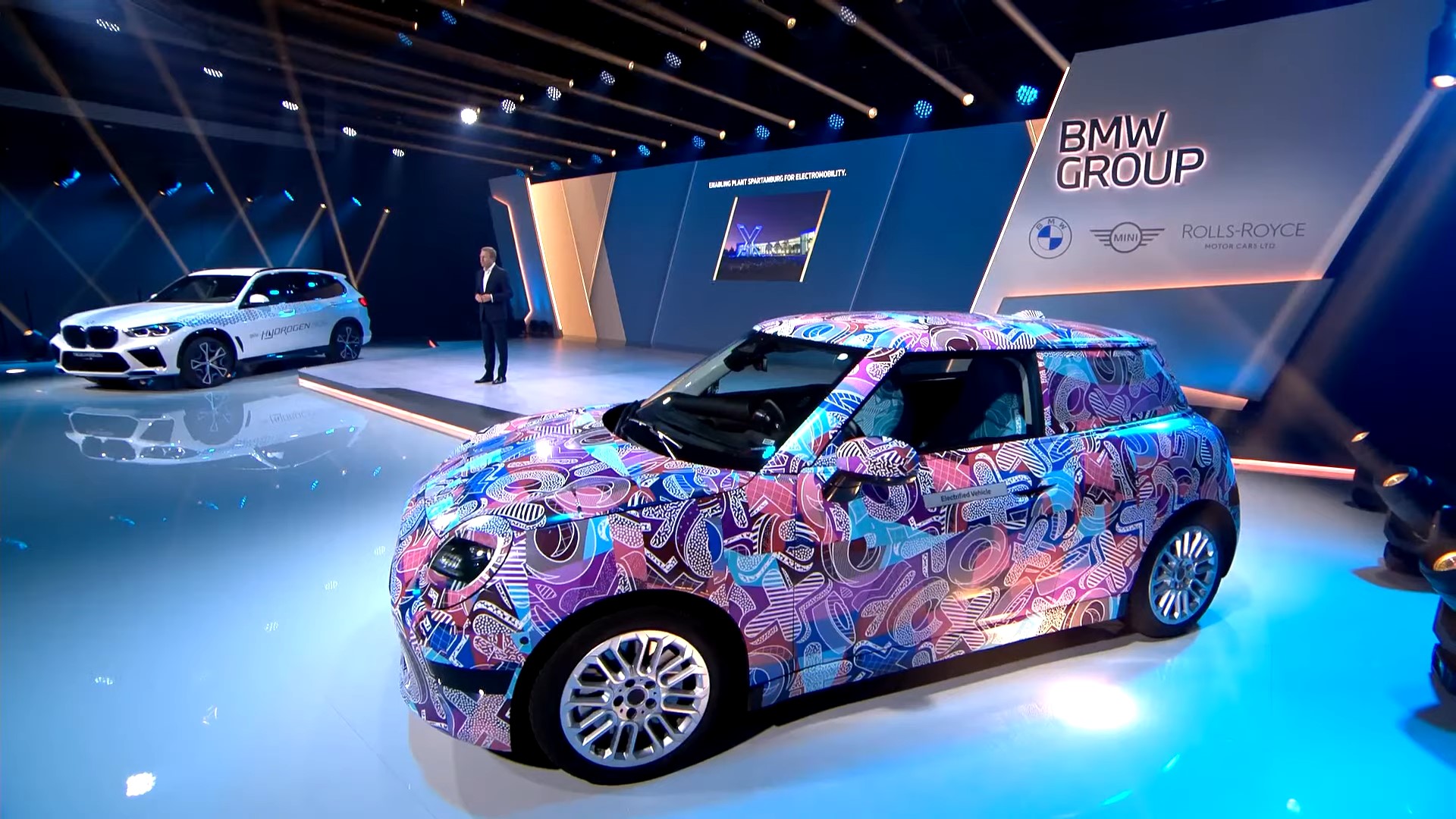 However, the event wasn’t all about the core brand as a brand-new MINI was brought onto the stage. BMW Group chairman Oliver Zipse briefly spoke about the next-generation Cooper SE, showing the production-ready prototype with a new camouflage featuring a colorful funky pattern. Once again, the electric hatchback will be sold exclusively as a three-door hardtop model.