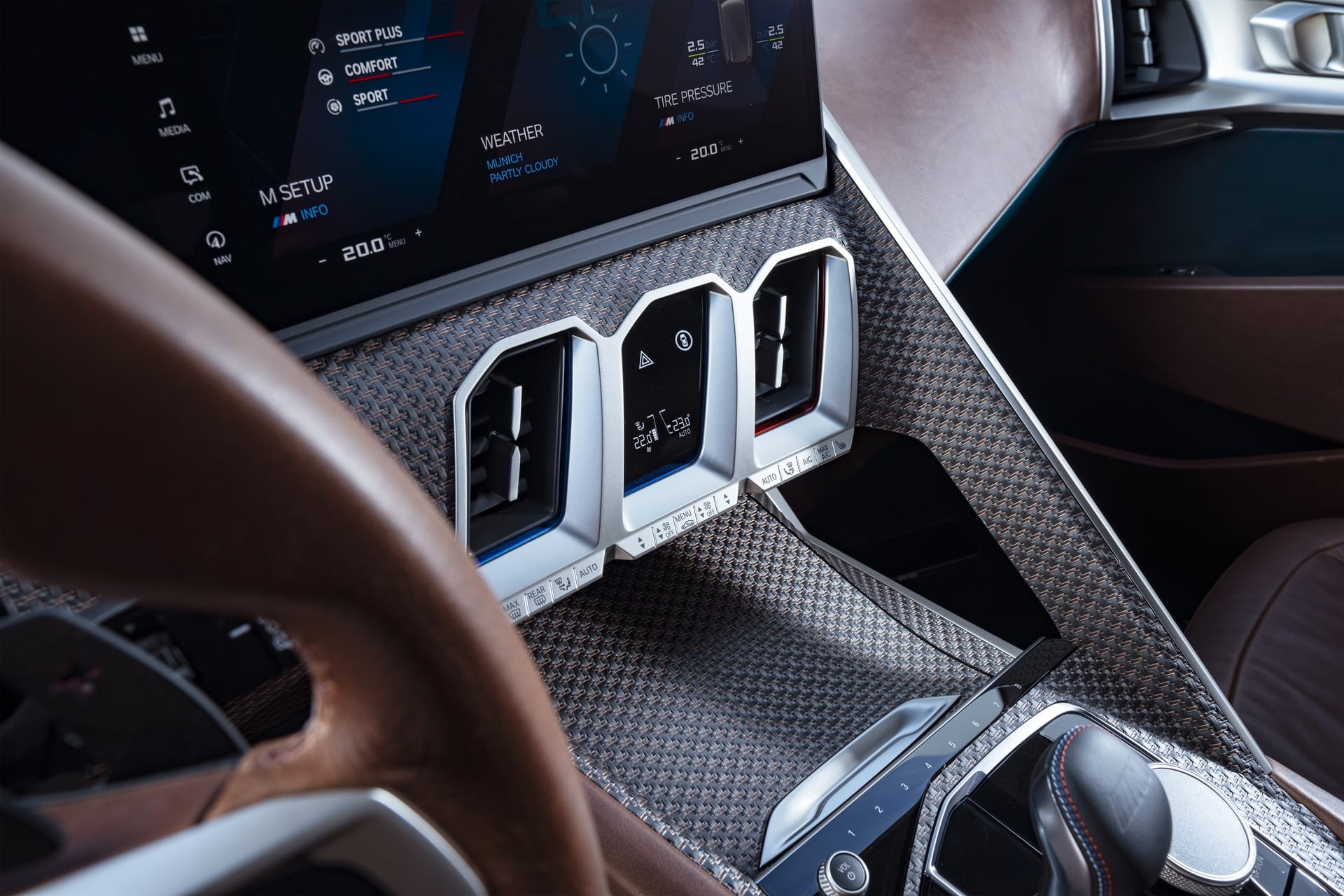 When revealed in 2021, I was impressed by the unique and futuristic interior design of the BMW Concept XM, which featured weaved carbon fiber trim, a flat-bottomed steering wheel, and hybrid captain chairs/bench seating in the back. So I was hoping to see that design live on with the production series XM.