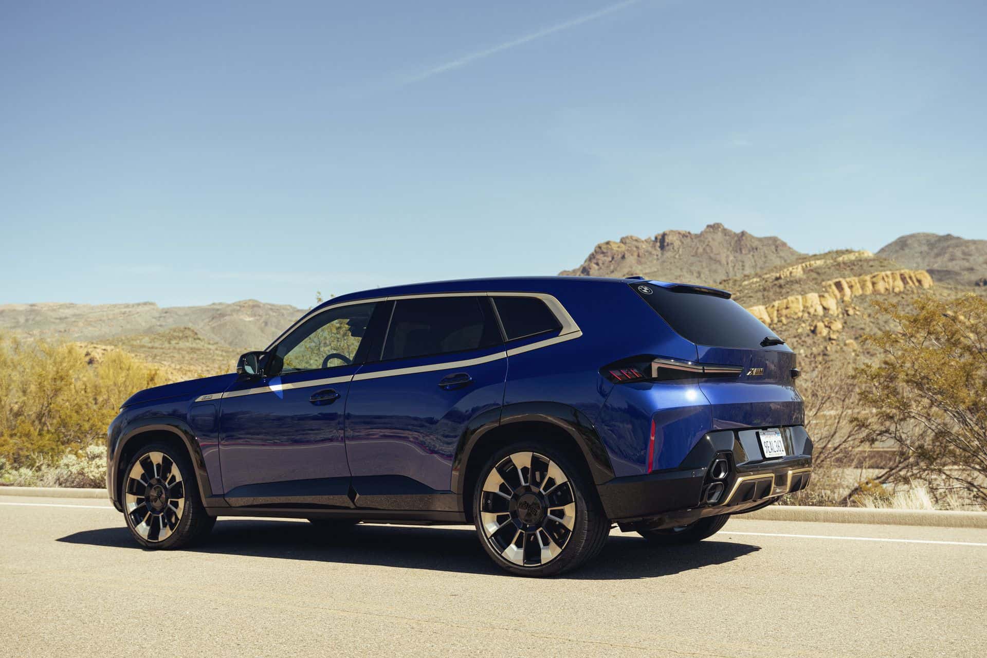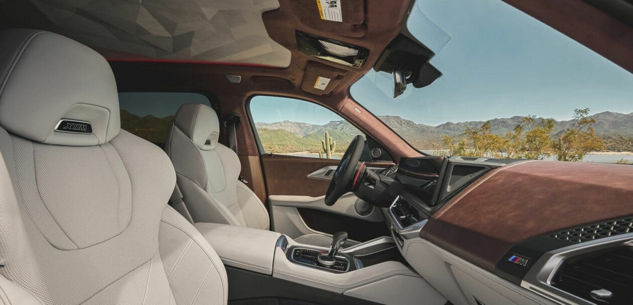 The XM’s 48-volt anti-roll mechanism can distribute a maximum torque of 1,100 Nm to each wheel. In addition, the rear axle steering can adjust the driving experience from a soft to a firm feel, providing both comfort and high-performance handling during cornering. The rear axle steering is limited to a maximum turn of 2.5 degrees and only activates at speeds below 25 miles per hour or above 100 miles per hour. These two primary systems set the driving dynamics apart from those of the X5 M.