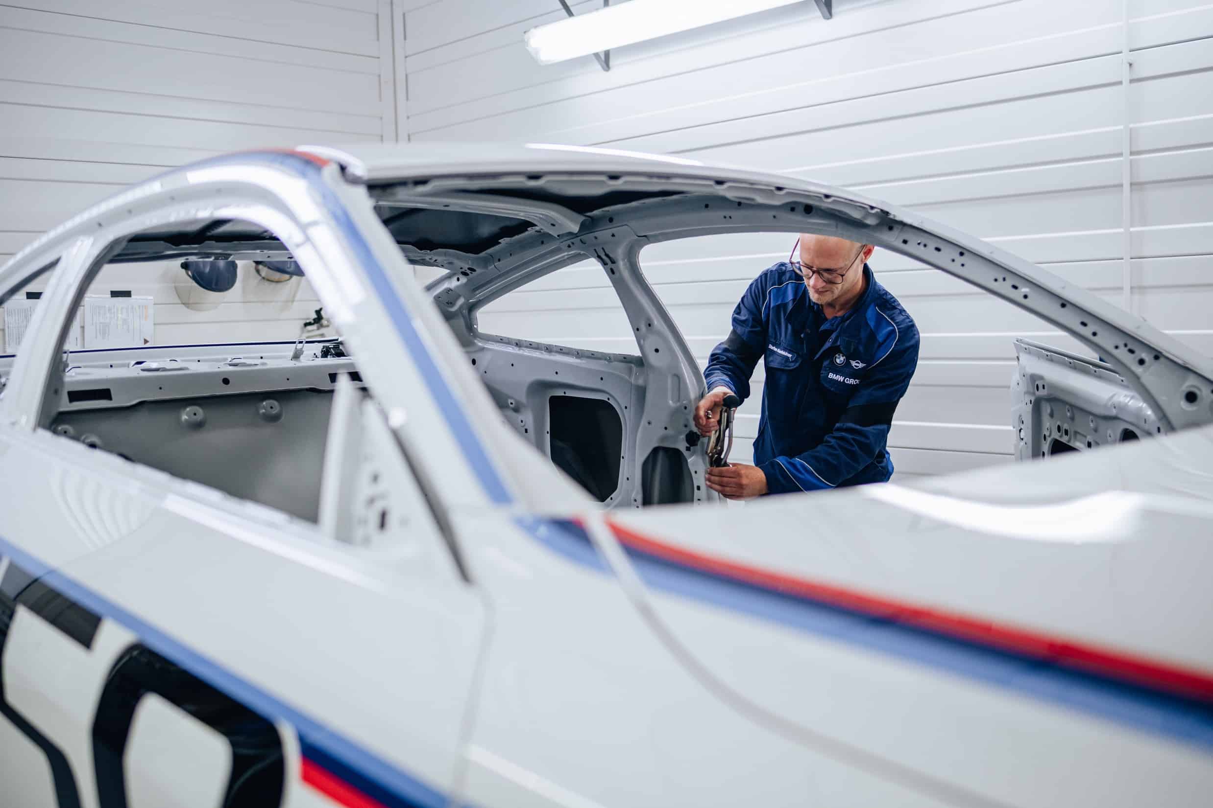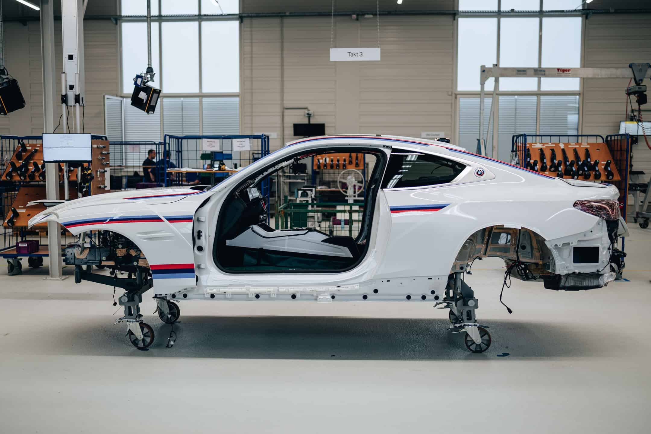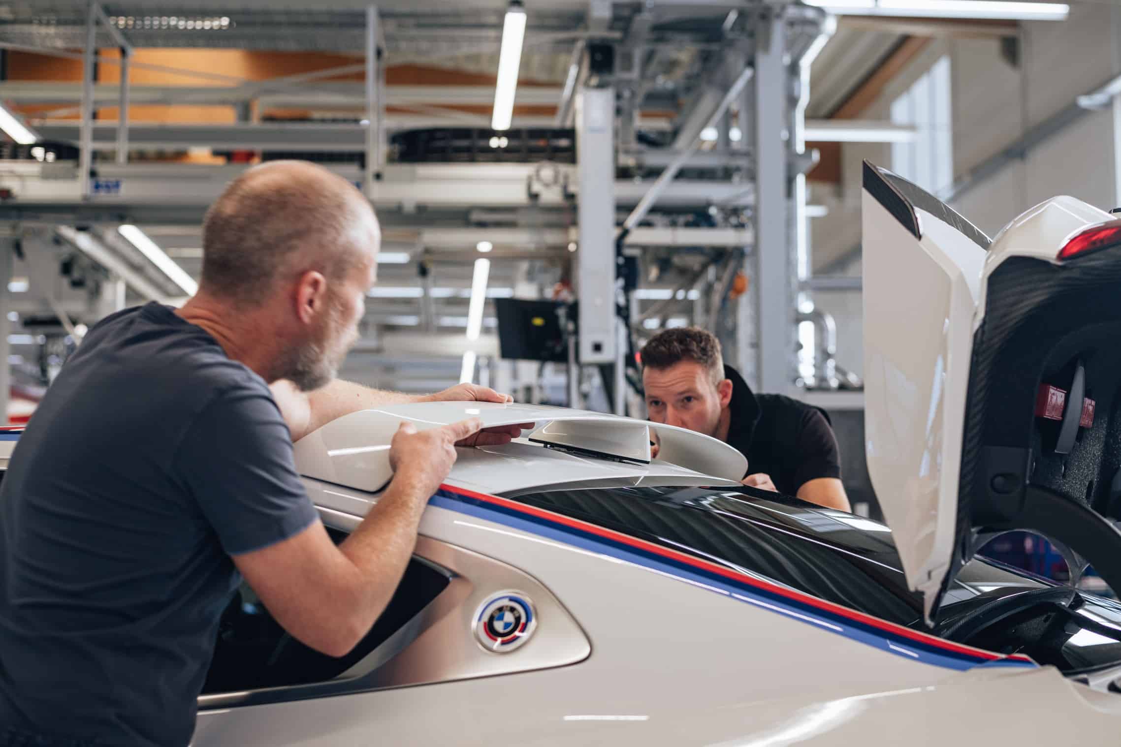 BMW has gone to great lengths to explain what makes the 3.0 CSL more special compared to the “regular” M4 CSL. Aside from the coach-built body, the exclusive coupe has a bit more power, a manual gearbox, and manually applied M colors on its Alpine White body. It takes almost two weeks to assemble a single car as each goes through eight major assembly cycles before a final inspection process and a test drive at the adjacent track. The vehicle is produced at a dedicated workshop outside the Dingolfing Plant.