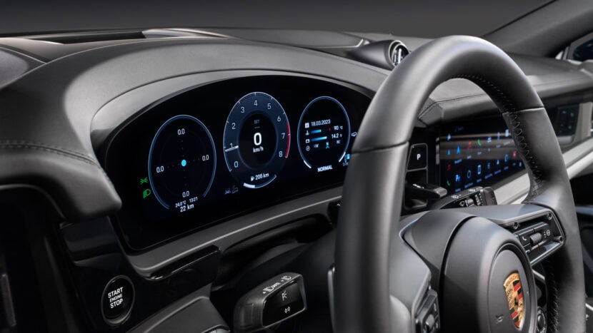 However, it’s also different from normal Porsche cabins in some ways. For instance, the digital gauge screen is far more traditional than you’ll find in most Porsches, the Cayenne now has a dash-mounted electronic shifter, and three dashboard screens. One such screen is the aforementioned gauge screen, the other two are infotainment screens. The center-mounted screen is the main infotainment screen for the driver. The one mounted to the right of it sits in front of the passenger, giving them their own little screen.