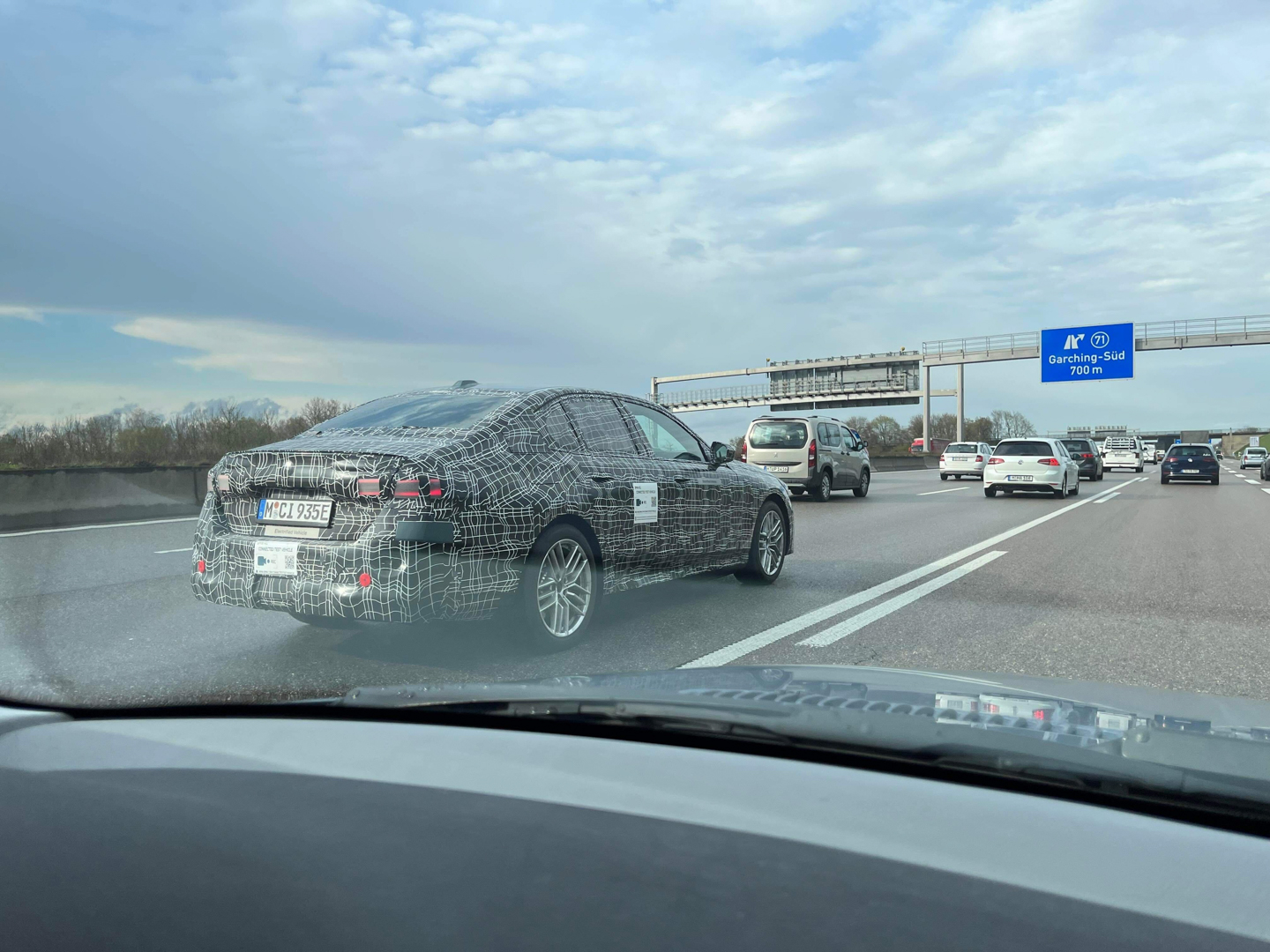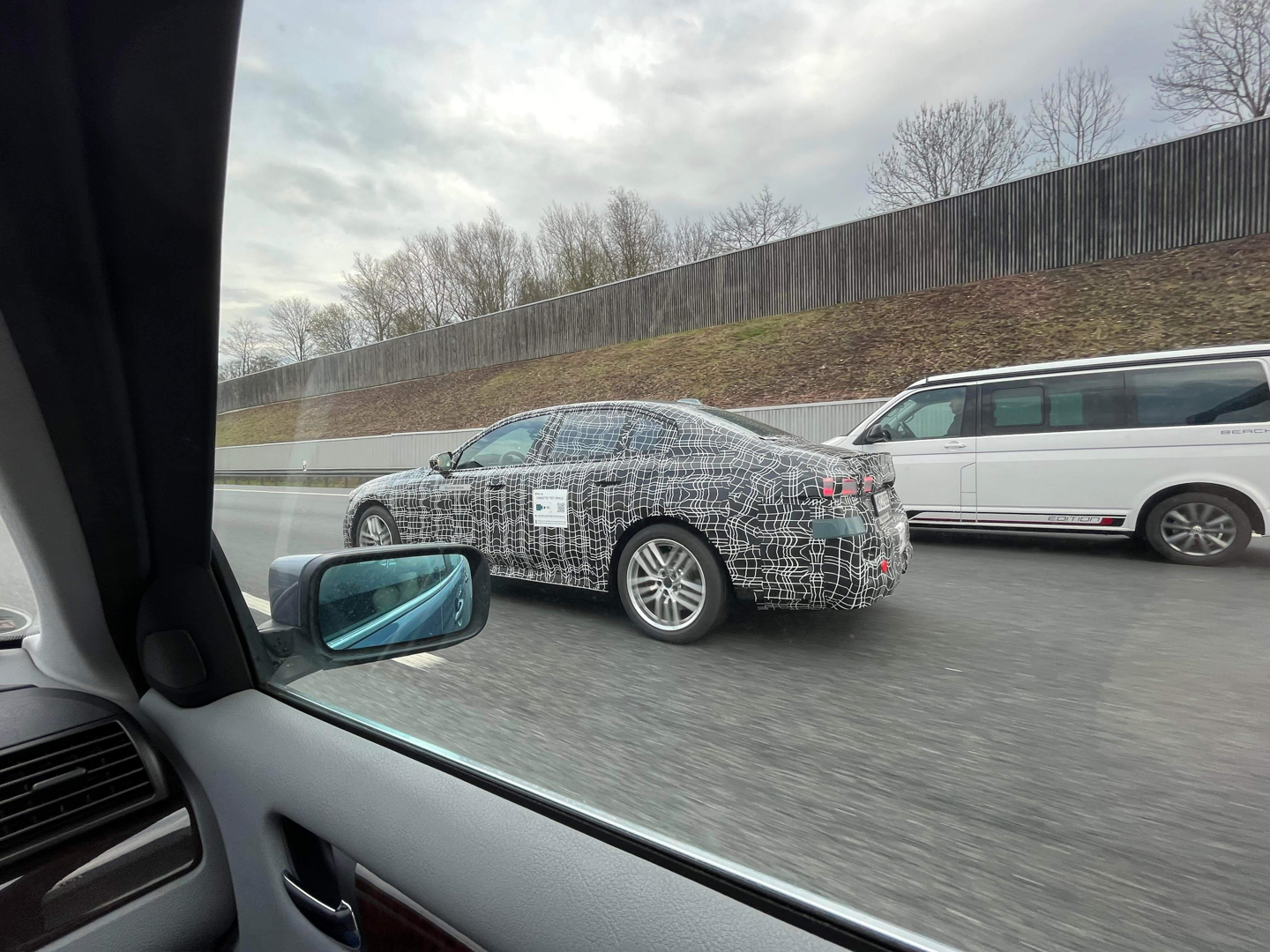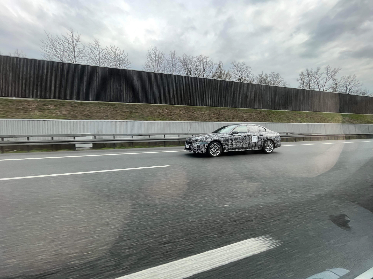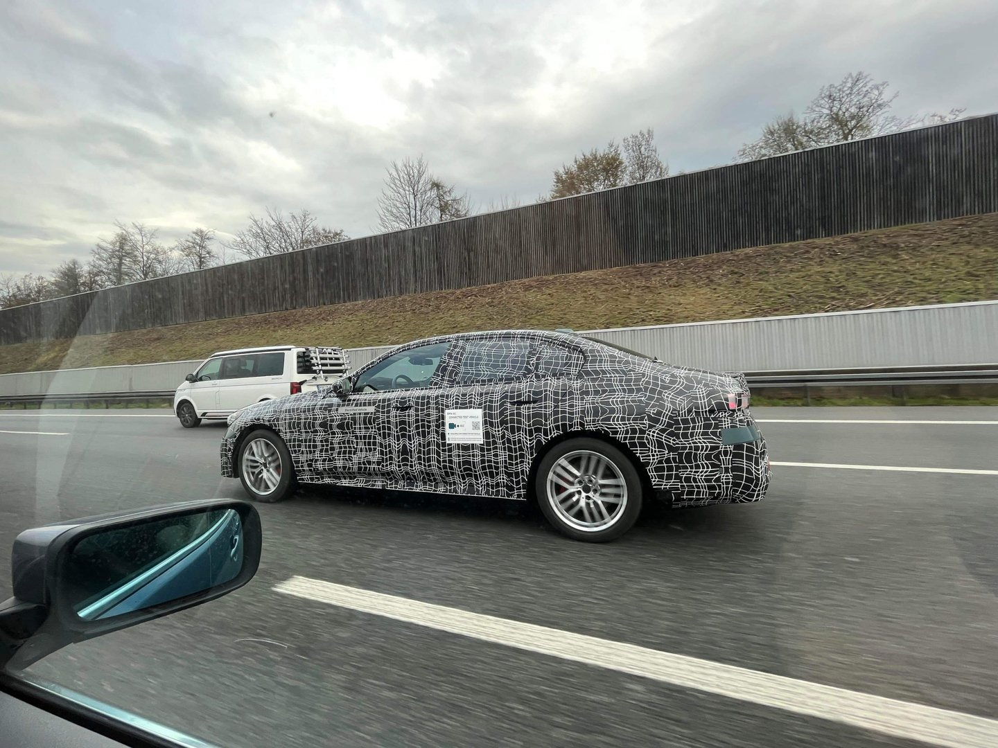 Interestingly, the test badging changed. Typically, electric test vehicles in Germany have badges that read… “Electric Test Vehicle.” Now, it just says “Electrified Vehicle” but there’s also a new sign, one that says “Connected Test Vehicle.” The latter of which also has video camera logo and a scannable barcode. I’m not sure what that’s all about but it will be interesting to see what sort of connected services the i5 has when it debuts.
