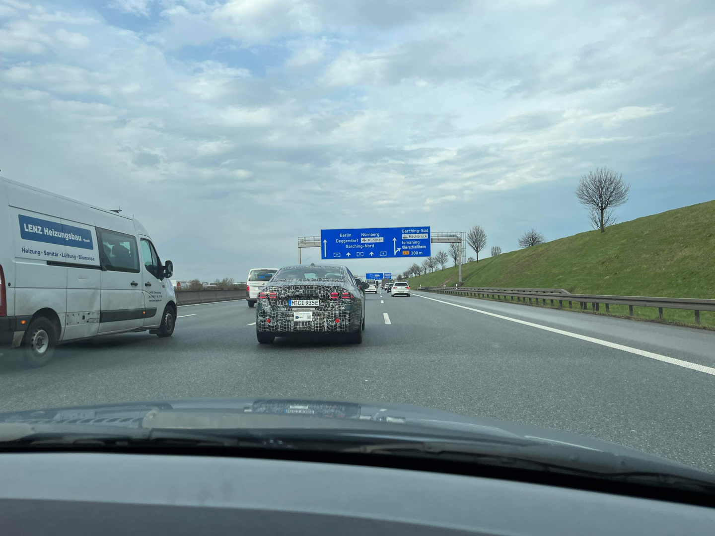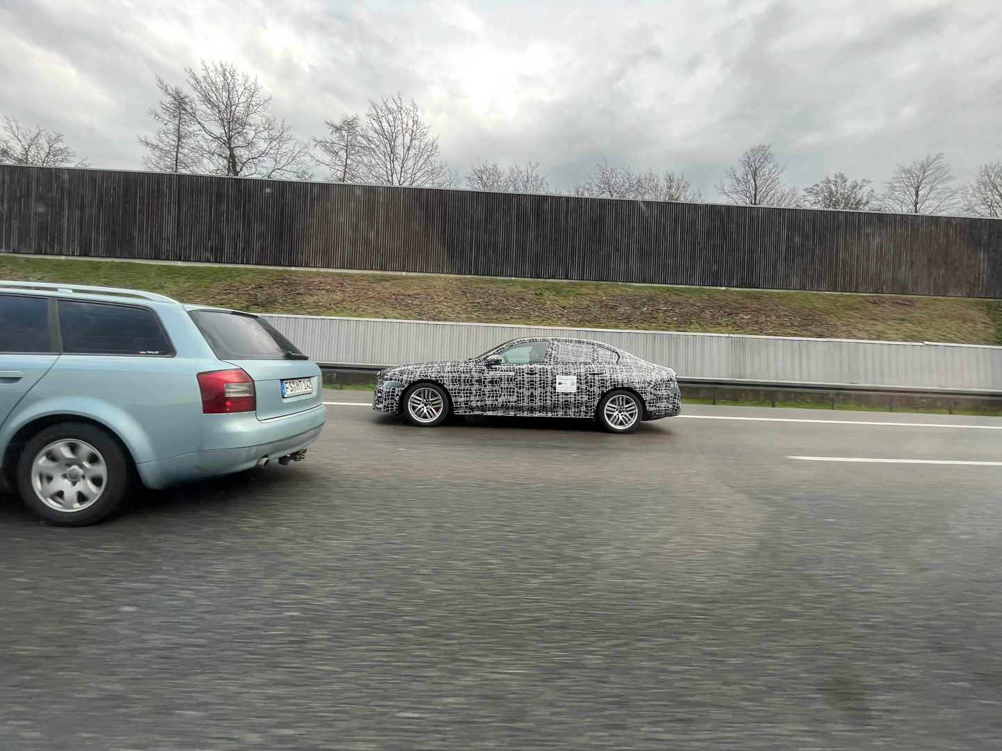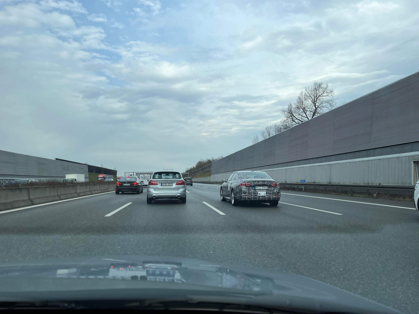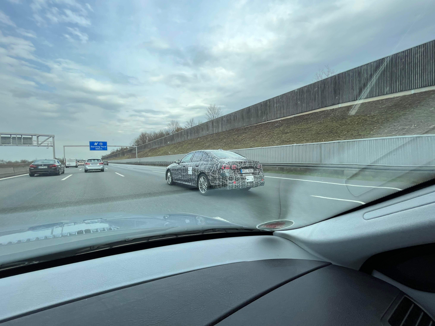 Interestingly, the test badging changed. Typically, electric test vehicles in Germany have badges that read… “Electric Test Vehicle.” Now, it just says “Electrified Vehicle” but there’s also a new sign, one that says “Connected Test Vehicle.” The latter of which also has video camera logo and a scannable barcode. I’m not sure what that’s all about but it will be interesting to see what sort of connected services the i5 has when it debuts.