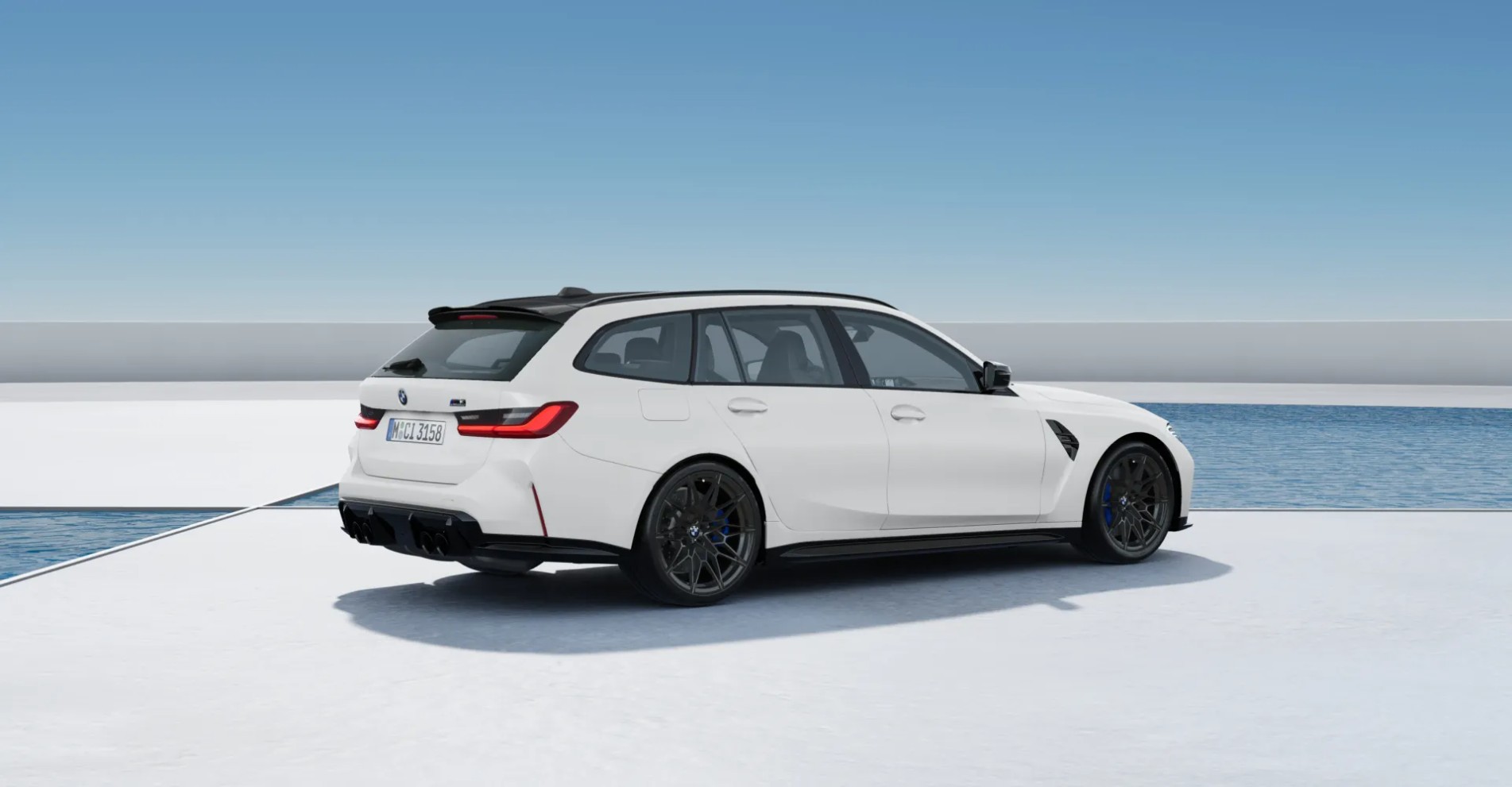 The M3 Touring is everything you like about the sedan but with far greater practicality courtesy of the long-roof body style. It’s available with the full gamut of extras as the sedan, including Individual paints such as this Frozen Brilliant White with a matte finish. It’s nicely contrasted by plenty of black accents as the roof, side mirror caps, and sections of the bumpers have a dark look.