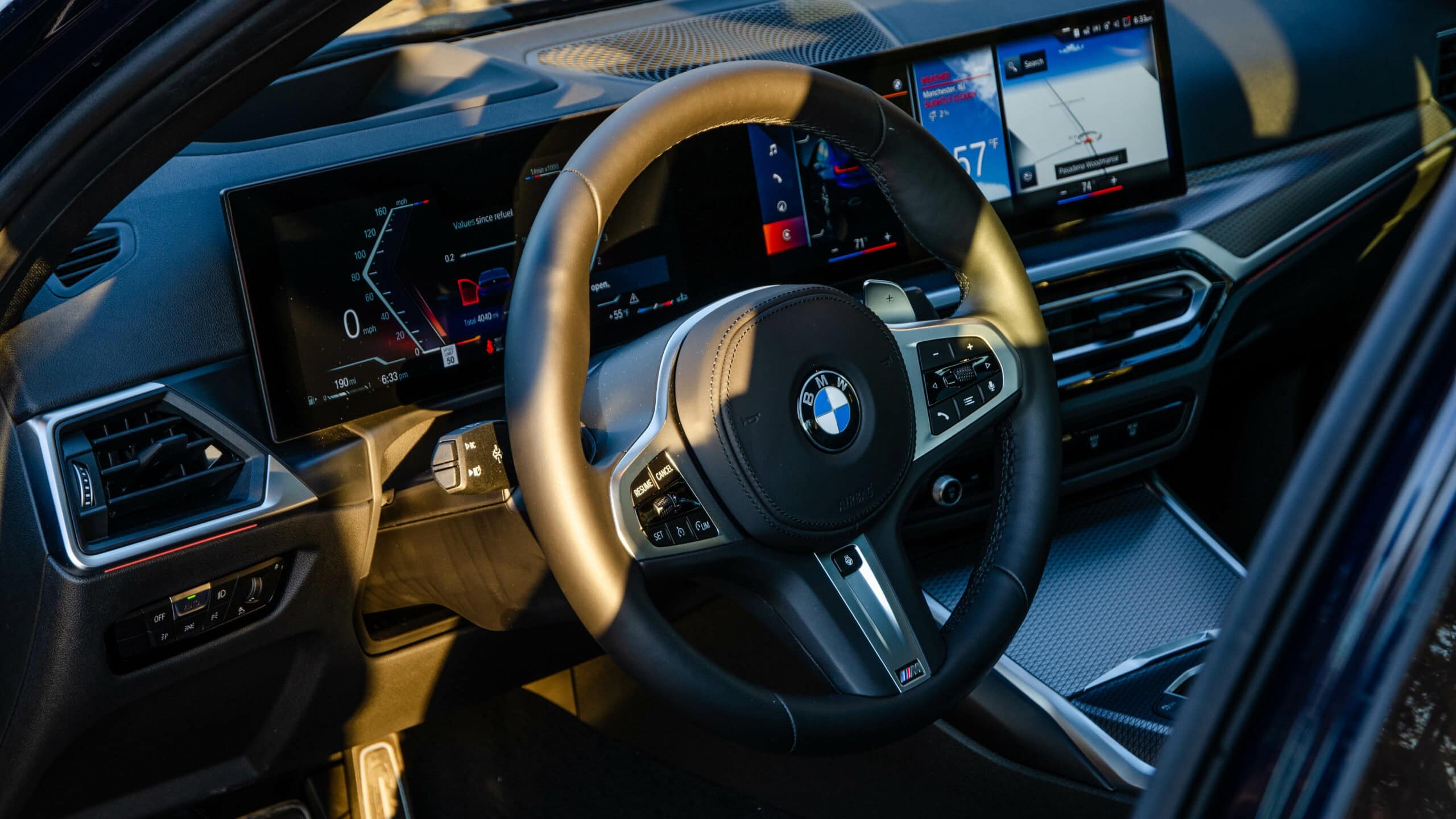 Inside, BMW’s new iDrive dominates the cabin. Its massive curved dual-screen setup is the first thing you see and it’s the only thing you interact with. As with all iDrive 8-equipped cars, the climate controls are moved into the touchscreen, so there’s very few physical interaction with the car’s cabin functions. The new digital gauge screen is a welcome change, though, as the old one was pretty bad.
