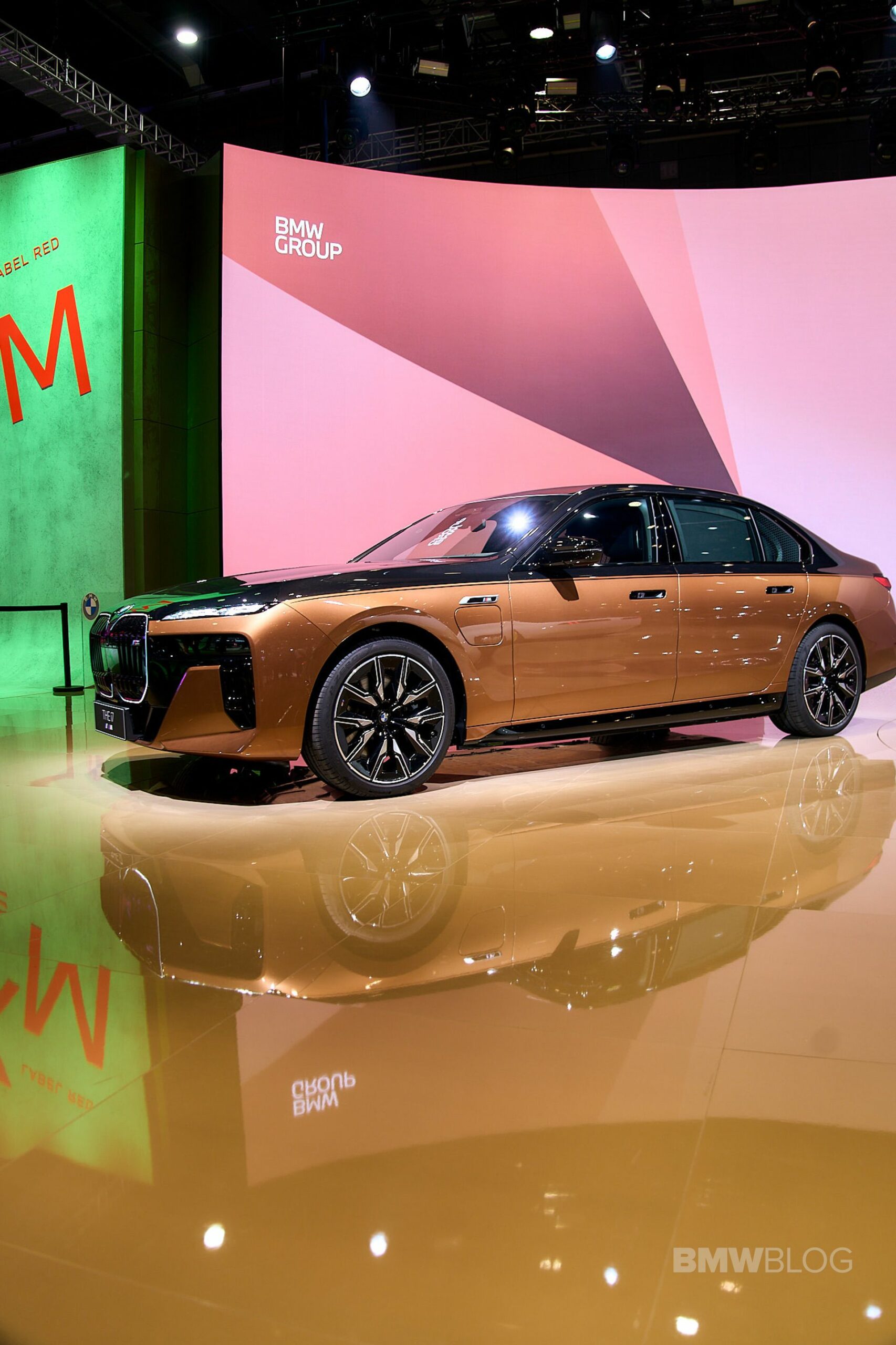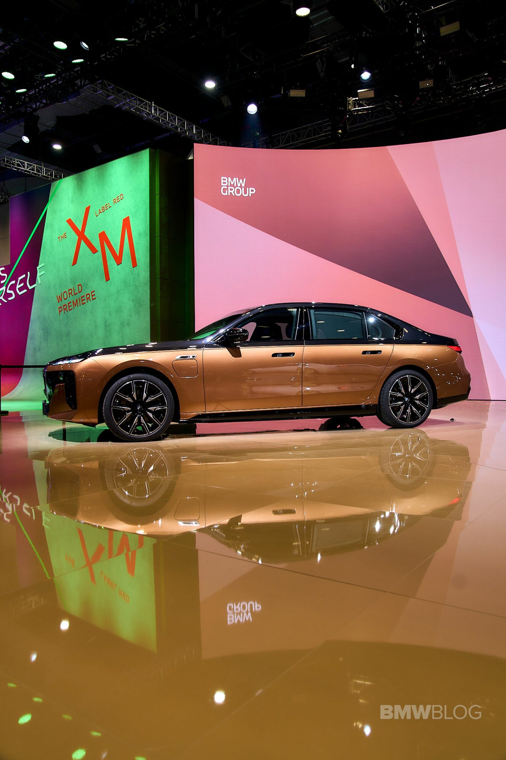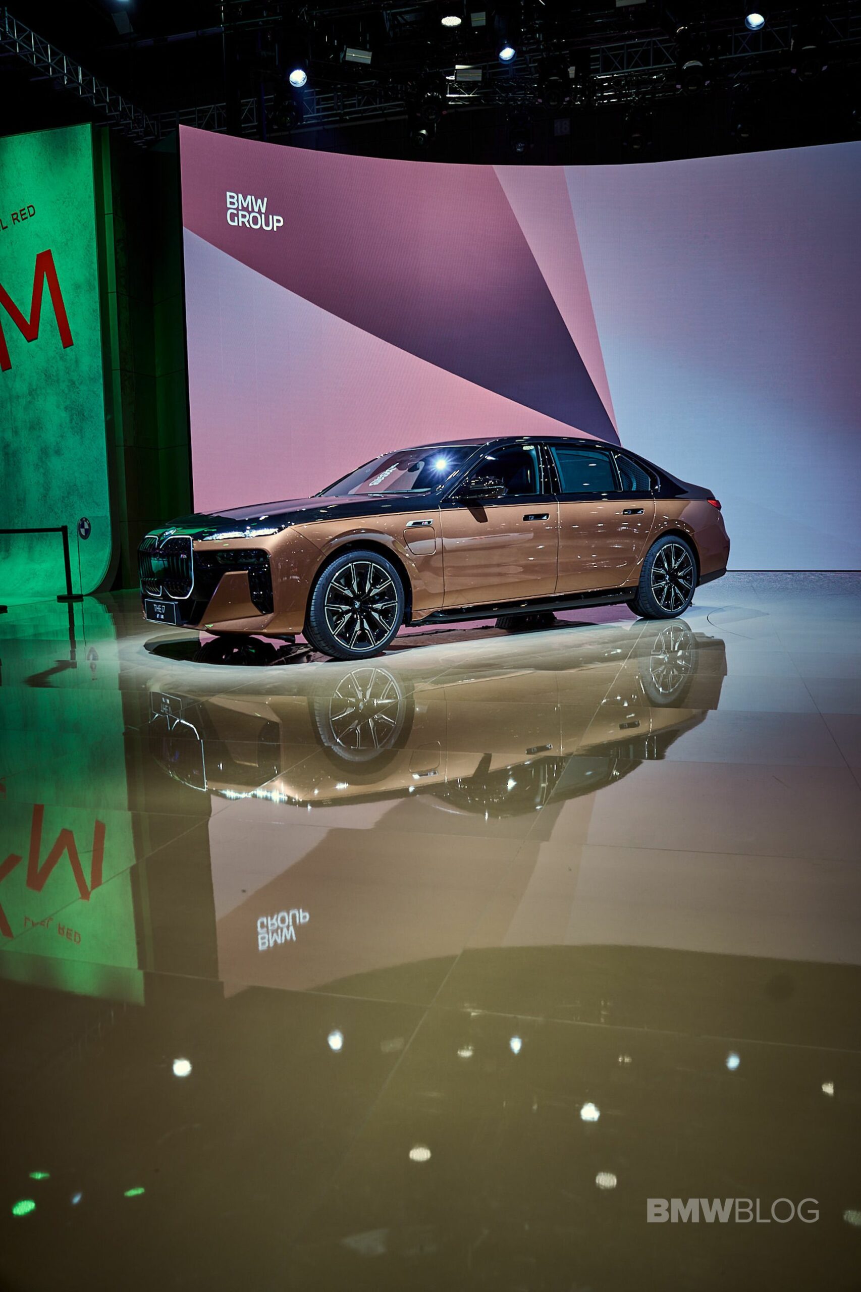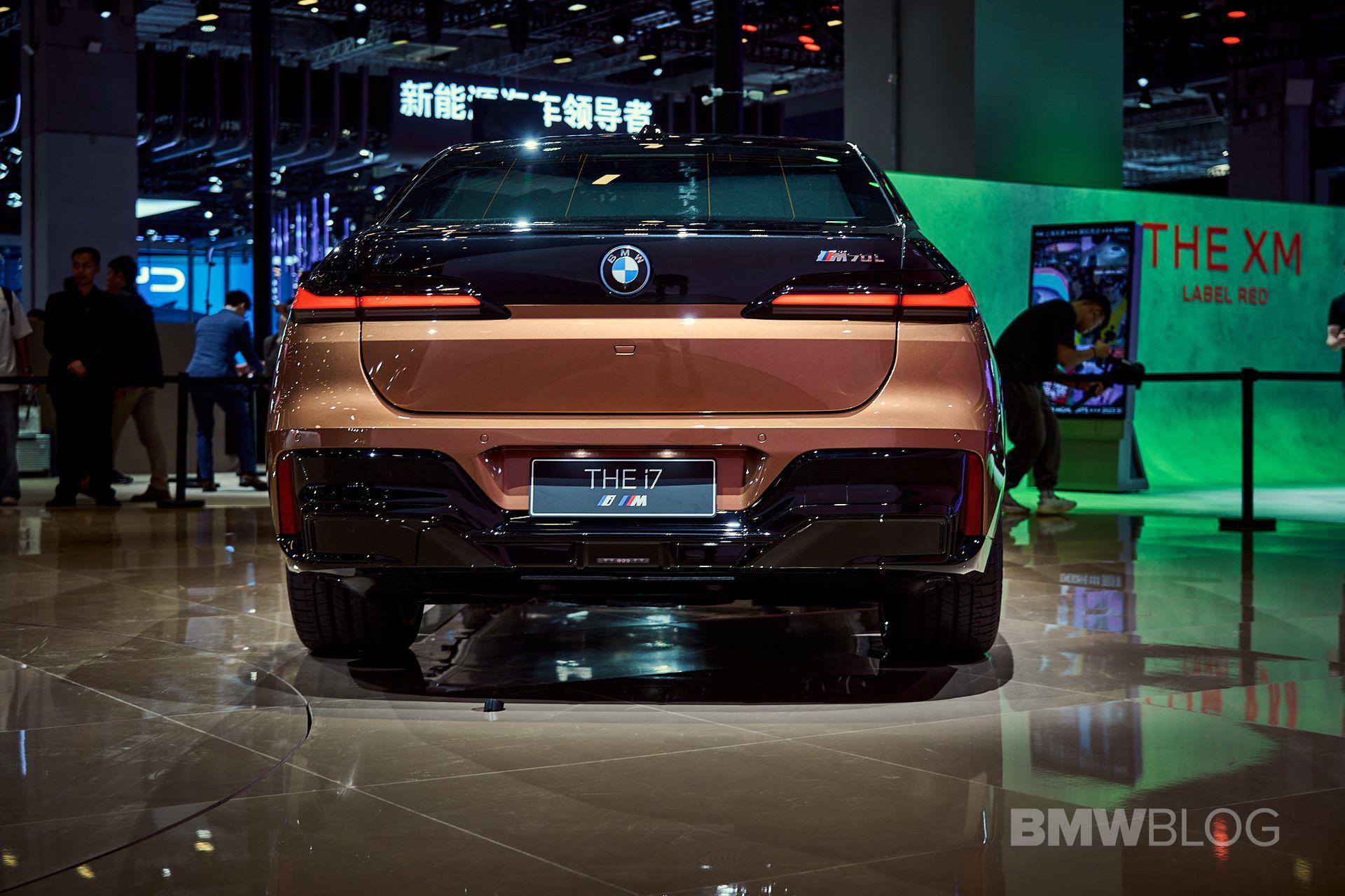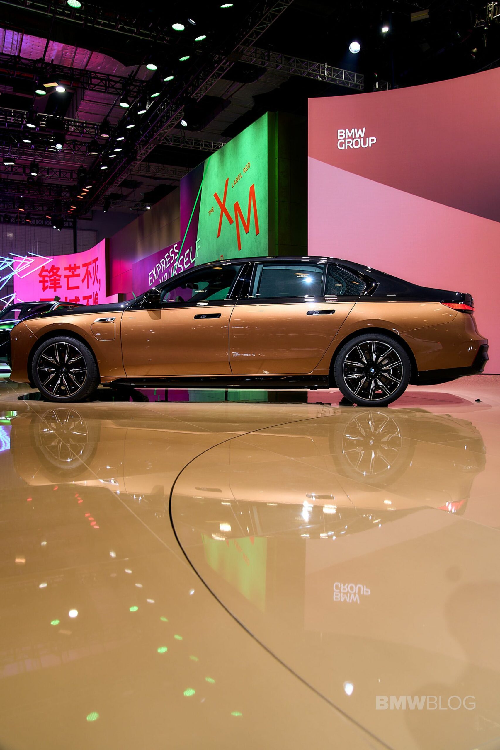 We spent some quality time with the 650-horsepower silent luxobarge and its new Liquid Copper and Black Sapphire color combo. Since the M850i was facelifted last year, BMW has been putting M badges on the grilles of M Performance models, and this i7 M70 is no exception. A massive vehicle deserves a large illuminated kidney grille, and it now has a glossy black surround for the first time on the i7. The showcar from Shanghai has 21-inch wheels with a two-tone look and metallic inserts, with black M Sport brake calipers lurking from behind.