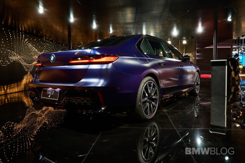 Much like the i7 M70 shown in all official images, this one has the standard 21-inch M wheels combining a Jet Black finish with glossy metal inserts. Being a Chinese-spec car, it boasts a charging port on the left-front fender and the letter “L” on the rear badge. However, BMW sells the 7 Series / i7 in the People’s Republic with a single wheelbase – measuring 3215 millimeters or 126.5 inches – just like in the rest of the world.