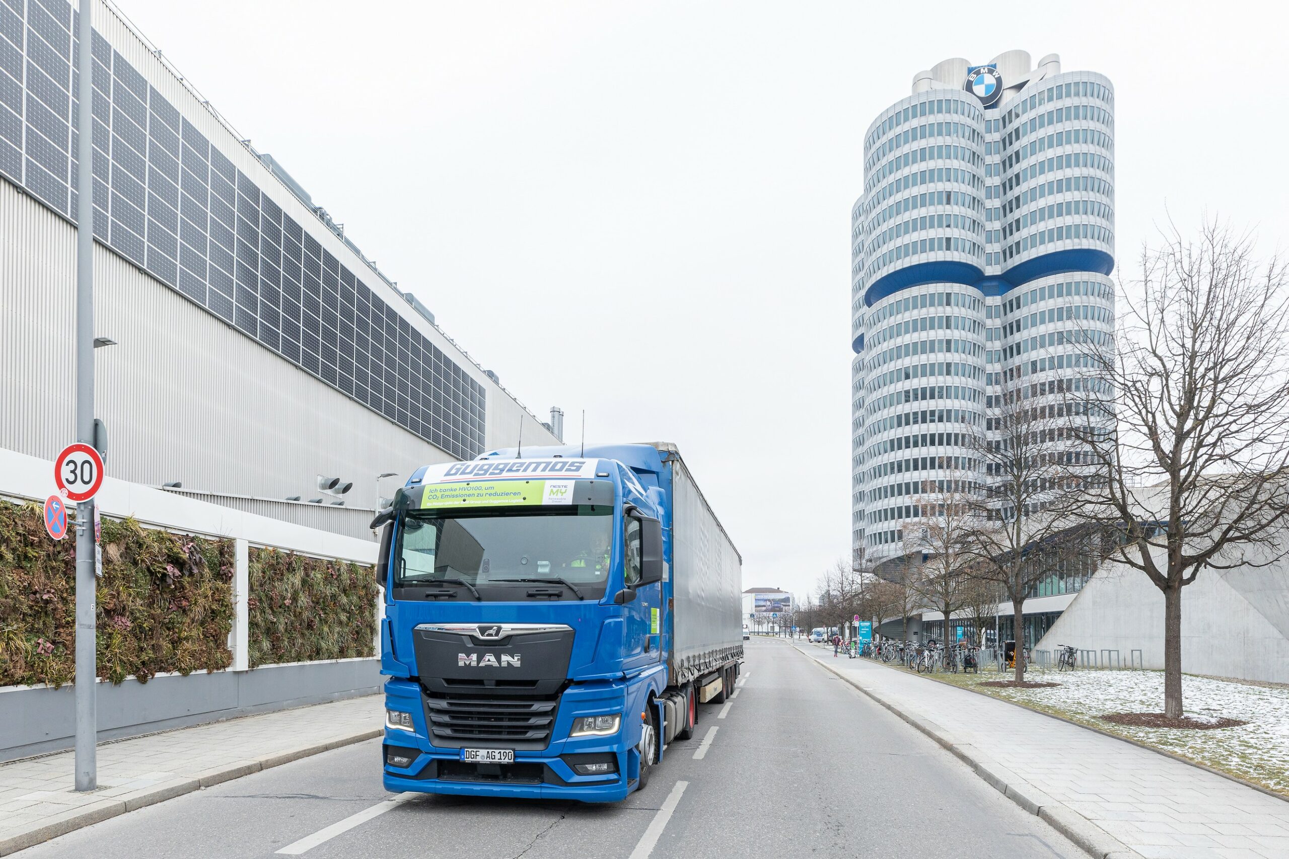 Specifically, the trucks operated by logistics provider Guggemos (GV Trucknet) from Landau an der Isar – the second-largest town in the Lower Bavarian district – to the Plant Munich run on HVO100. A fleet of 10 trucks uses this fuel made from waste products, residues, and renewable raw materials such as used cooking oil. Research has shown that well-to-wheel CO2 emissions are down by 90% compared to fossil diesel, even though fuel consumption is actually up by approximately 3%.